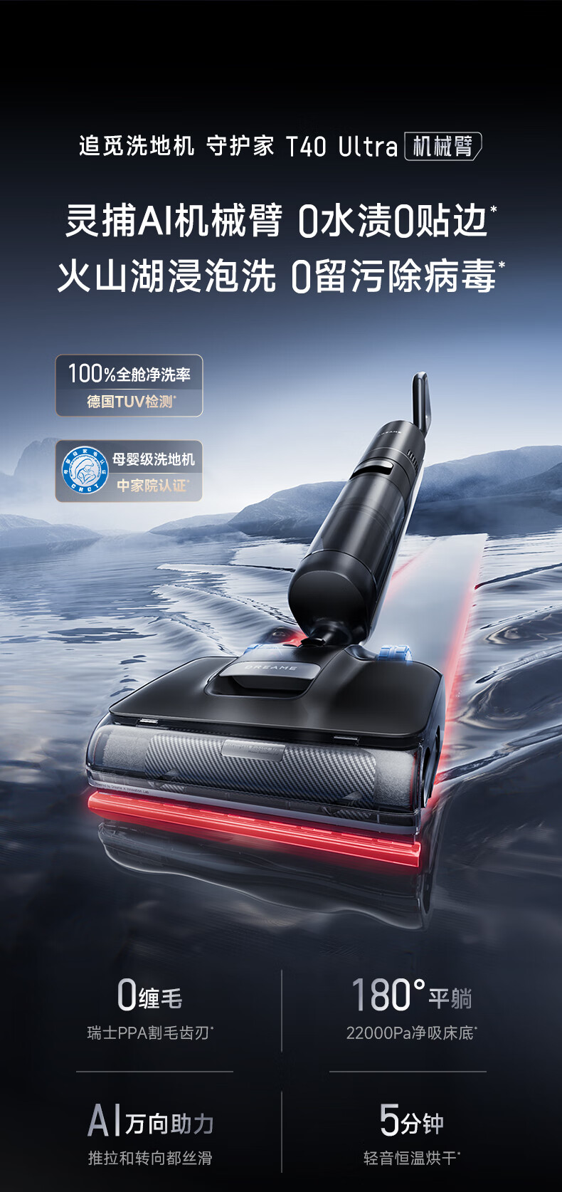 Chai Mi Guardian T40Ultra Floor Washer Mop Washing Machine Washing and Mopping All-in-one Machine Automatic Cleaning Household Sweeping Robot Electric Mop Vacuum Cleaner Universal Assist AI Robotic Arm Dual Assist T40 Ultra
