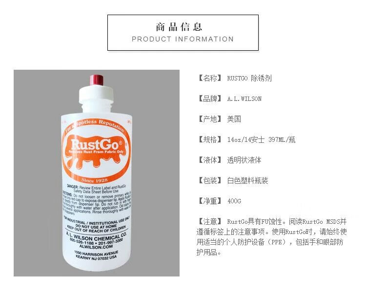 RUSTGO rust stain remover rust water dry cleaning agent supplies WILSON 397ml