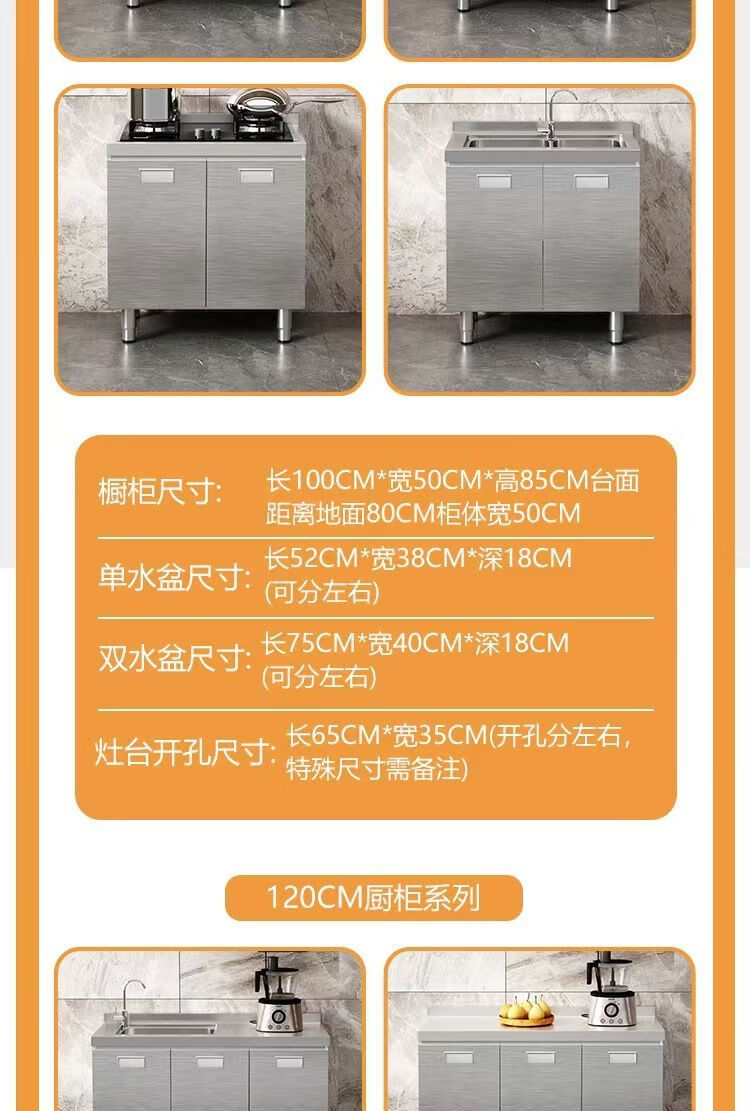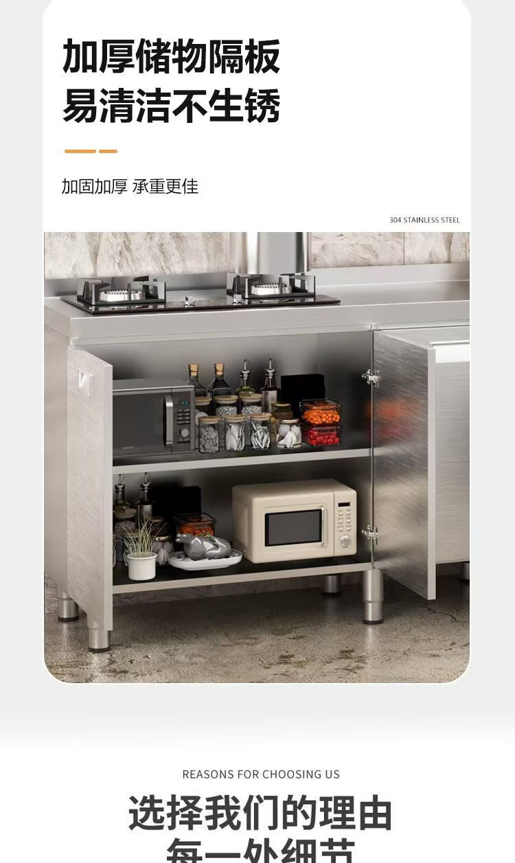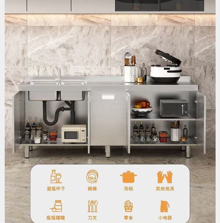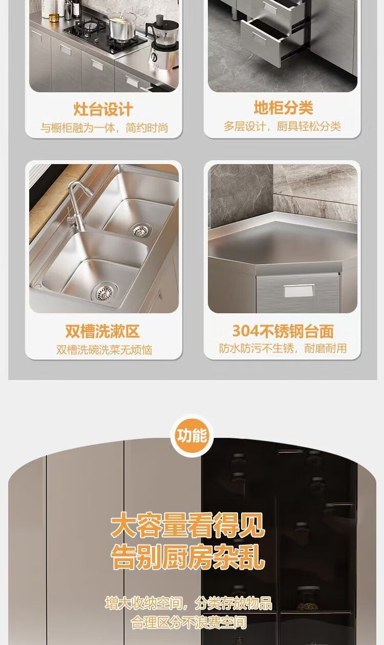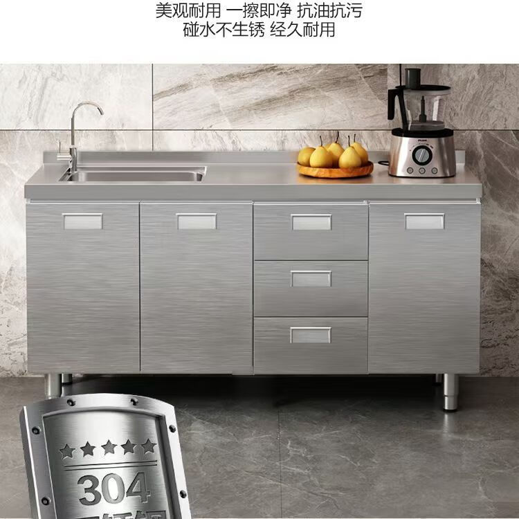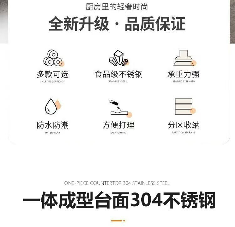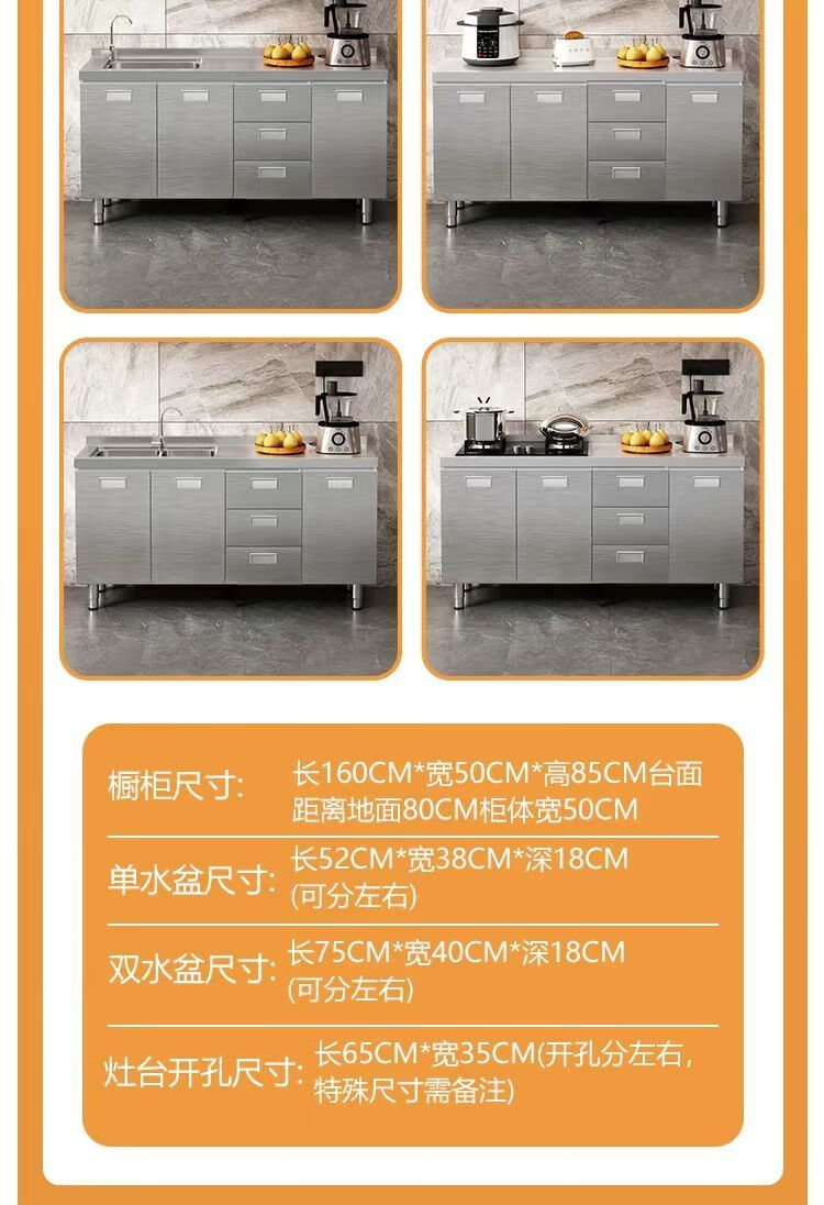 Qinkai stove stainless steel thickened combination cabinet kitchen cabinet extra thick two-in-one integral cabinet national standard 304 stainless steel-flat style. Customized