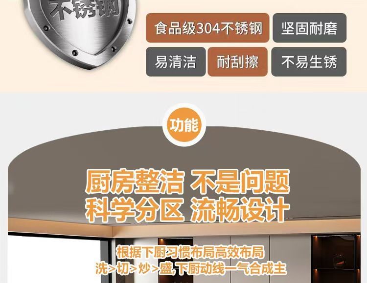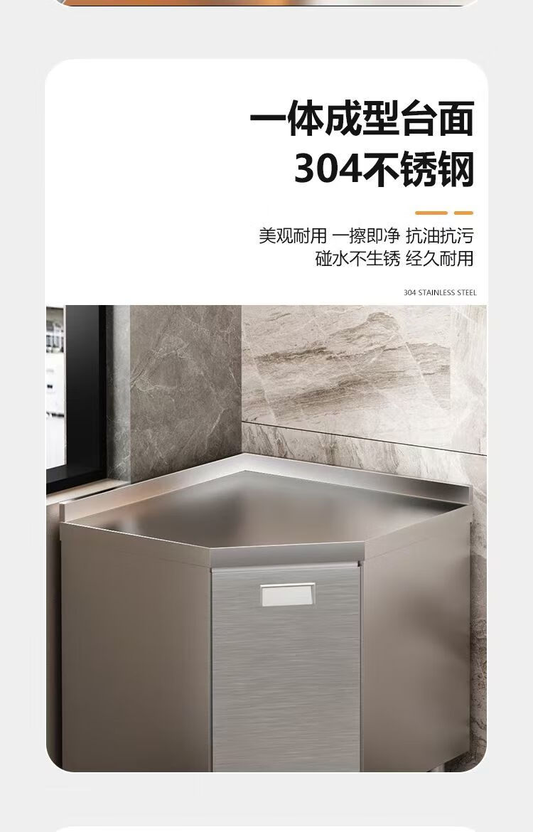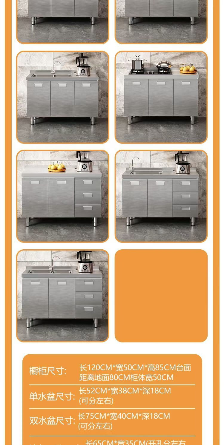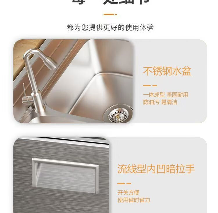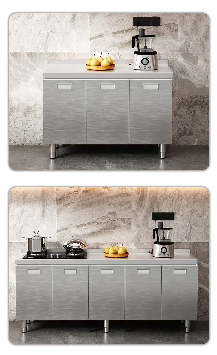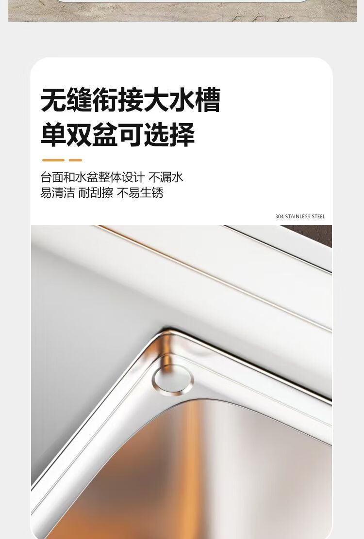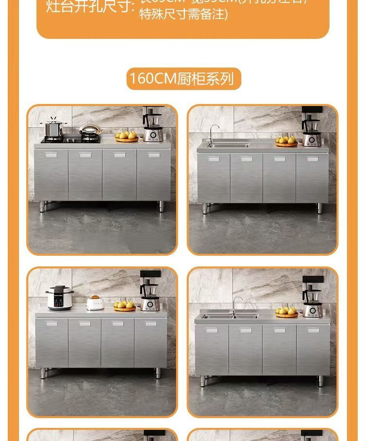 Qinkai stove stainless steel thickened combination cabinet kitchen cabinet extra thick two-in-one integral cabinet national standard 304 stainless steel-flat style. Customized
