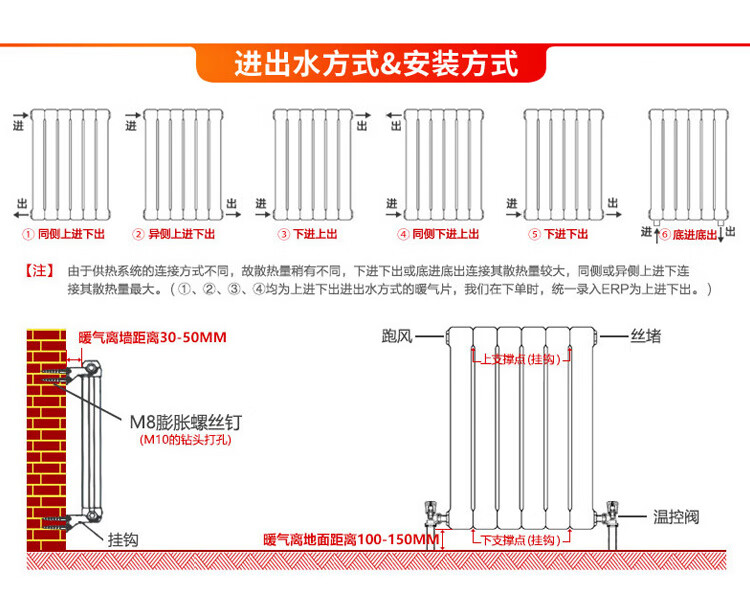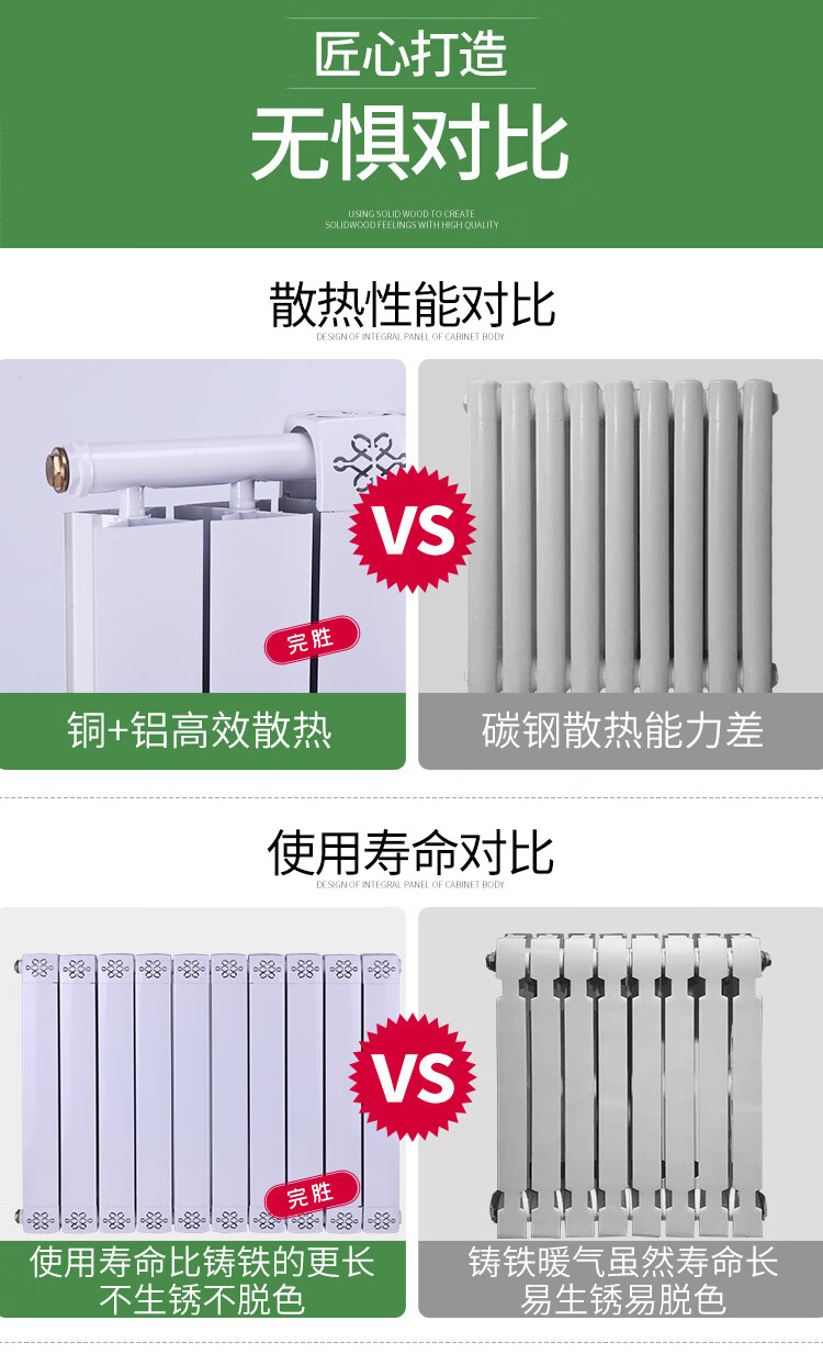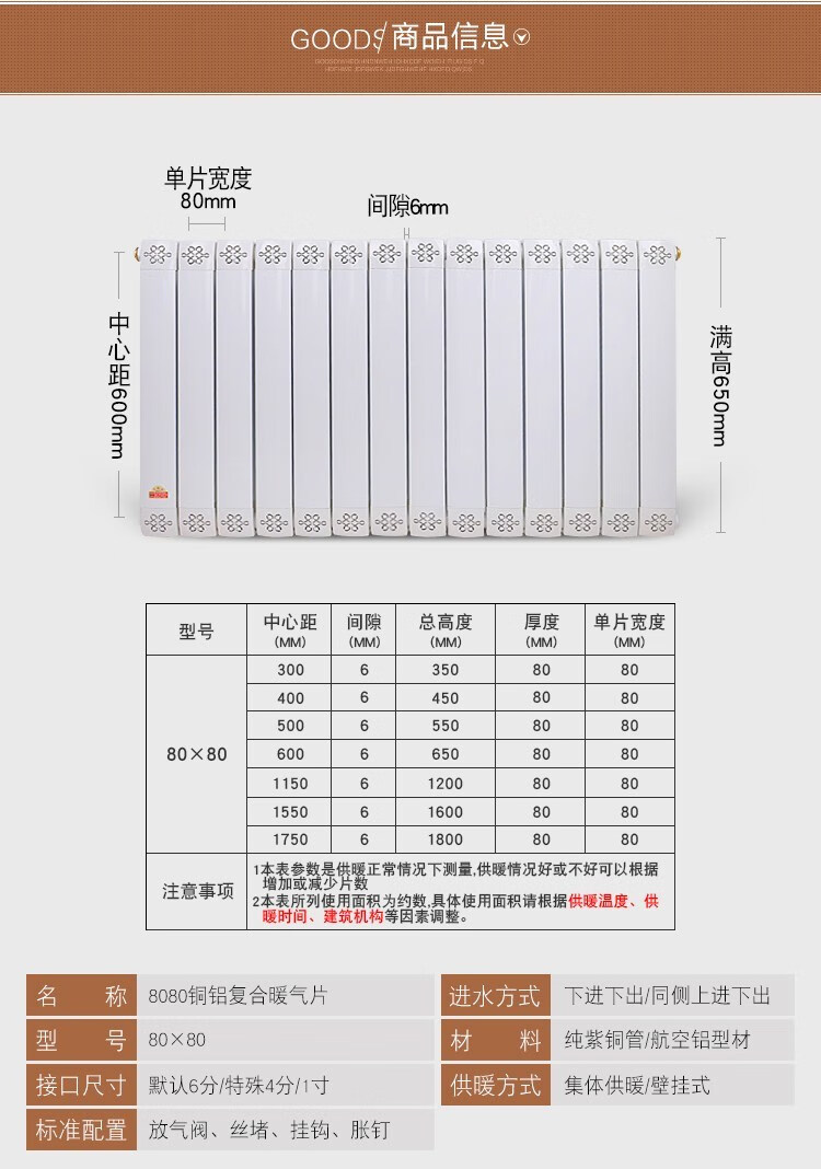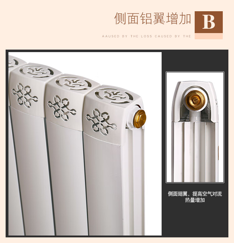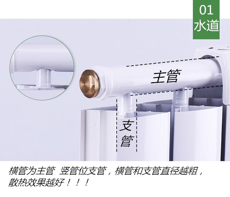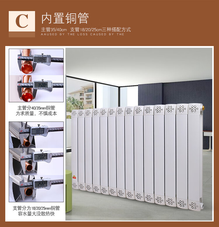 Qinkai household water heating radiator copper-aluminum composite radiator anti-smoke wall surface-mounted wall-mounted radiator 8575 main pipe 40 branch pipe 25 high 30 cm