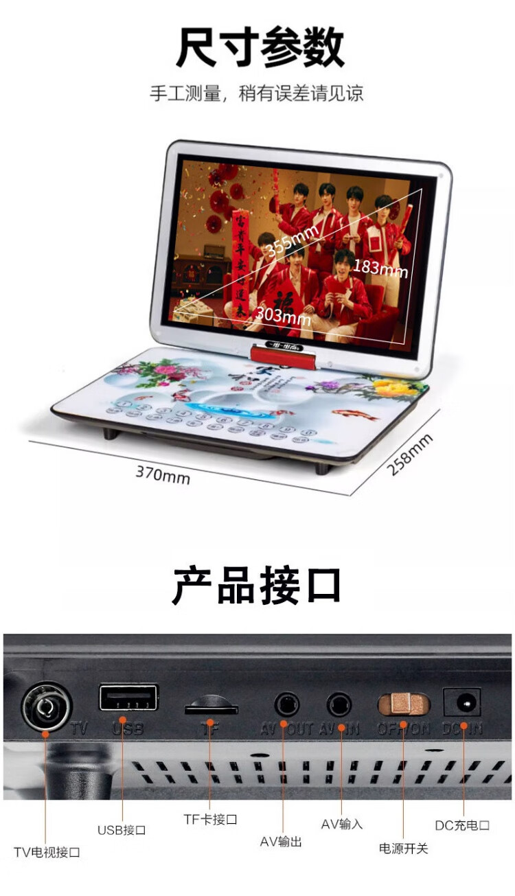 BBK's new full-format DVD player evd mobile player home large-screen high-definition portable theater player for the elderly U disk player children's learning CD all-in-one machine 25-inch high-definition full-format DVD+2 discs+32G