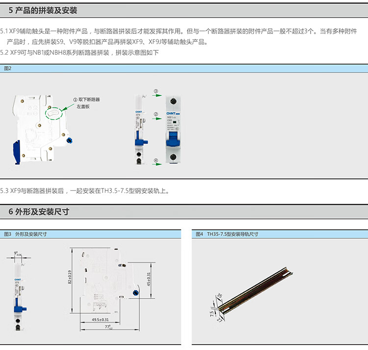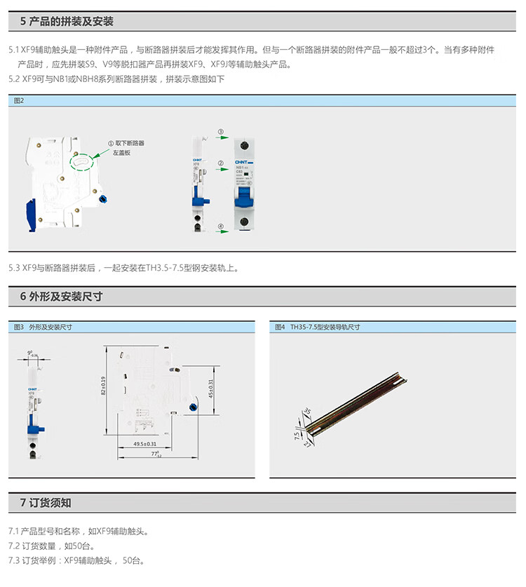 Chint small circuit breaker NB1 air switch air switch auxiliary contact XF9 normally open normally closed side installation single auxiliary contact (excluding circuit breaker)