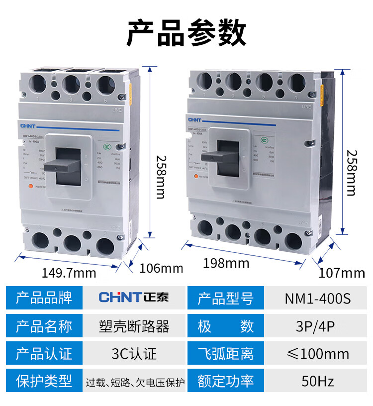 Chint air switch air switch NM1-400S/33003P plastic case circuit breaker 400A three-phase power 4p power outage 315A 3P