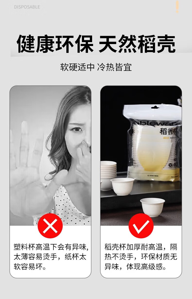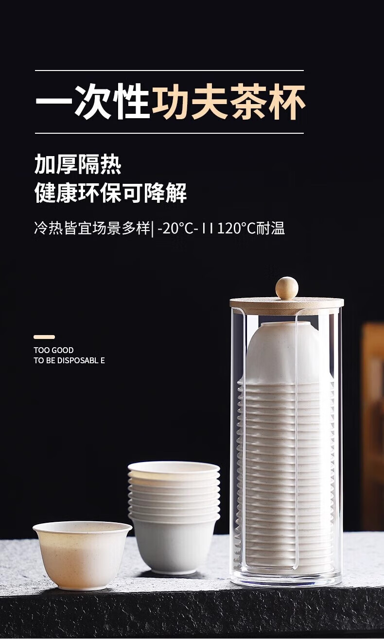 Starson rice husk disposable water cup Kung Fu tea cup small portable tea set office home drinking tea cup thickened rice husk tea cup 50 pieces