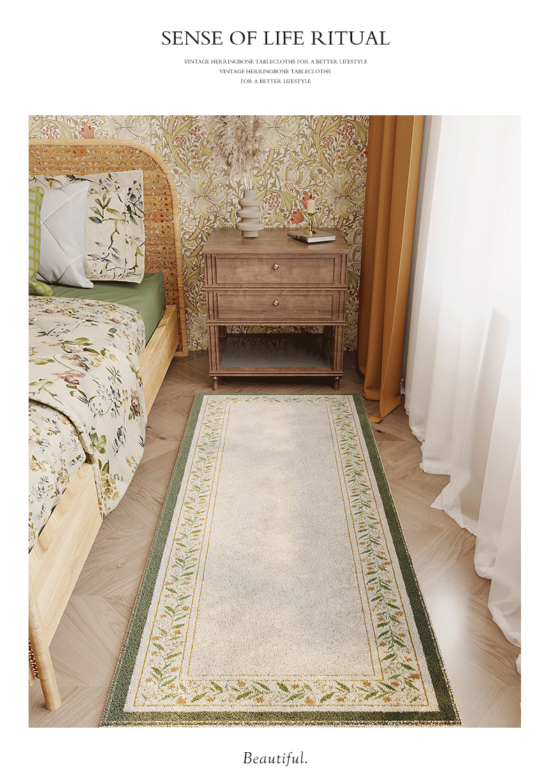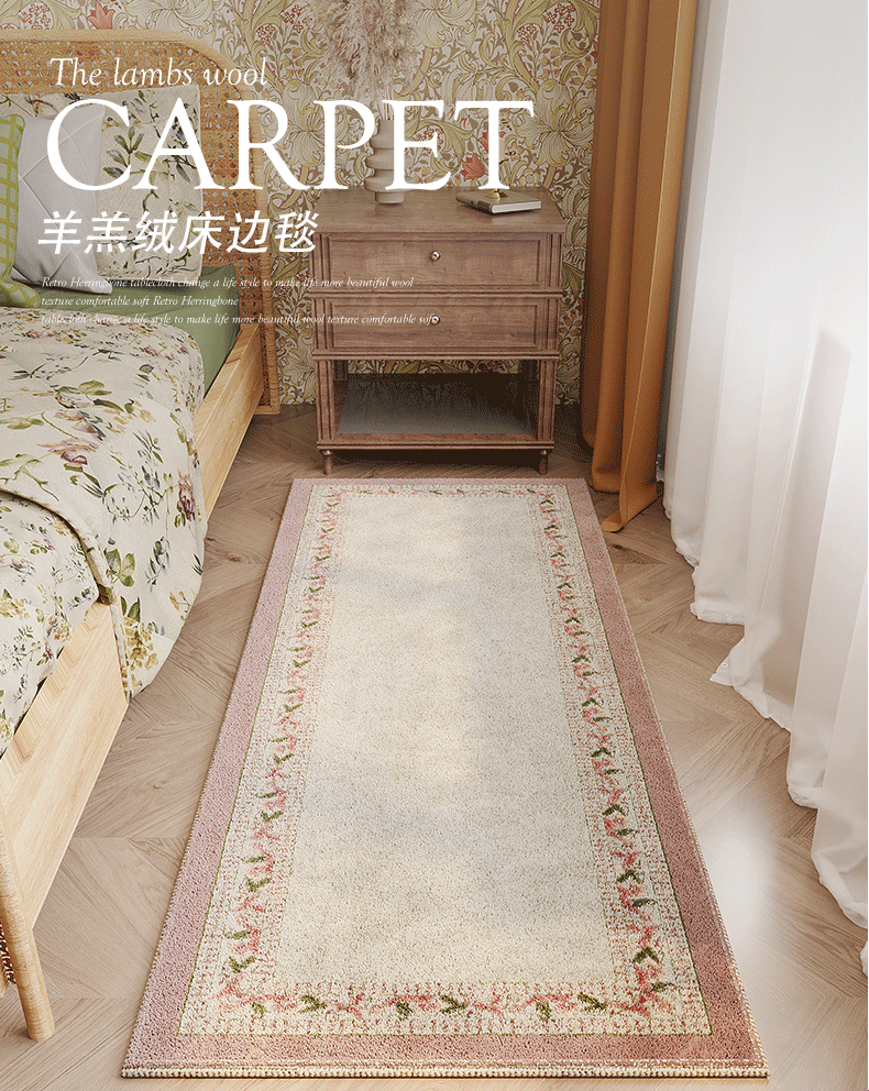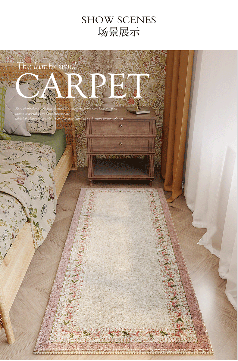 Meikale Bedside Blanket Bedroom Lamb Velvet Light Luxury High-Quality Plush Carpet Thick Floor Mat in Front of the Bed for Sitting and Lying Non-Slip Mat Green Fields All Over - Lamb Velvet Bedside Blanket Customized Contact Customer Service