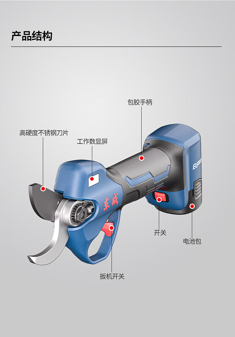 Dongcheng electric pruning shears rechargeable garden fruit tree pruning thick tree pruning branches lithium-ion Dongcheng scissors pruning machine DCPR16351 2 batteries 2.5Ah official standard configuration