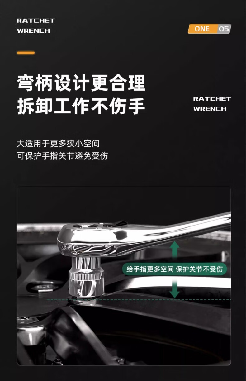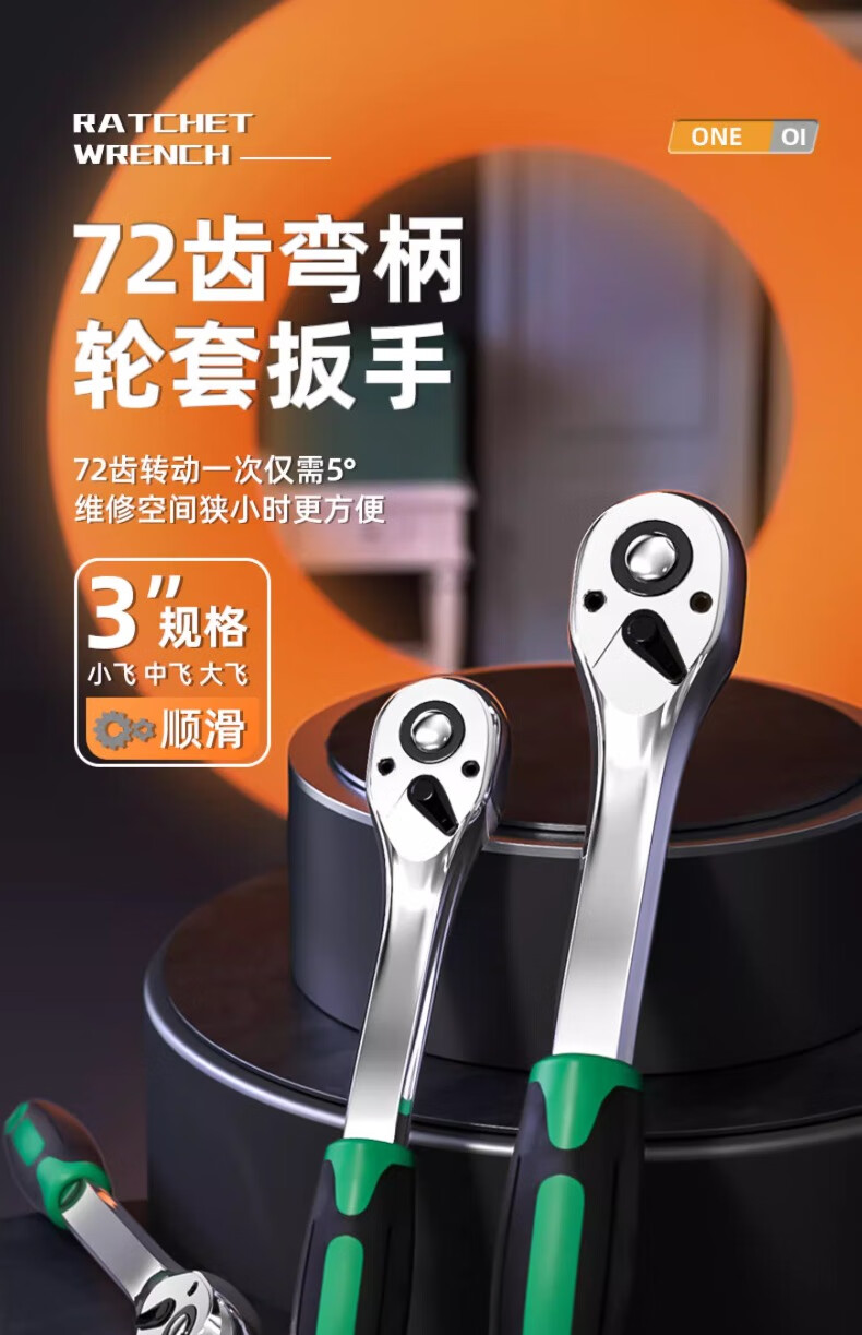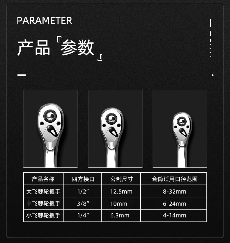 Fengji ratchet quick wrench two-way size flying in flying universal torque plate 72 tooth socket wrench tool fastener 103506, 6mm3/8 socket head
