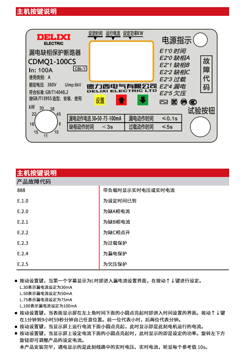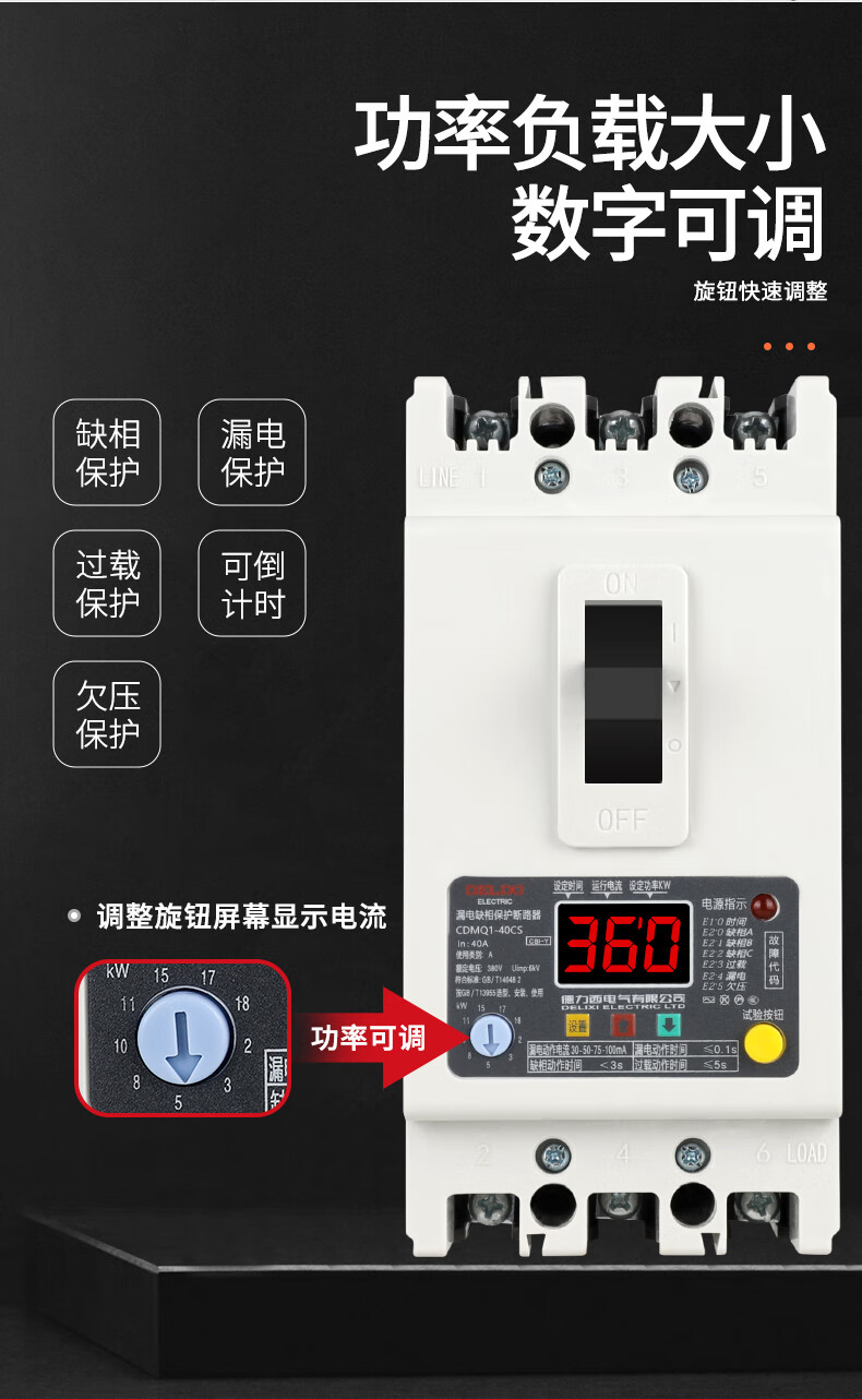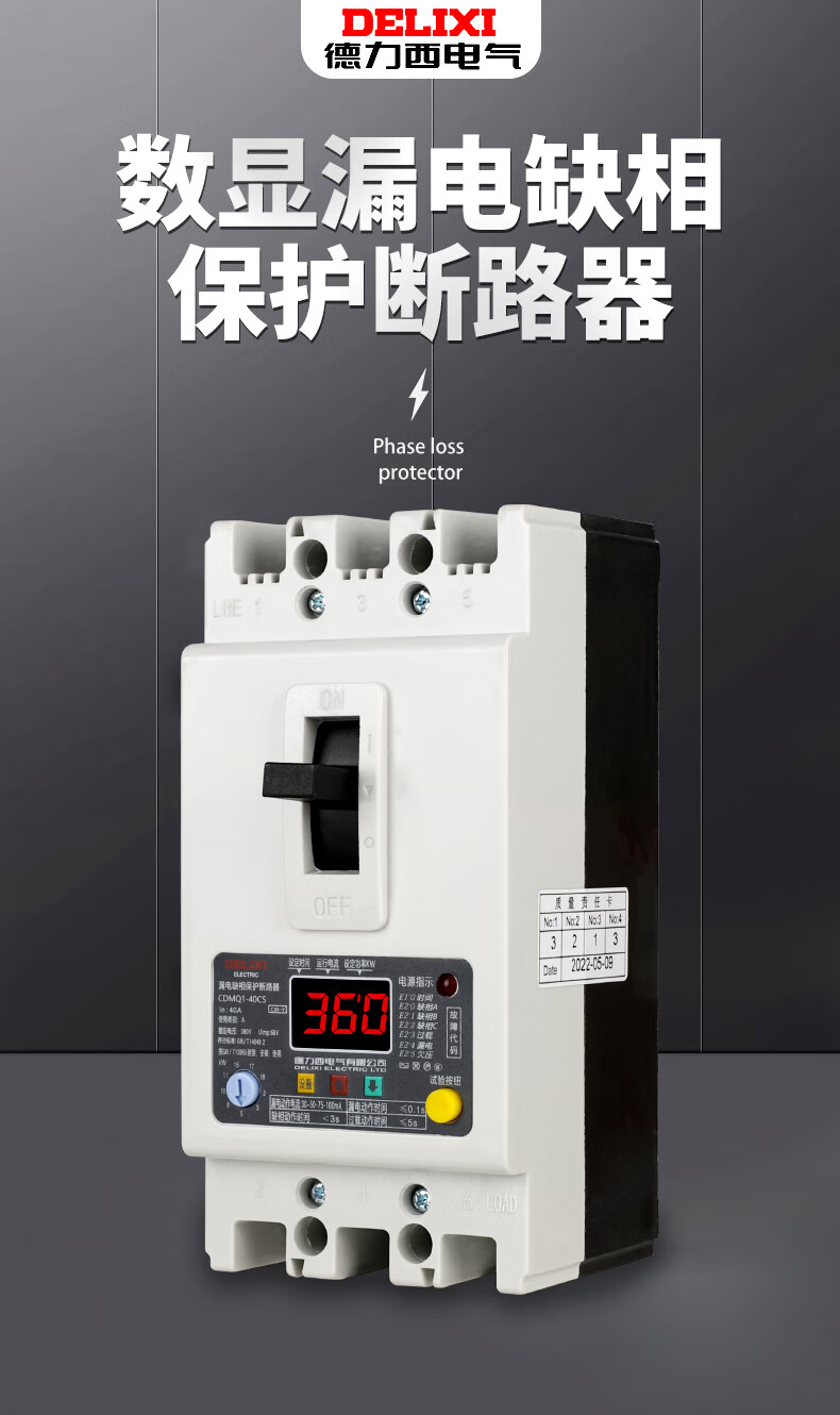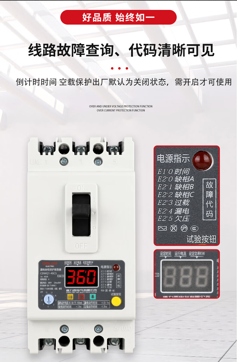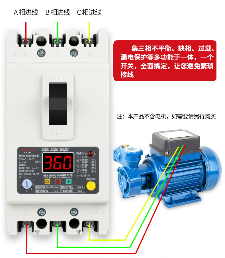 Phase loss protector three-phase with leakage 380V water pump switch circuit breaker 100A air-to-open over-voltage 3P 40A