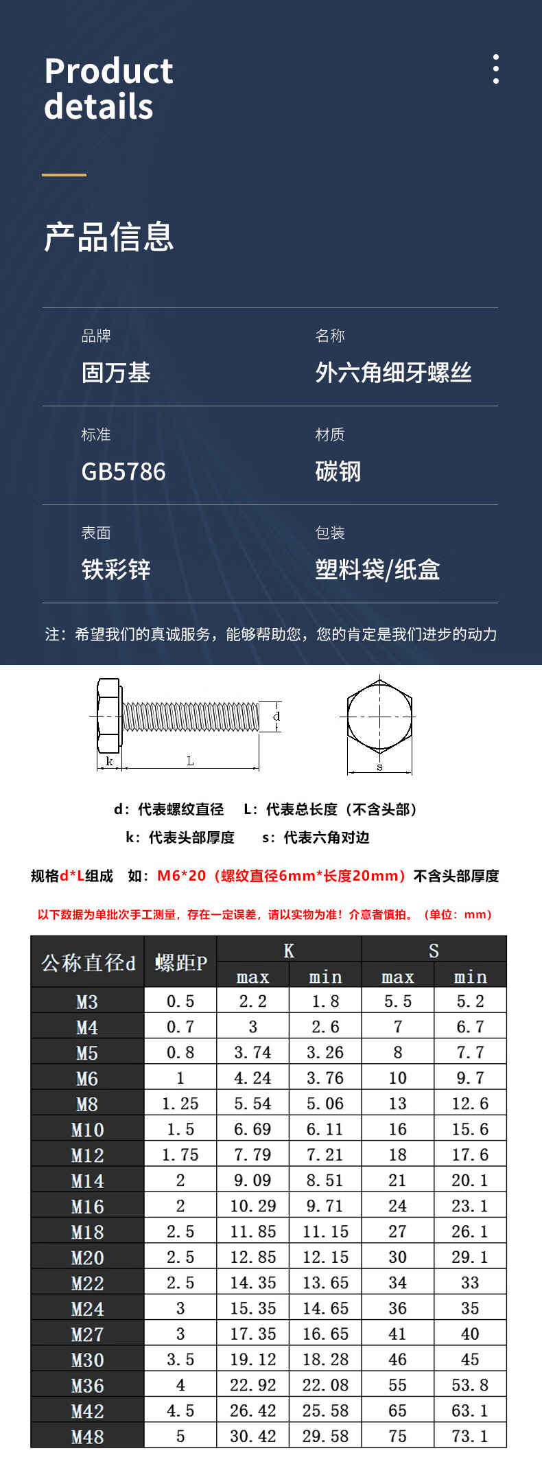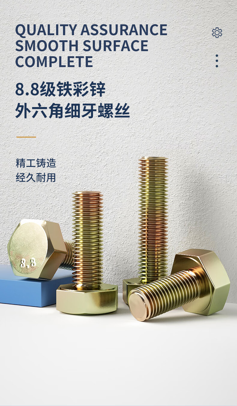 Guwanji 8.8/12.9 grade fine thread external hexagonal screw fine thread fine thread bolt fine buckle screw screw national standard accessories M8x1x25 5 pieces 8.8 grade color zinc