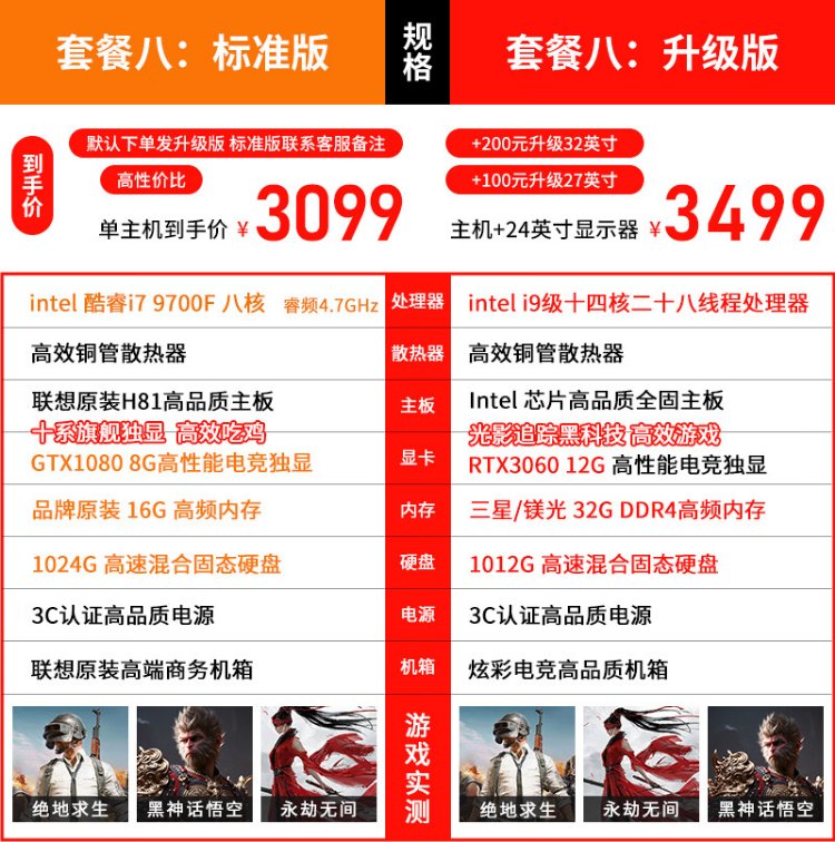 Second-hand computer desktop Intel i9-class 18-core RTX4060 ray-tracing independent display e-sports game Black Myth live chicken game host modeling rendering DIY assembly machine host + 27-inch new curved screen i9-class 18-core + 32G high frequency + ray chasing RTX40608G
