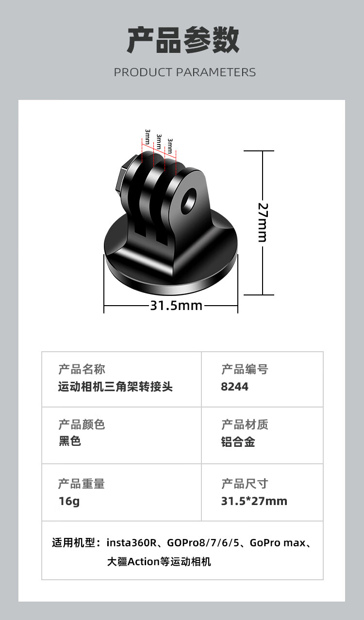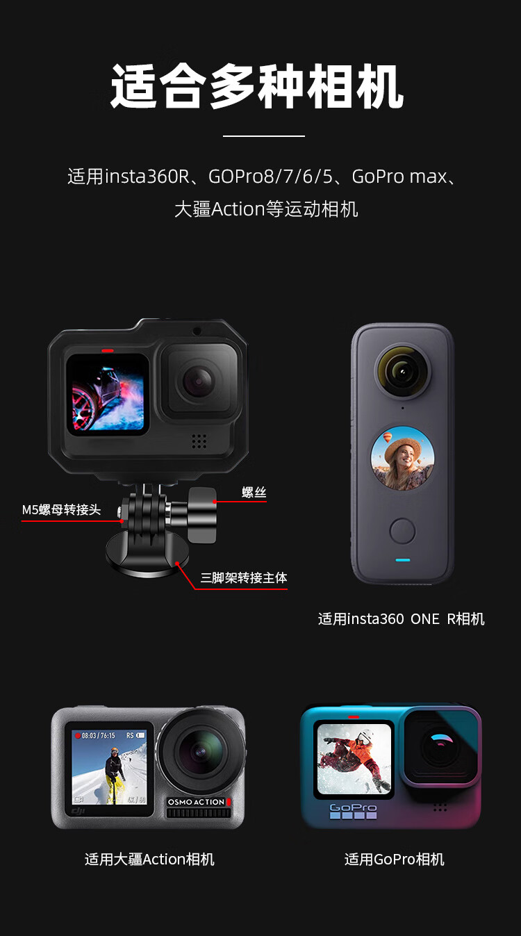 Xinwenxuan metal action camera tripod adapter gopro11/10/9/7/5 DJI accessories conversion base connection 1/4 screw hole 8244