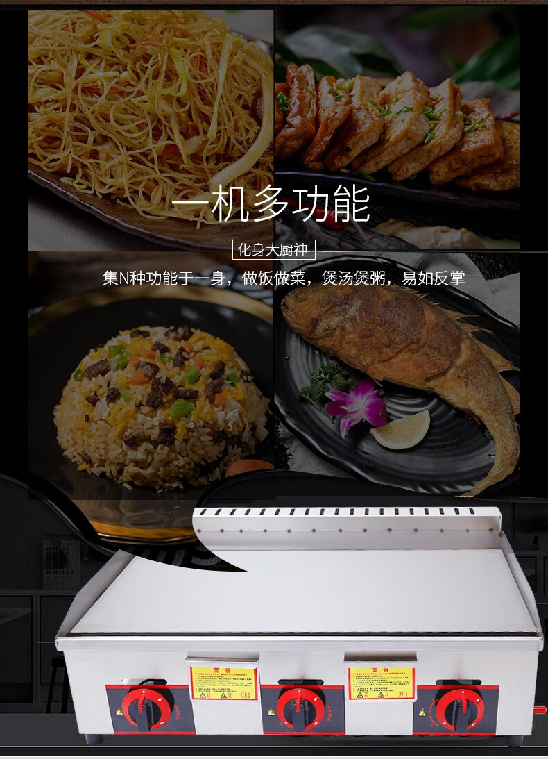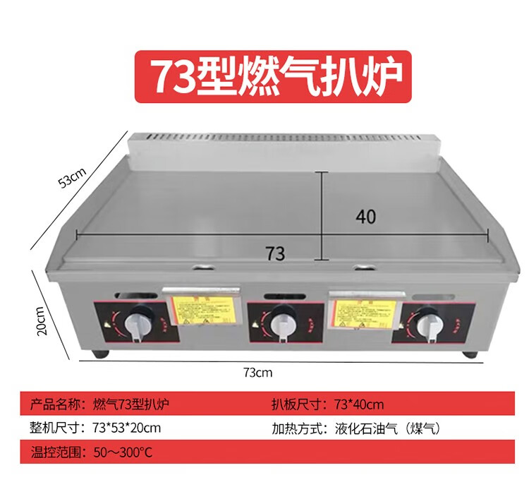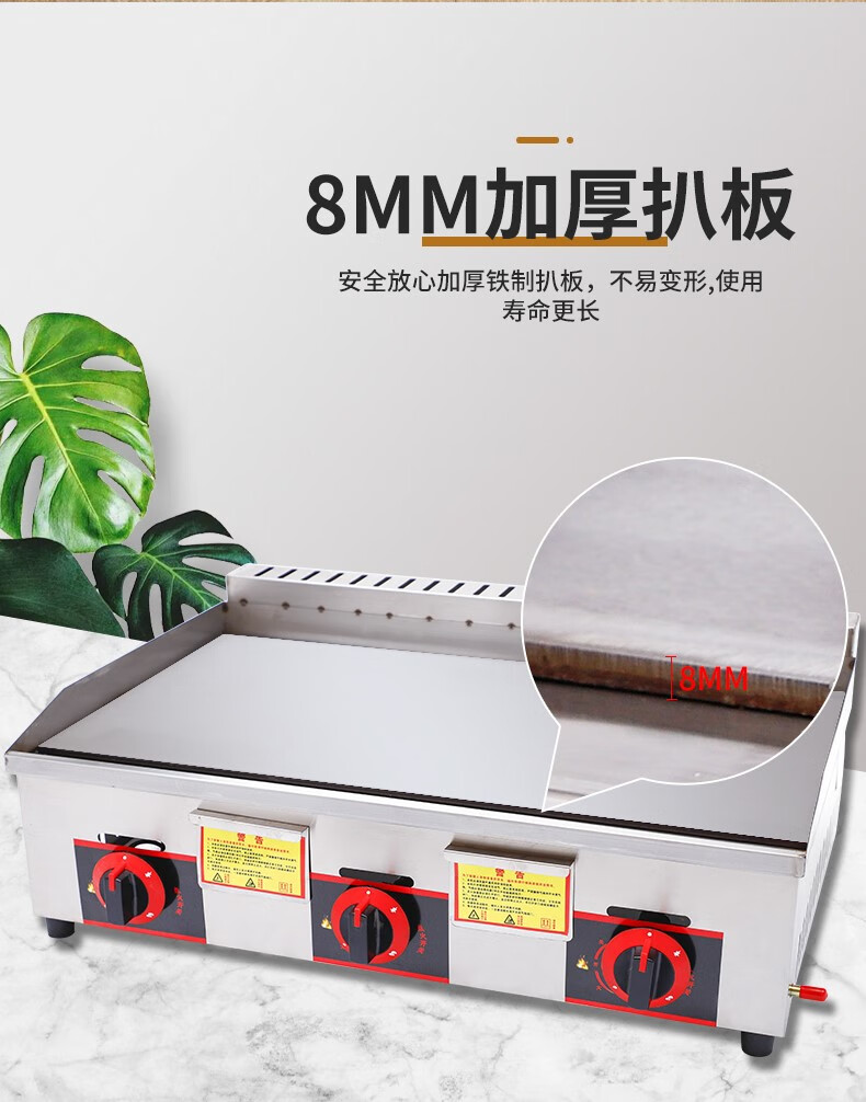 Commercial griddle gas large teppanyaki equipment teppanyaki squid grilled cold noodles machine gas hand cake machine gas 8 mm iron plate 1 meter 50 type