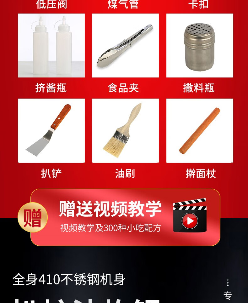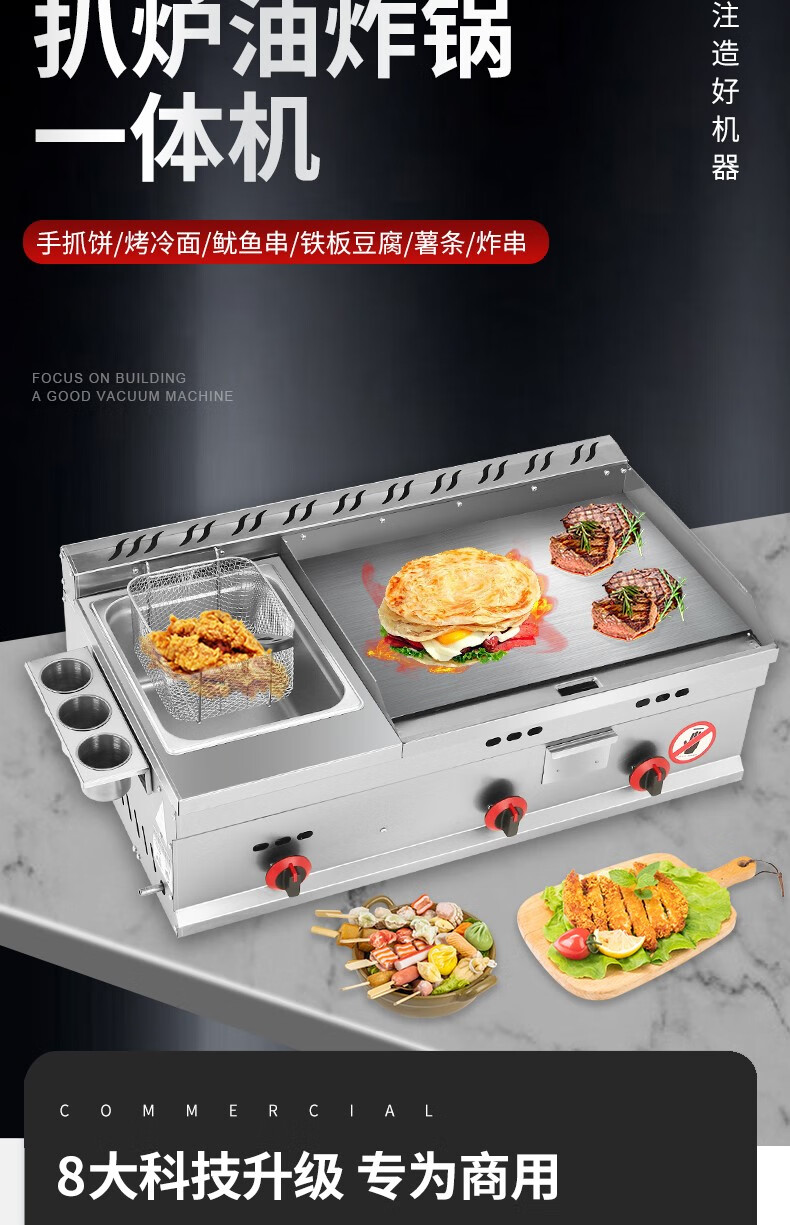 Teppanyaki merchants set up stalls with hand-caught cake machines, Teppanyaki fryers, all-in-one griddles, gas fryers, cold noodle machines, 50x50 black iron plates, thickened griddles, and thickened large fryers.
