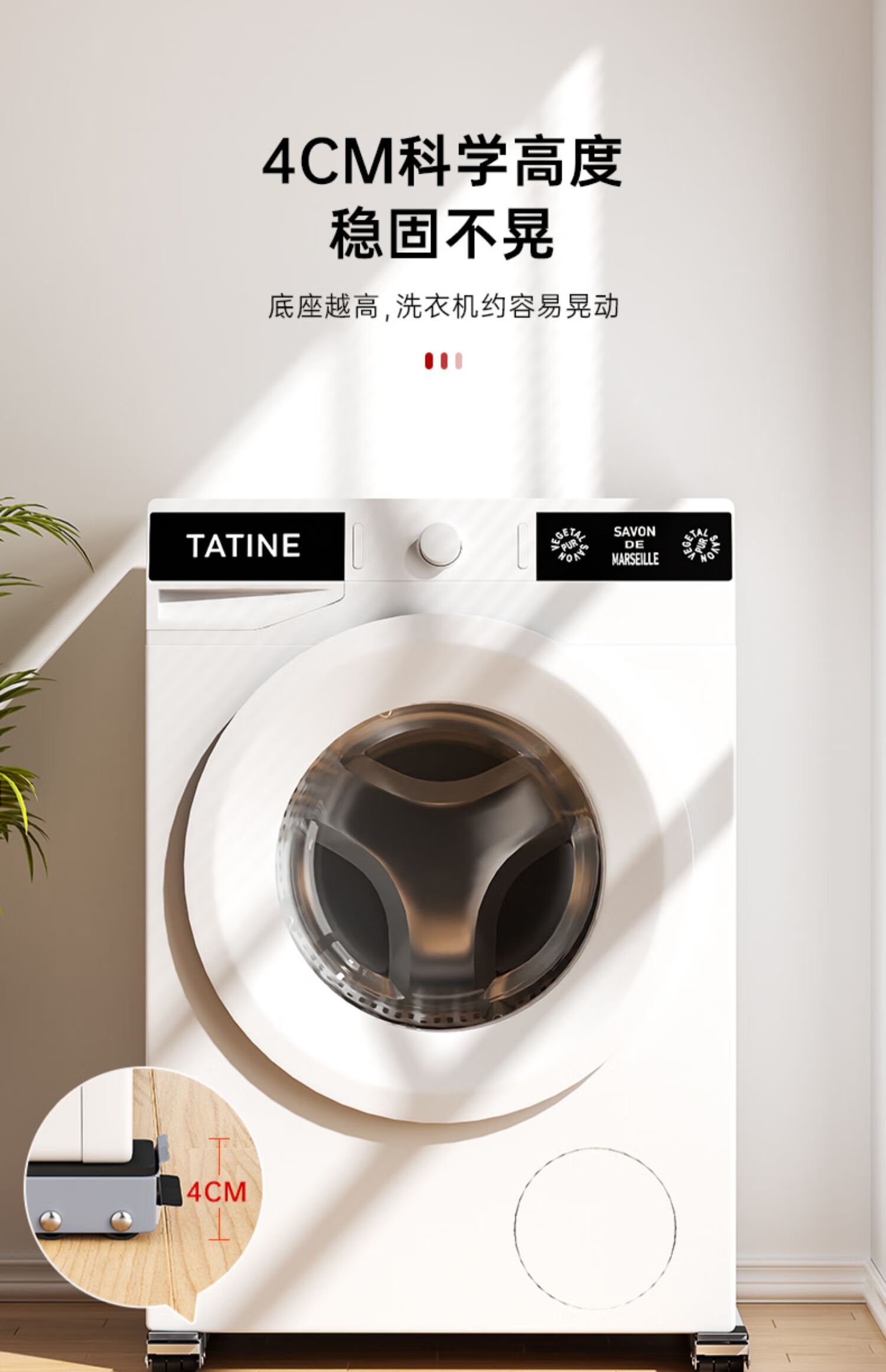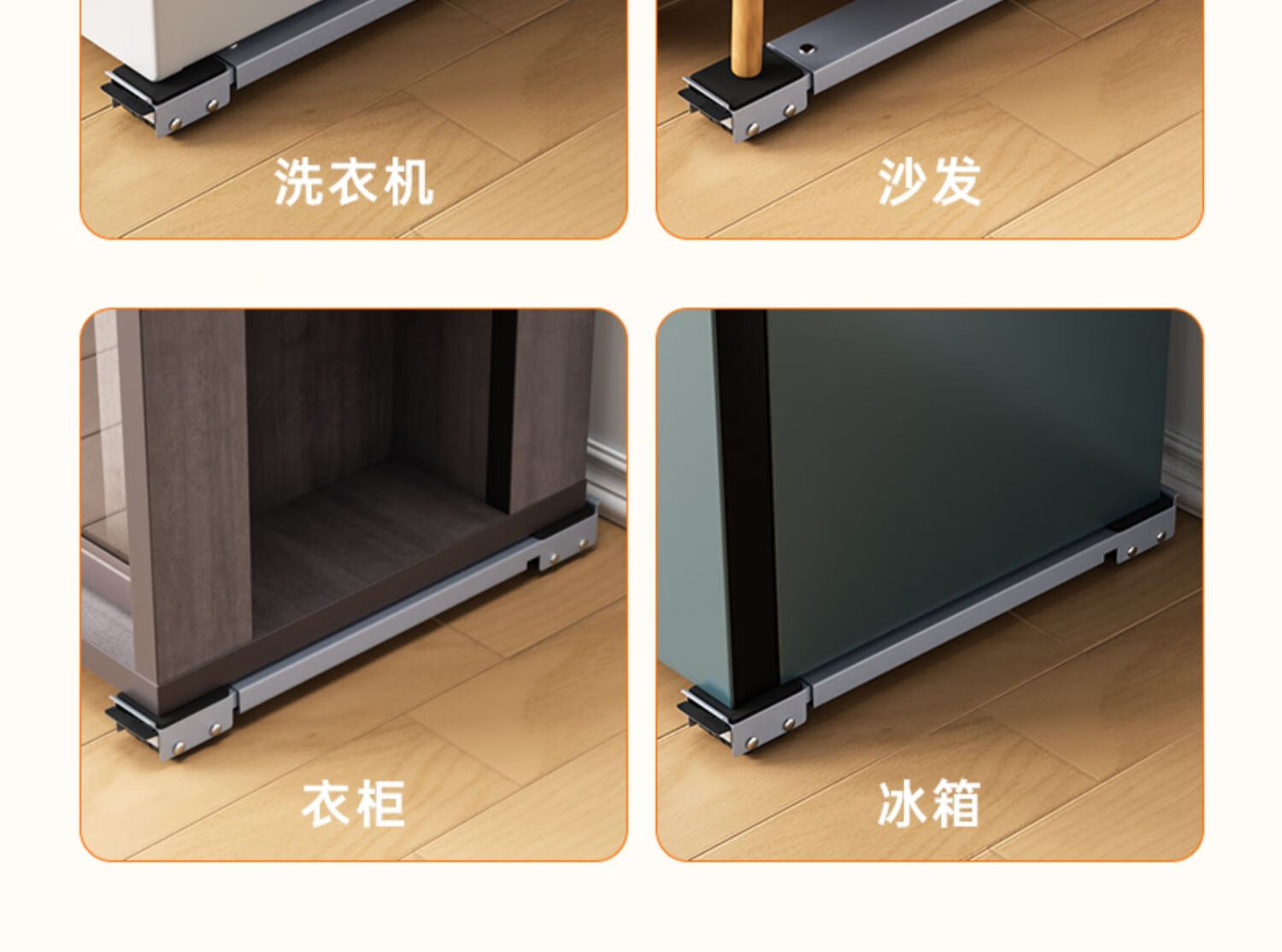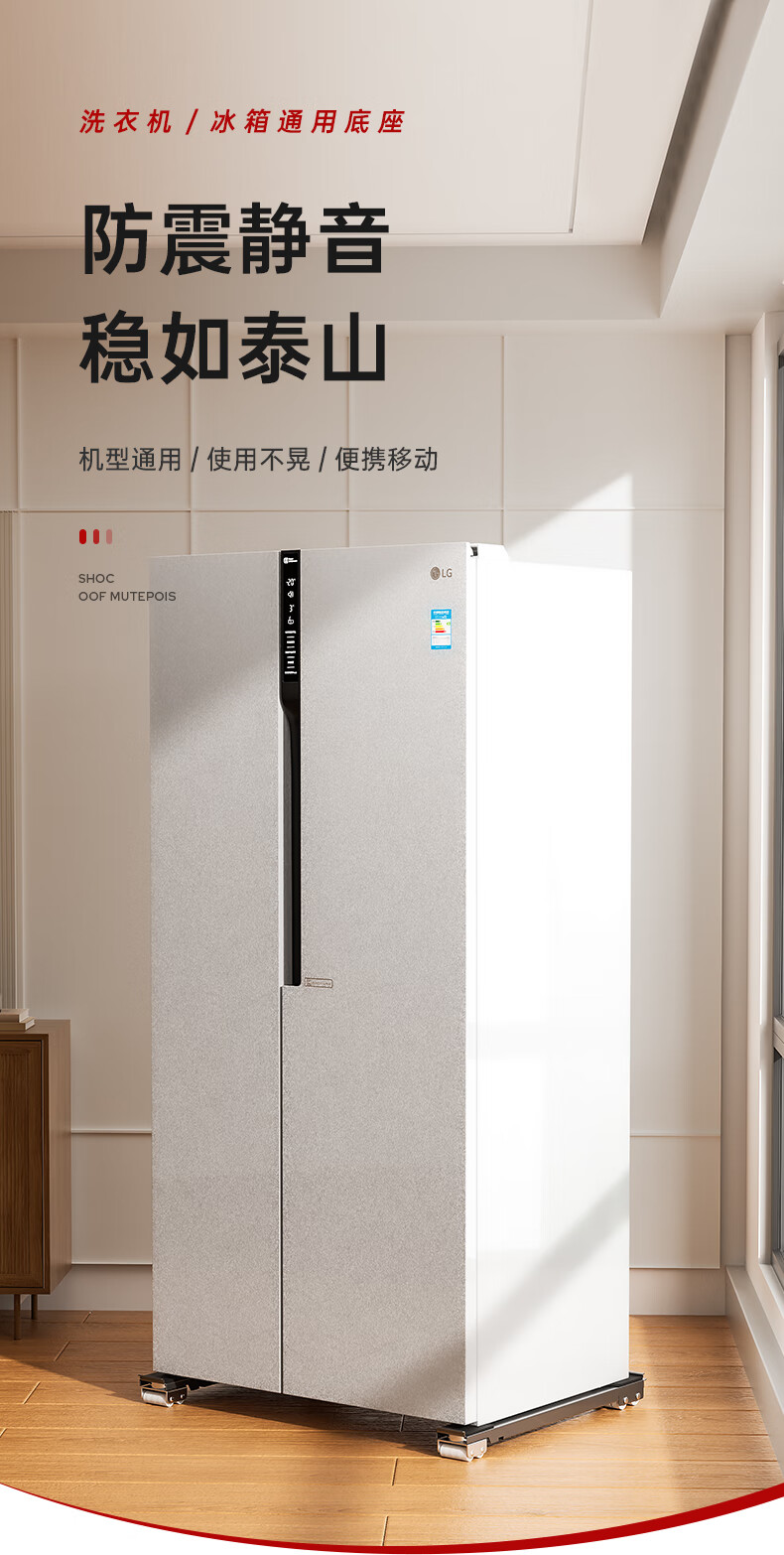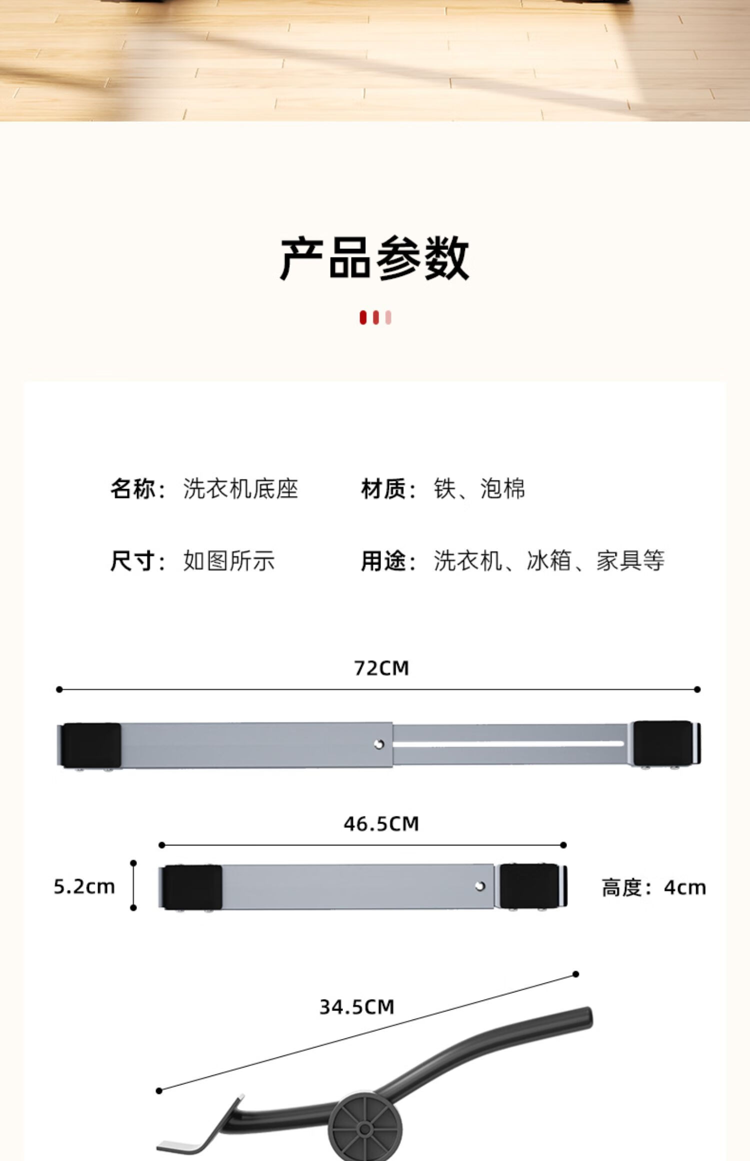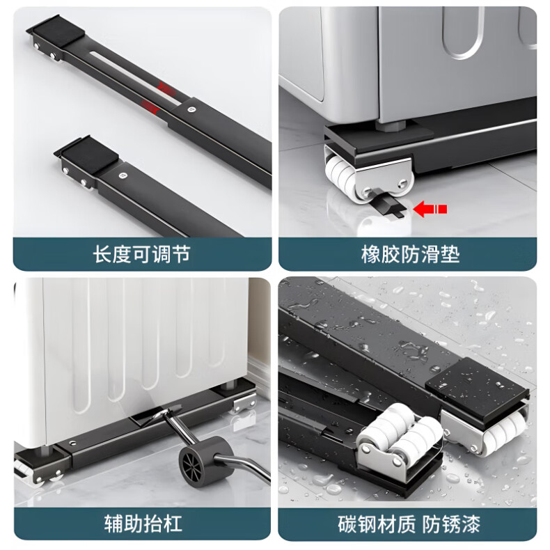 Sporadic washing machine base shelf universal wheel refrigerator storage rack removable universal roller impeller fully automatic suitable for Haier Little Swan Siemens Panasonic shock-proof pad height bracket one-way silver gray 24 wheels retractable 45-72cm