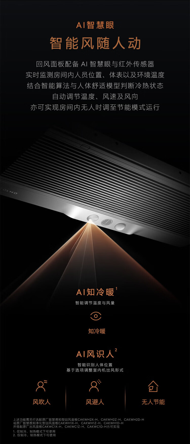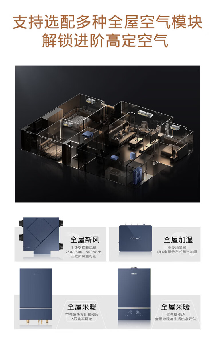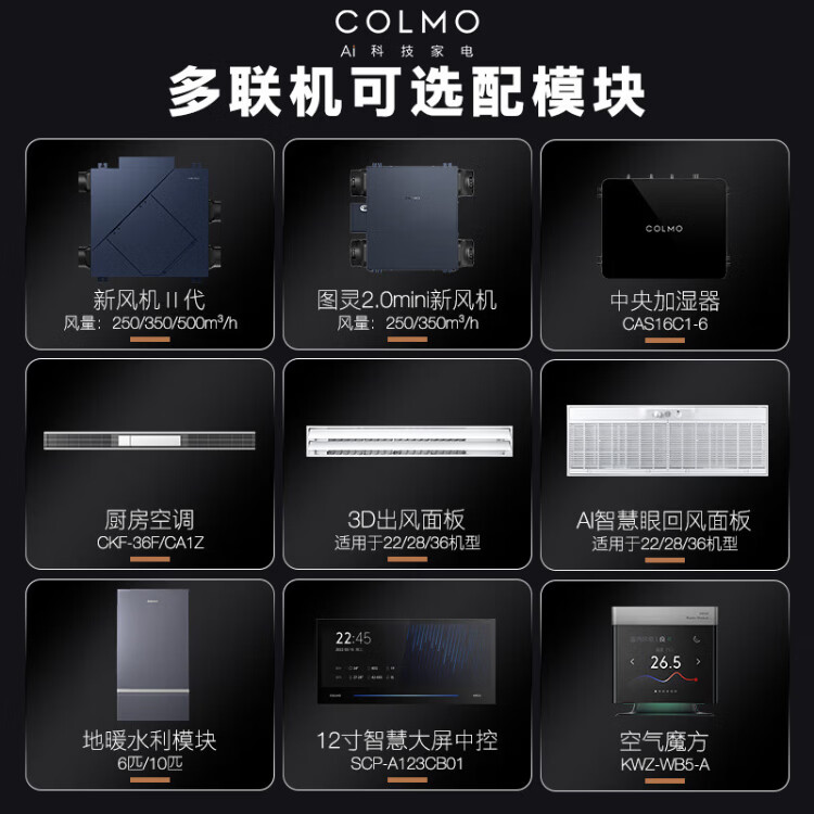 COLMO Turing second generation central air conditioner multi-split with smart eyes and no wind sense 160/180 six horses seven horses one to five full DC variable frequency multi-split air duct AI voice 9 horses first class energy efficiency one to six Turing three control