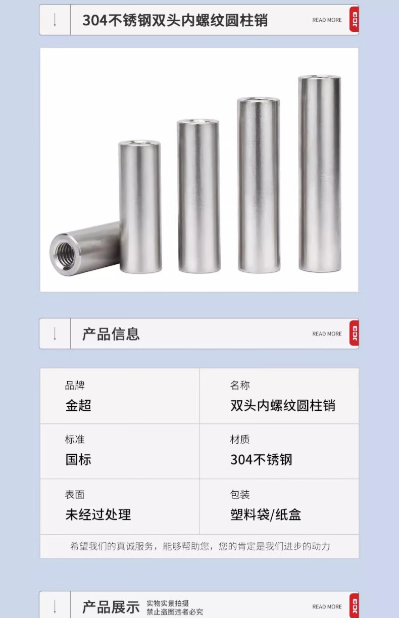 Jinchao 304 stainless steel double-headed internally threaded cylindrical pin with holes at both ends support column connecting rod guide column M4M5M6M8M10 5*10*M3 (5 pieces) through holes