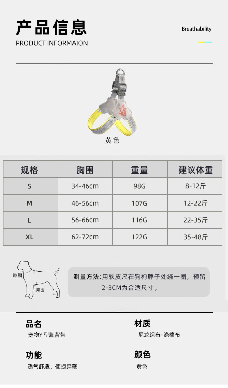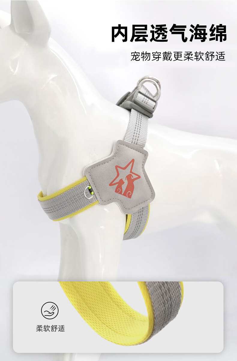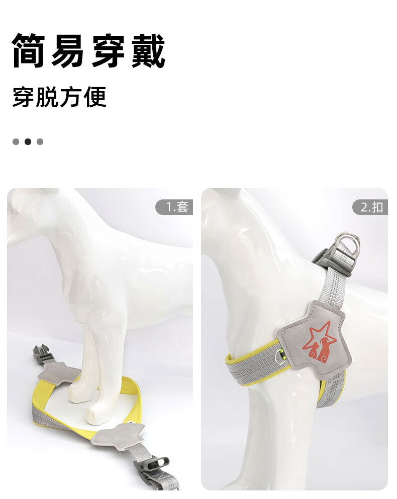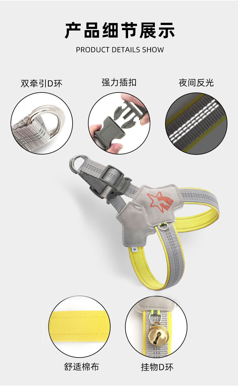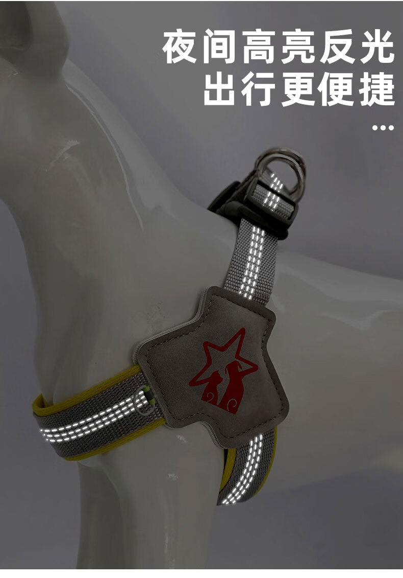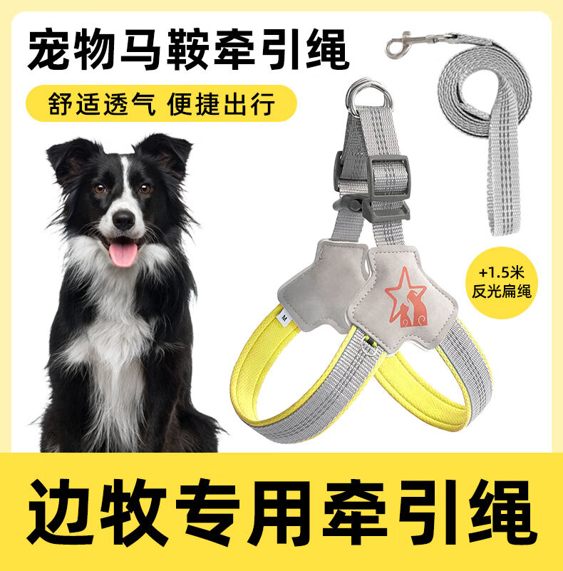 Guaipai Border Collie Special Harness Leash Dog Collar Vest Type Dog Walking Rope Pet Collar Yellow + 1.5 Meter Leash XL-(Recommended 35-48 catties)