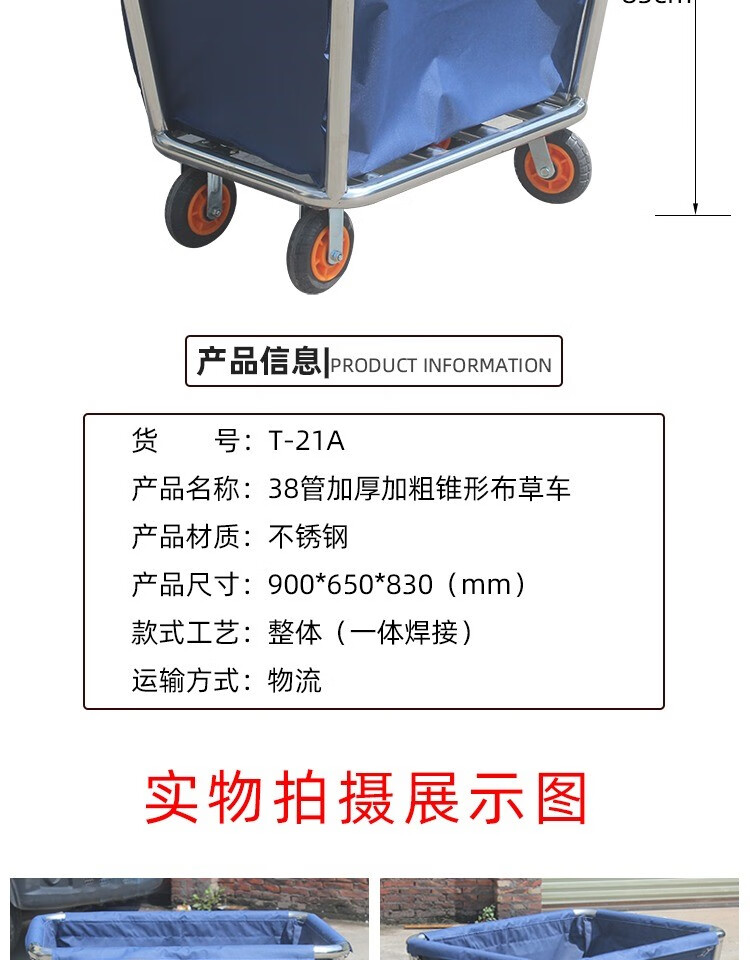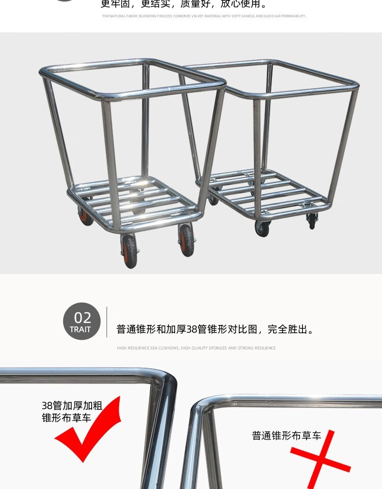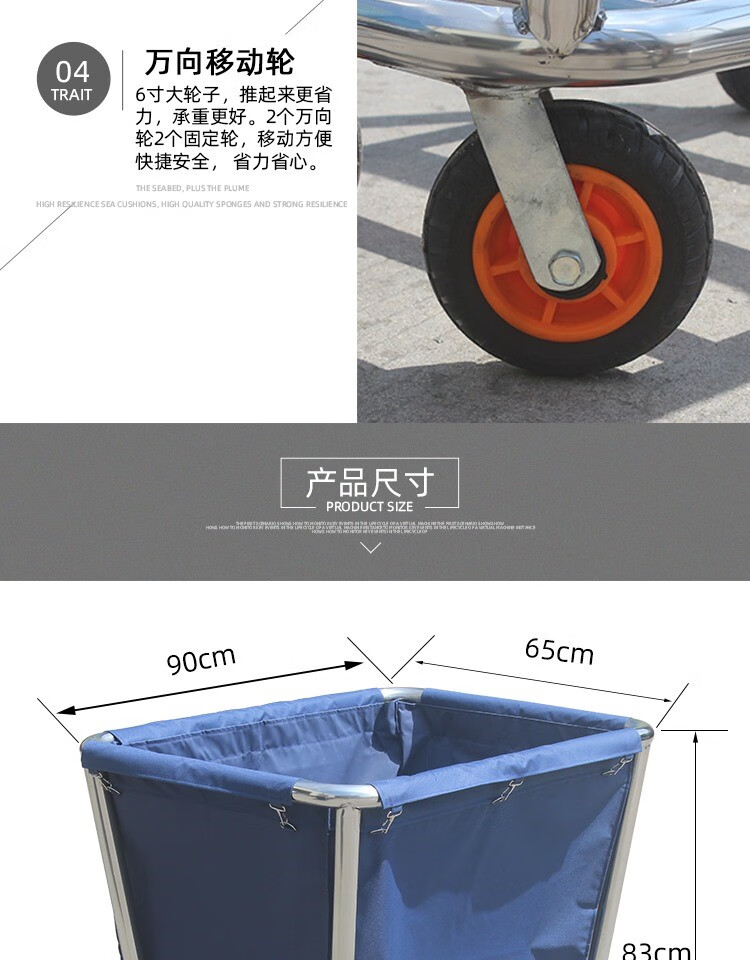 Linen Cart Hotel Guest Room Service Cart Stainless Steel Cart Laundry Room Dry Cleaning Shop Storage Recycling Car Thickened Disassembly Tapered Blue Linen Cart