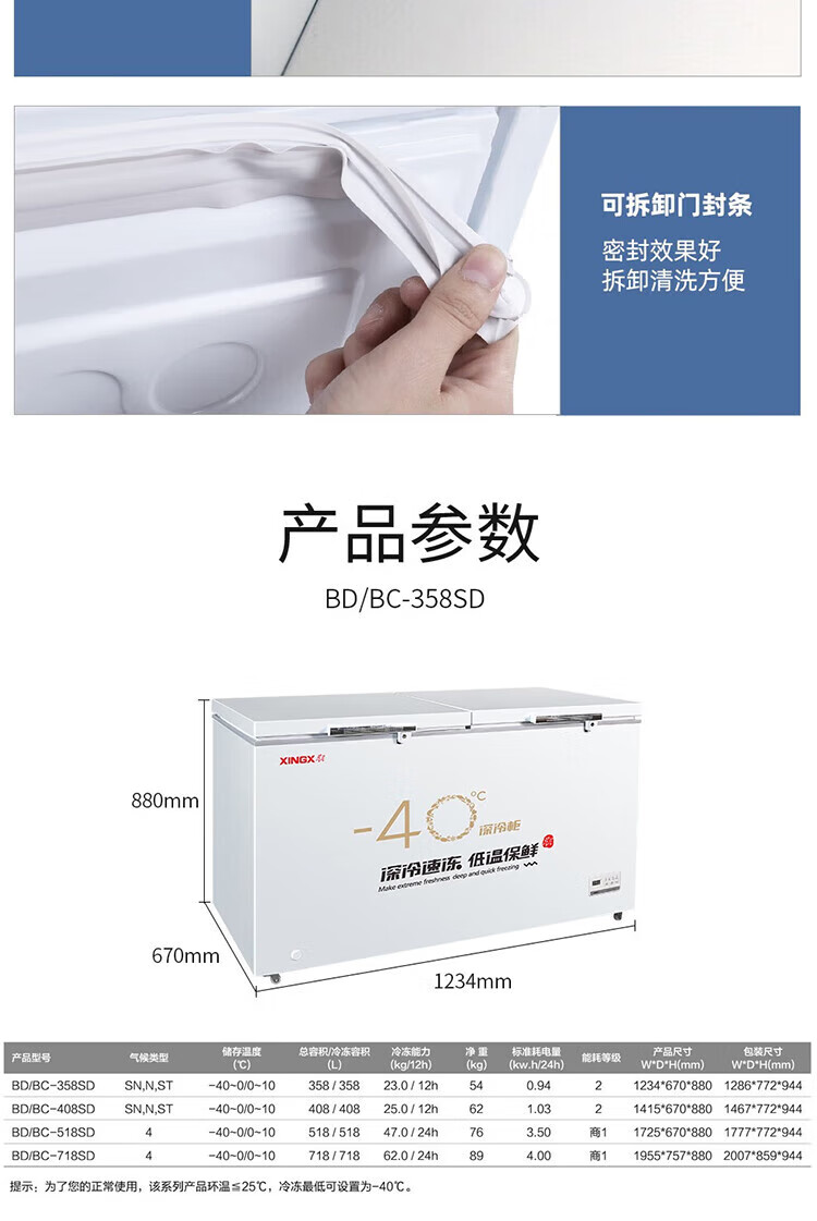 Star Freezer 408/718L Minus 40 Deep Freezer Horizontal Single Temperature Freezer Deep Freezer Commercial Home BD/BC-408GS 408L