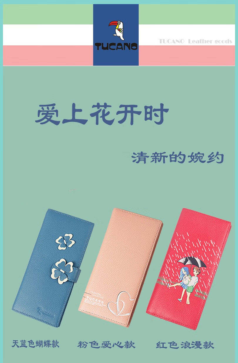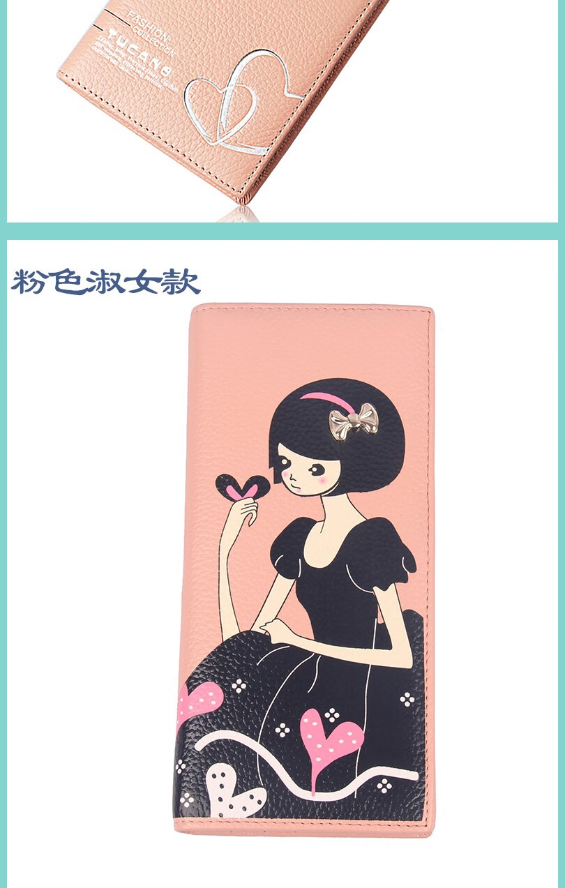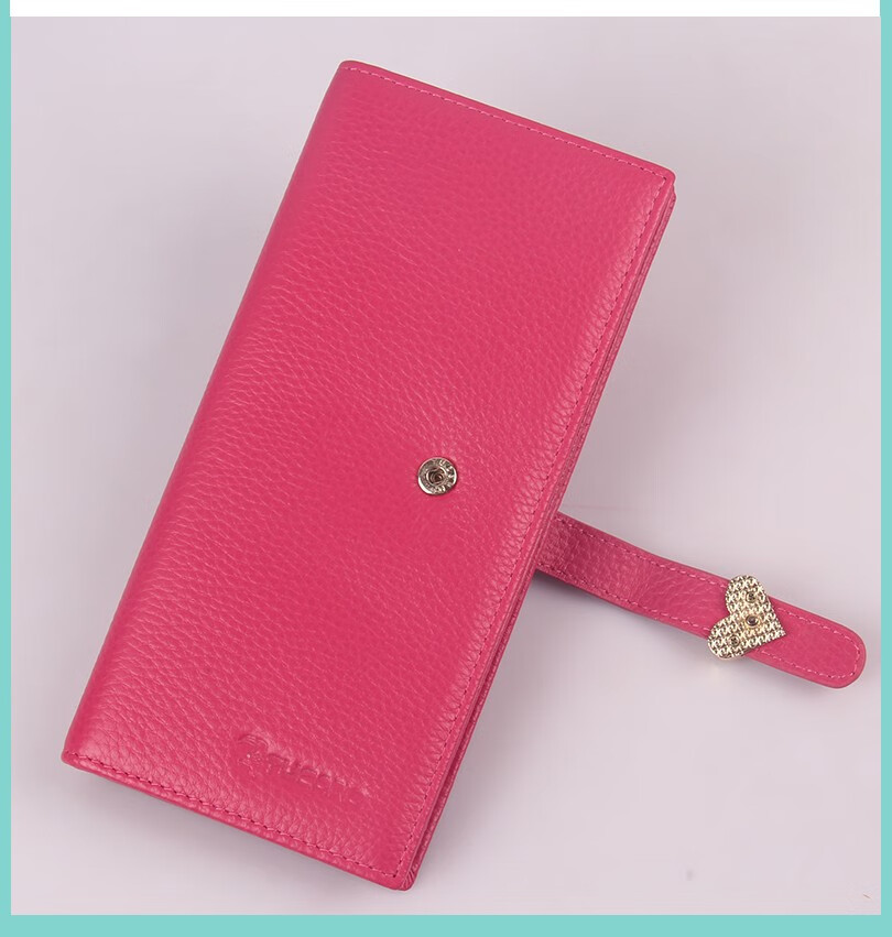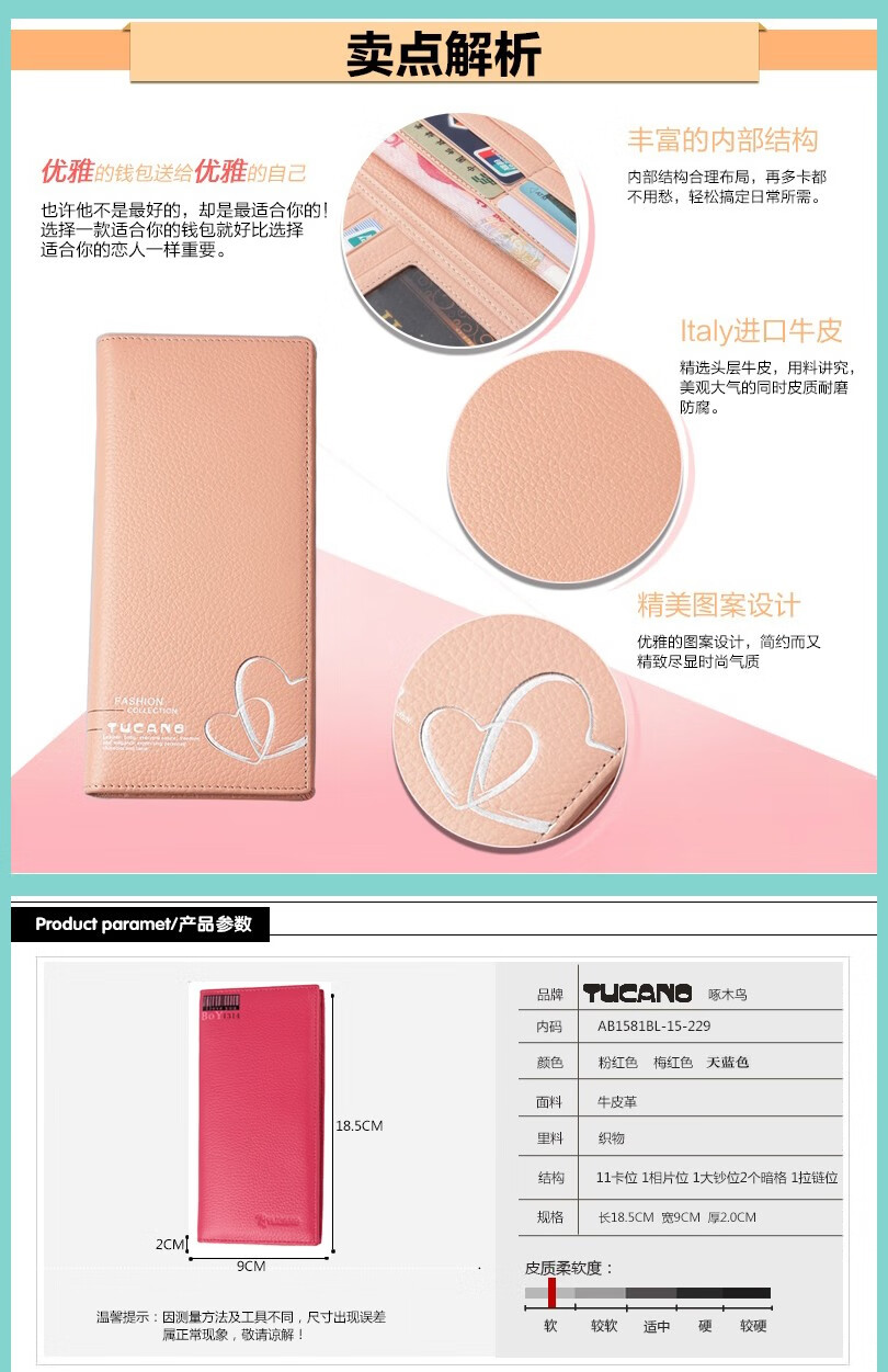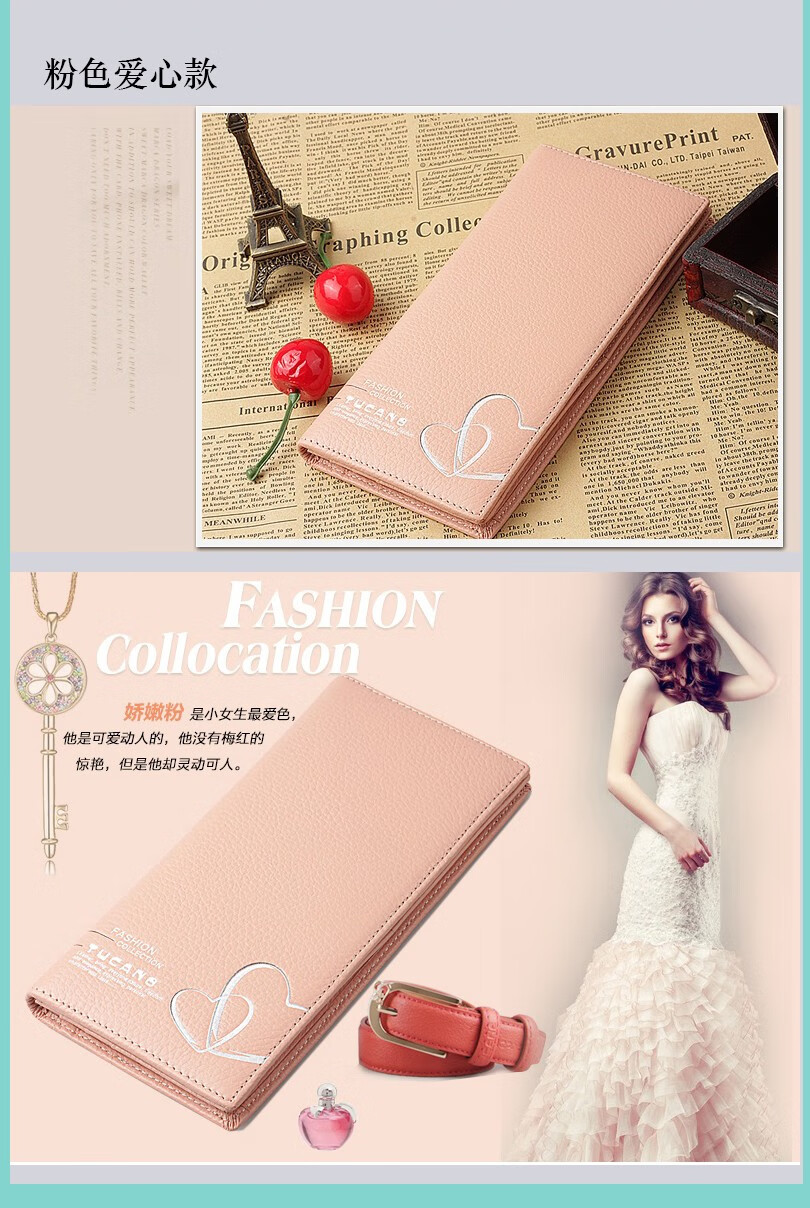 Woodpecker (TUCANO) Women's Wallet Long Thin Leather New Style Fashion Simple First Layer Cowhide Women's Wallet Student Wallet Pink Love Style
