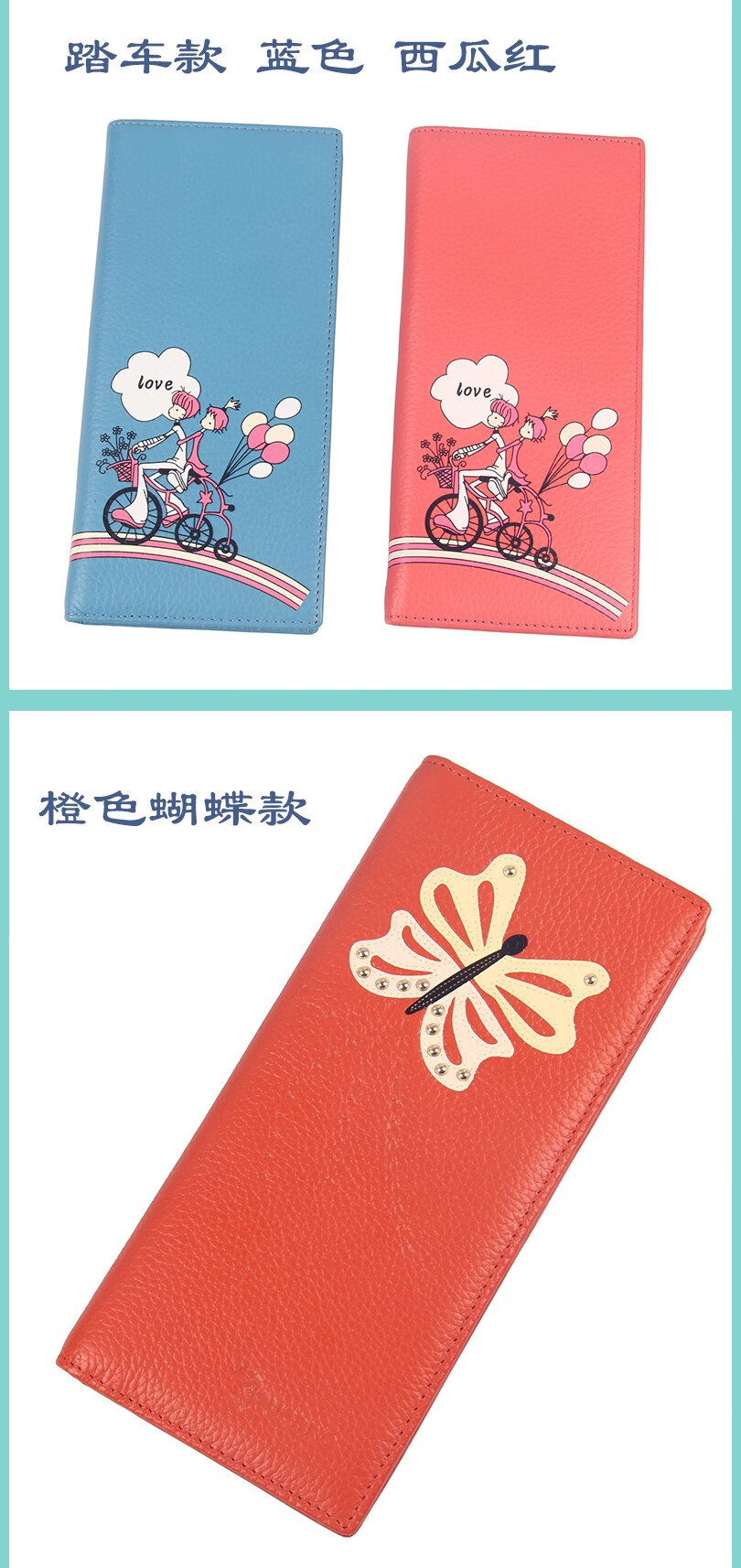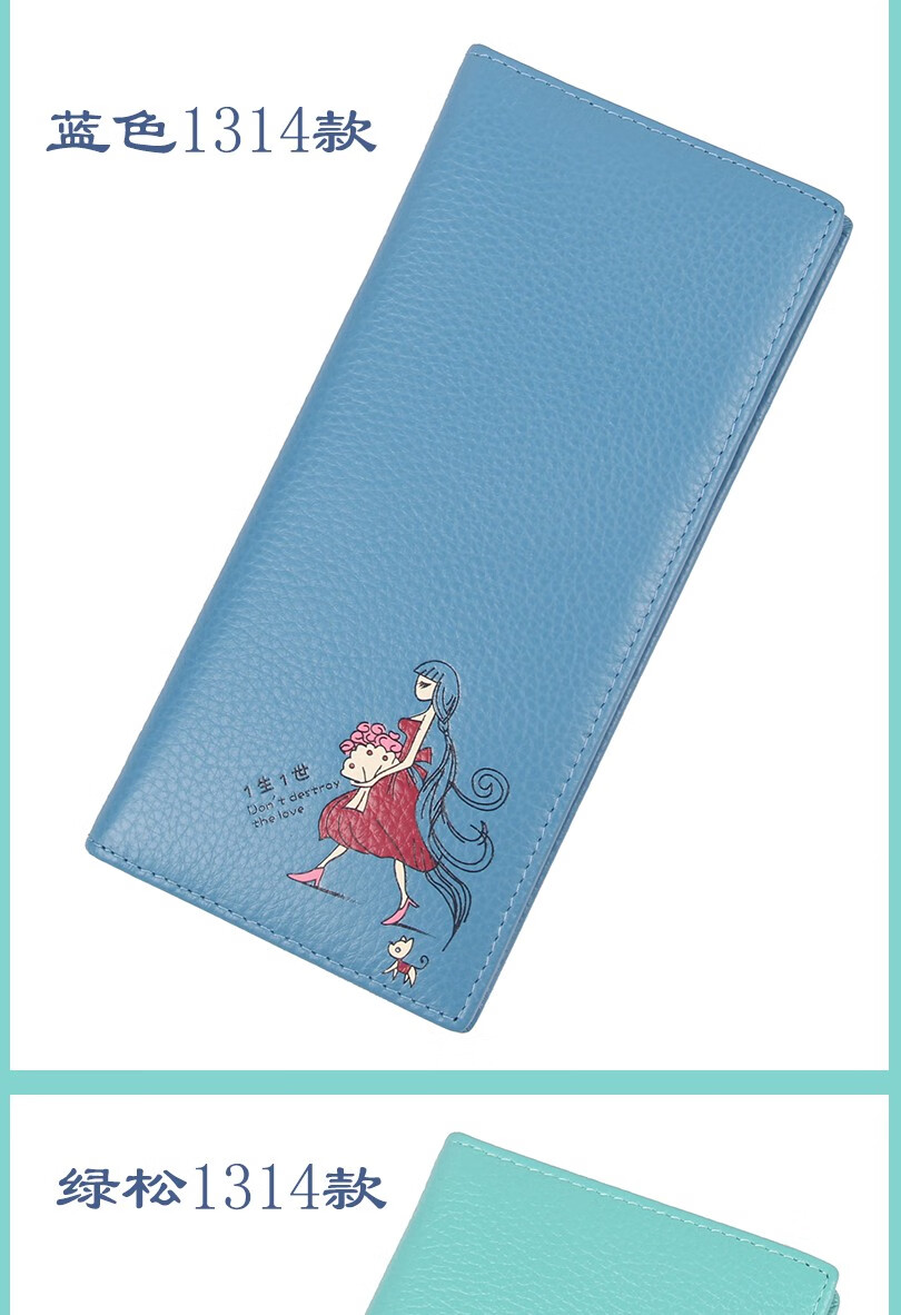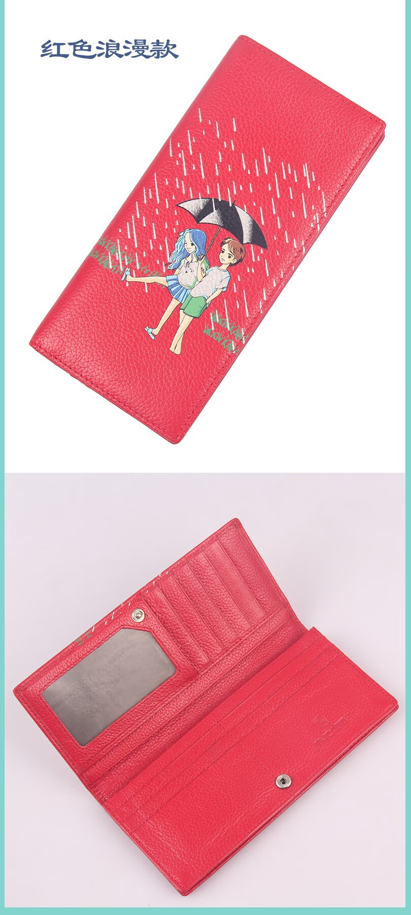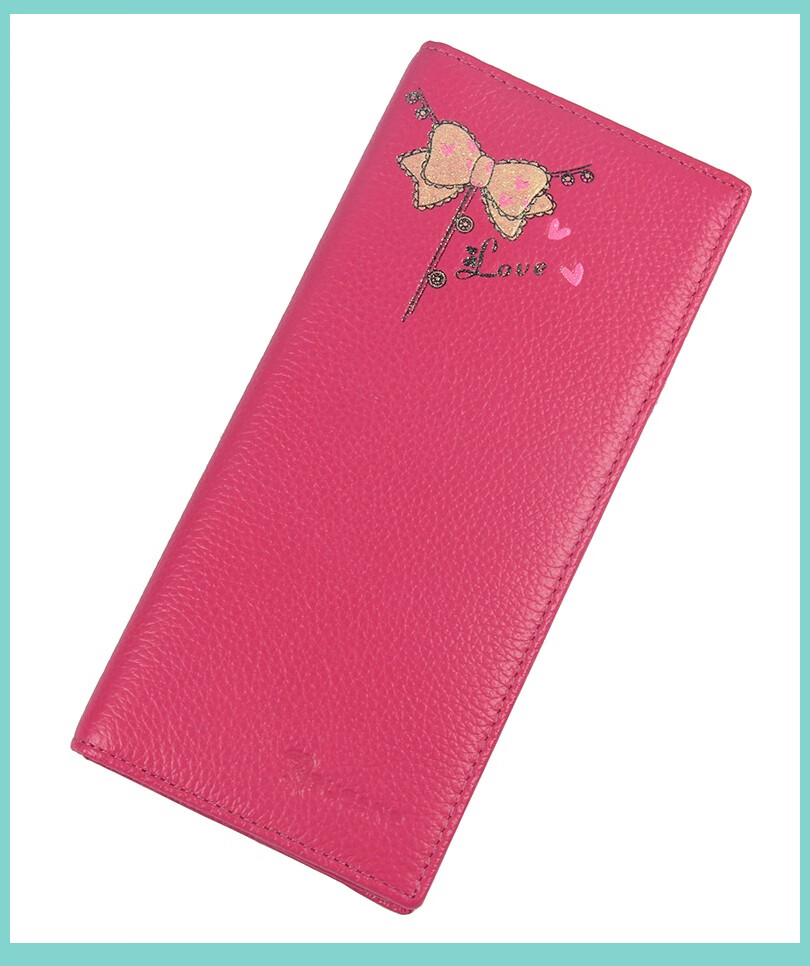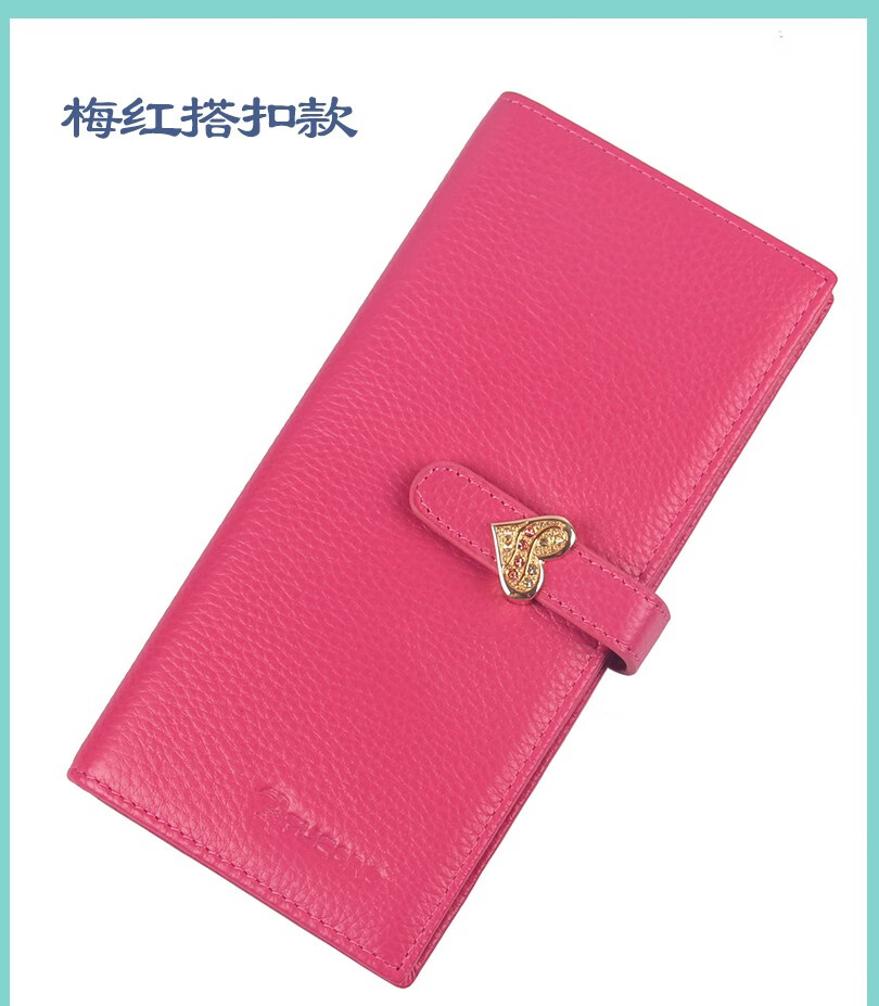 Woodpecker (TUCANO) Women's Wallet Long Thin Leather New Style Fashion Simple First Layer Cowhide Women's Wallet Student Wallet Pink Love Style