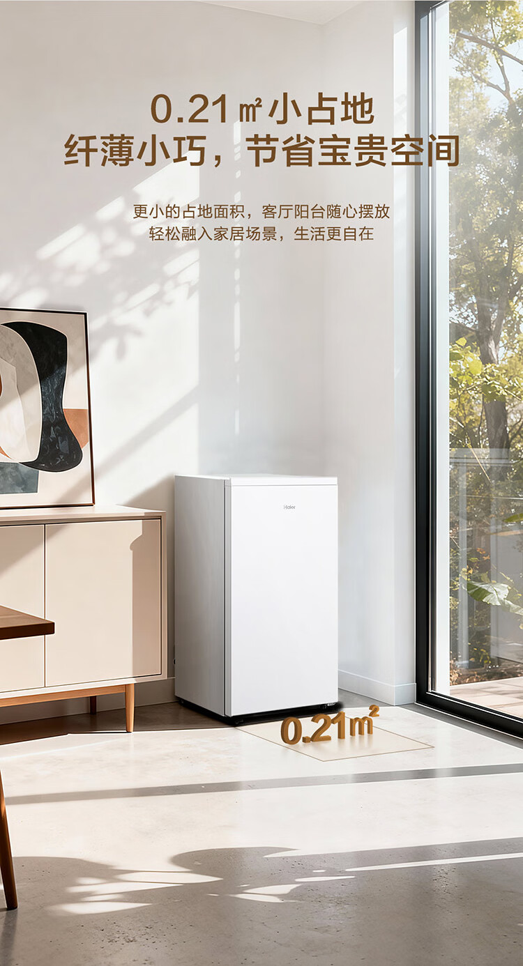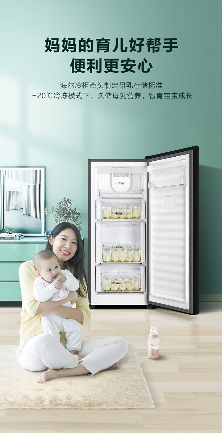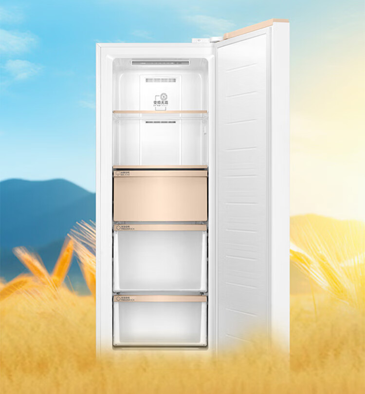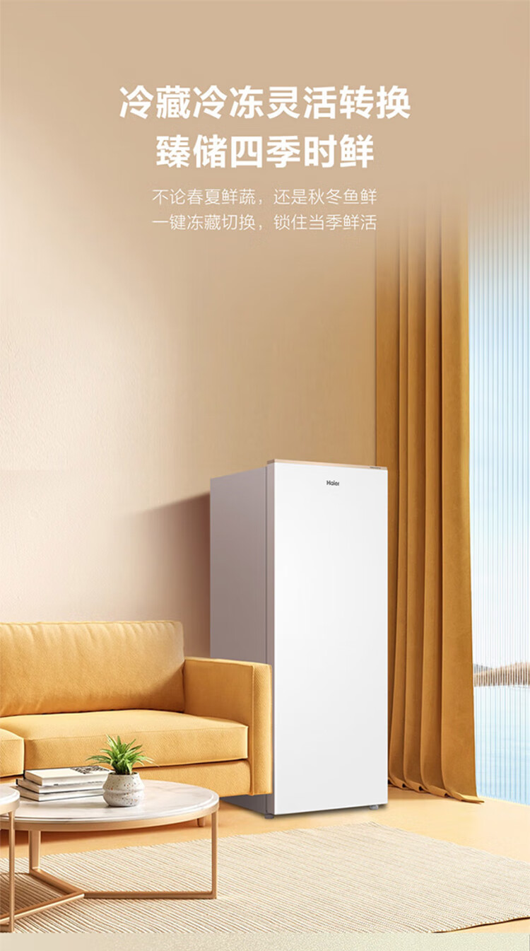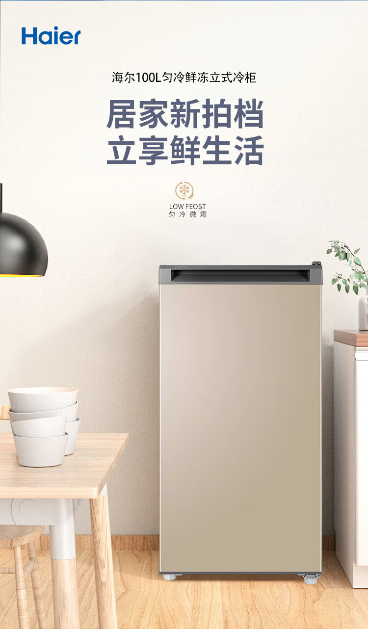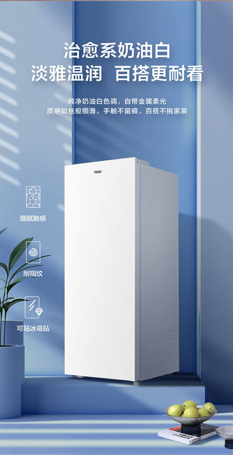 Haier Camellia series fresh frozen vertical freezer air-cooled frost-free/uniformly cooled micro-frost household small refrigerator refrigerated freezer side-opening breast milk storage freezer drawer 100 liters of pomelo fresh frozen | 4D evenly cooled micro-frost 100 liters