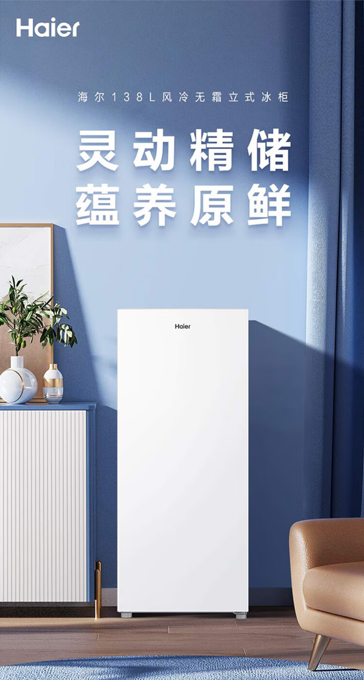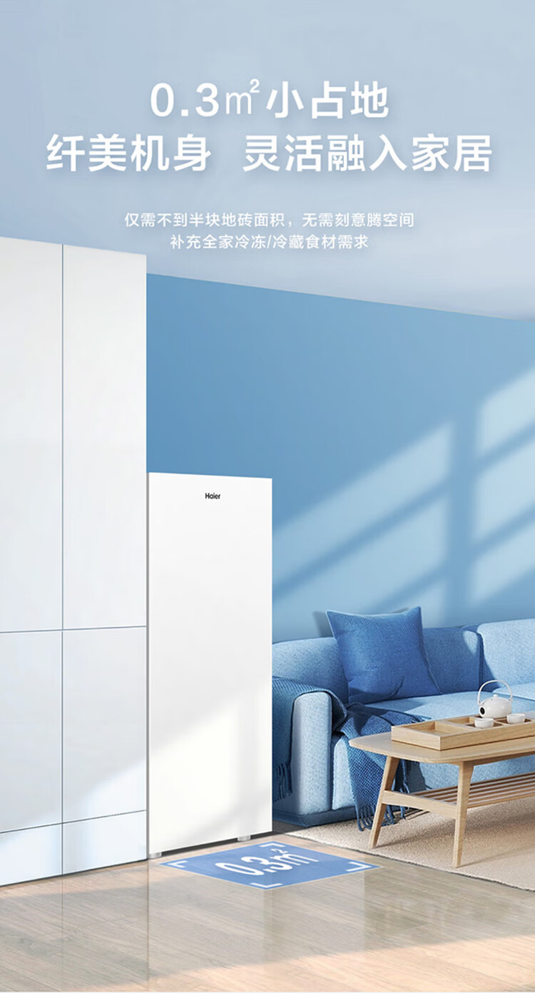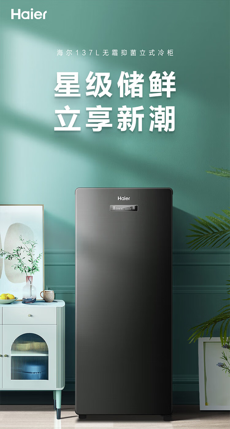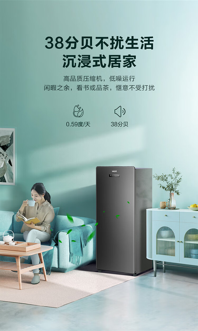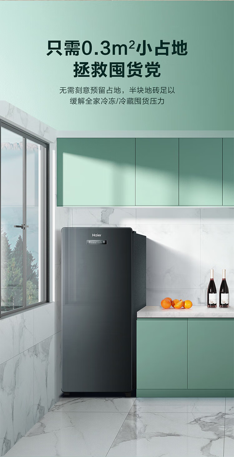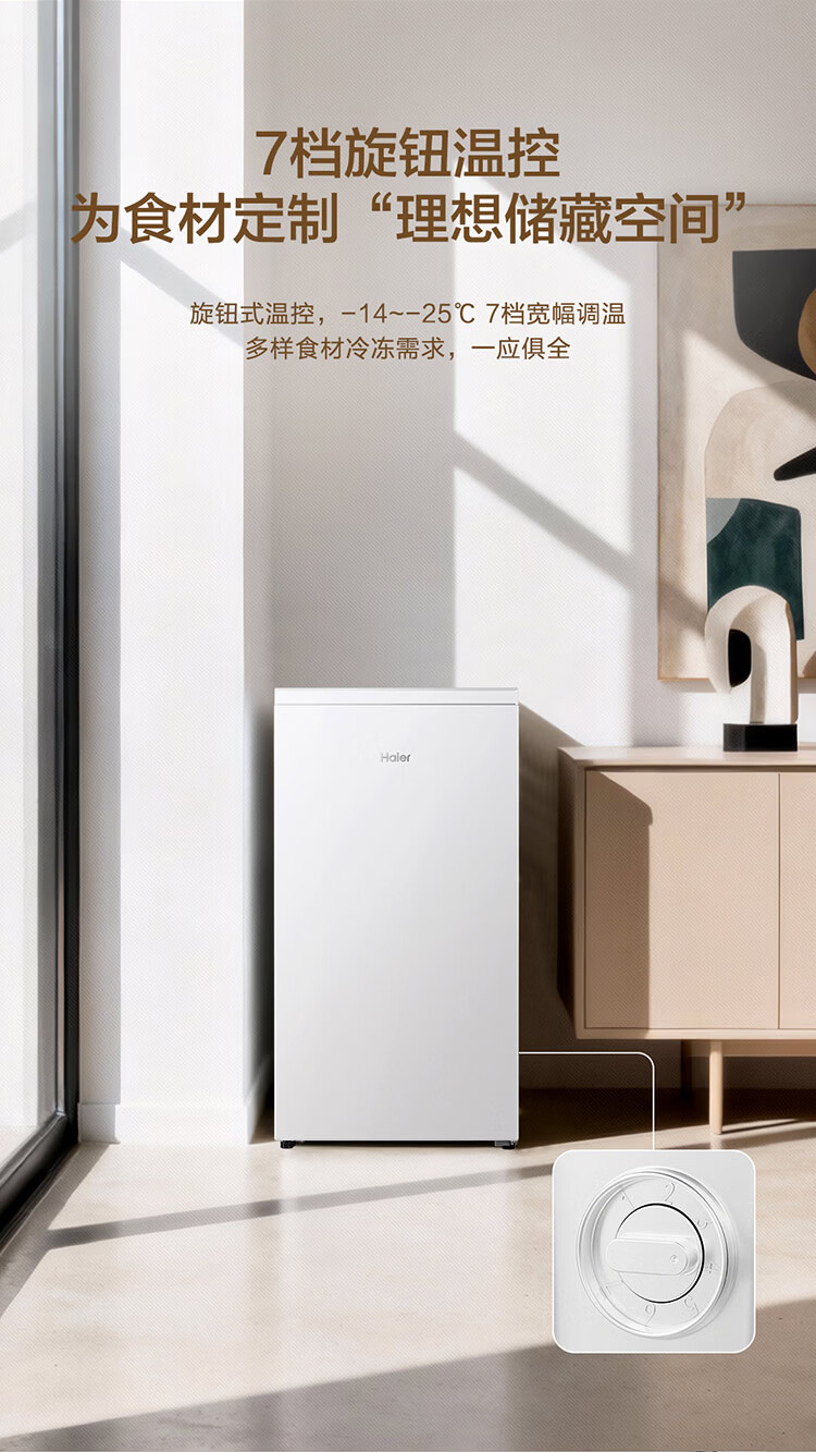Haier Camellia series fresh frozen vertical freezer air-cooled frost-free/uniformly cooled micro-frost household small refrigerator refrigerated freezer side-opening breast milk storage freezer drawer 100 liters of pomelo fresh frozen | 4D evenly cooled micro-frost 100 liters
