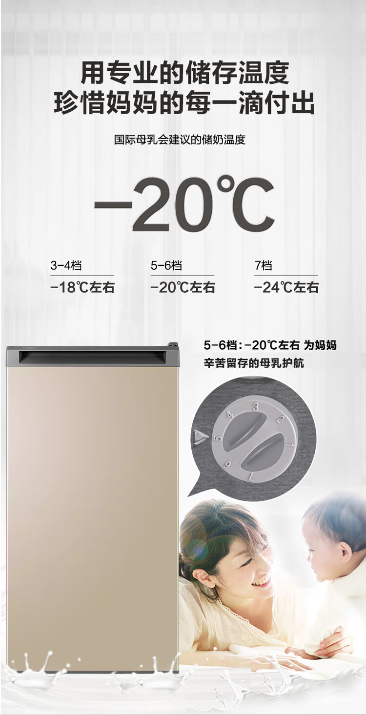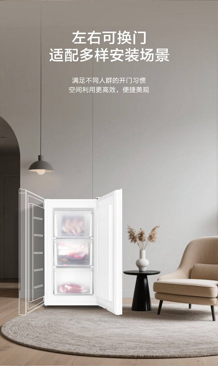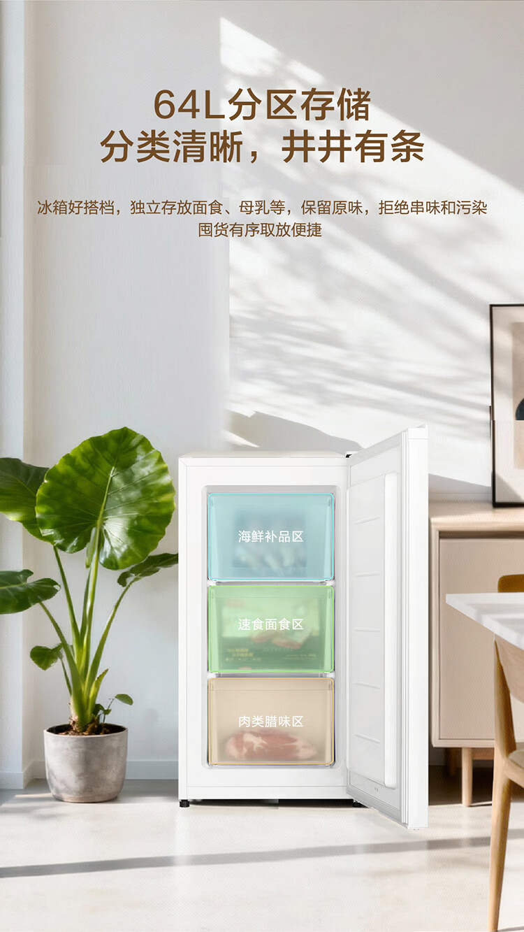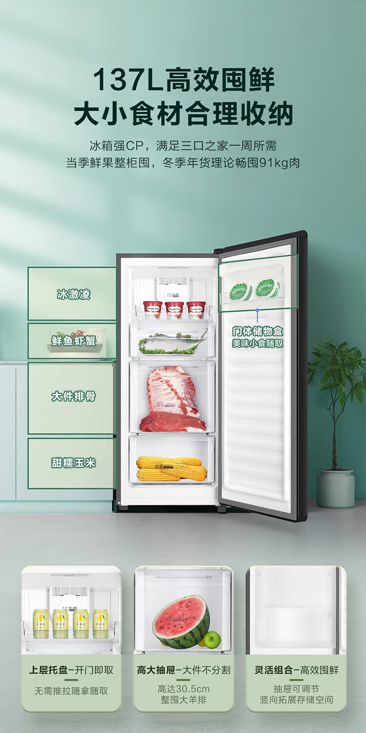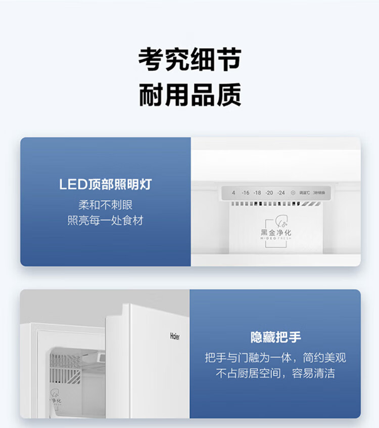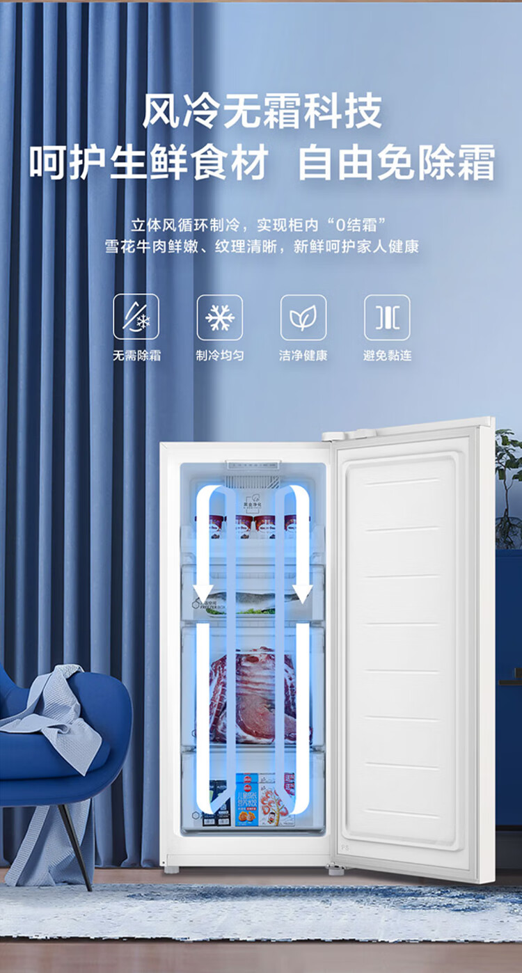 Haier Camellia series fresh frozen vertical freezer air-cooled frost-free/uniformly cooled micro-frost household small refrigerator refrigerated freezer side-opening breast milk storage freezer drawer 100 liters of pomelo fresh frozen | 4D evenly cooled micro-frost 100 liters