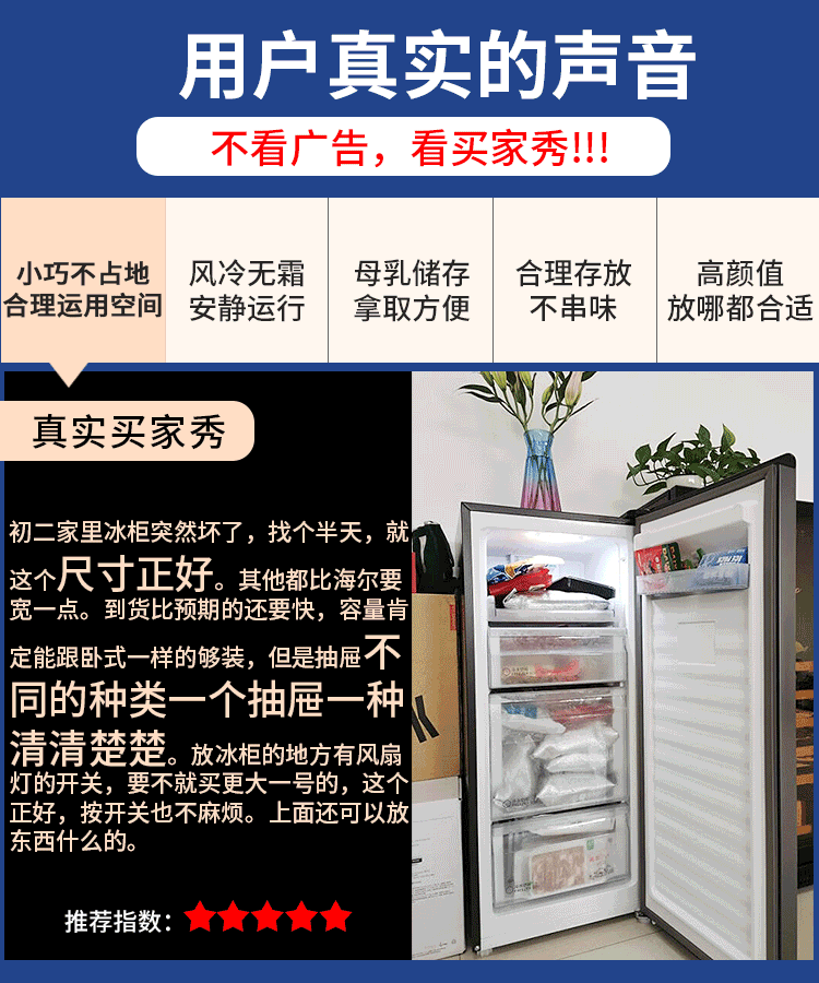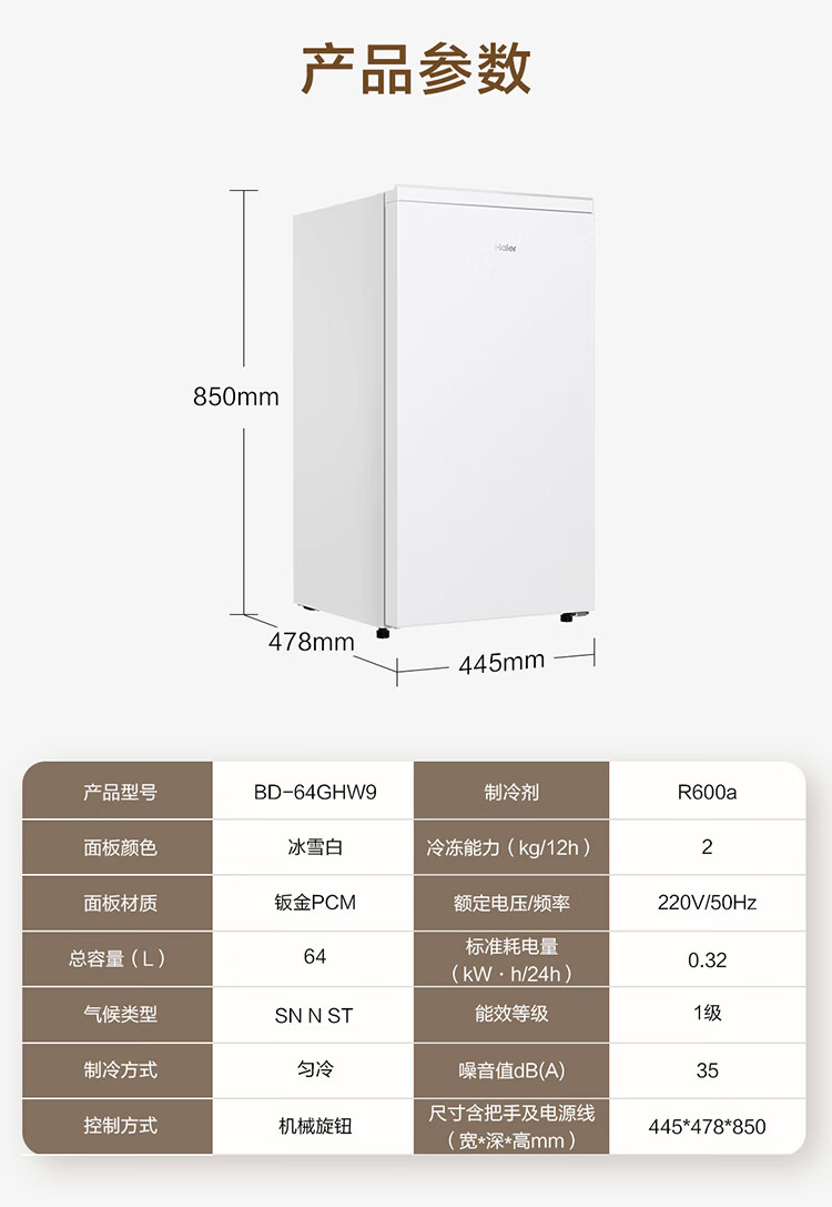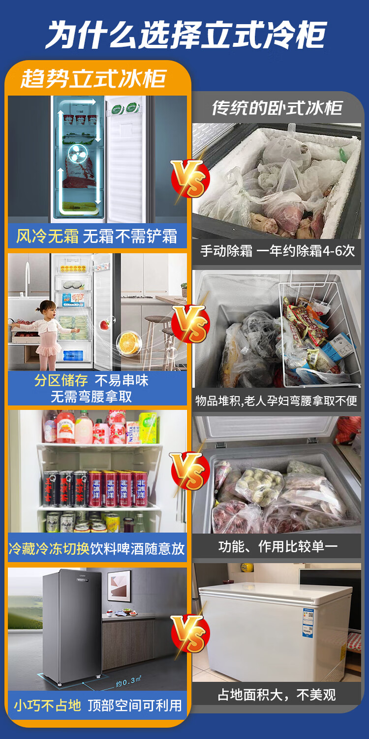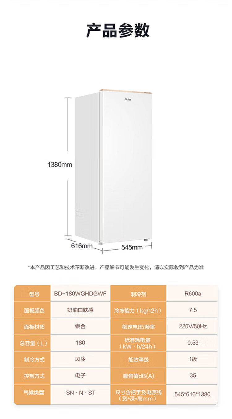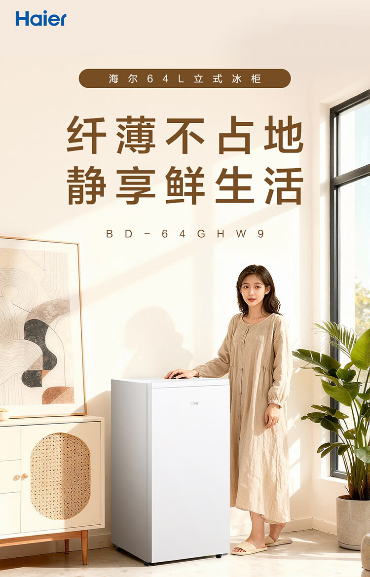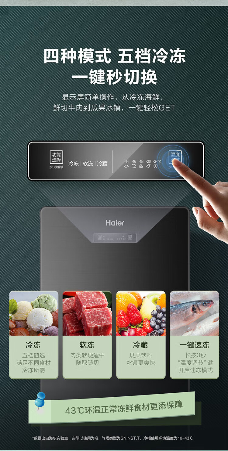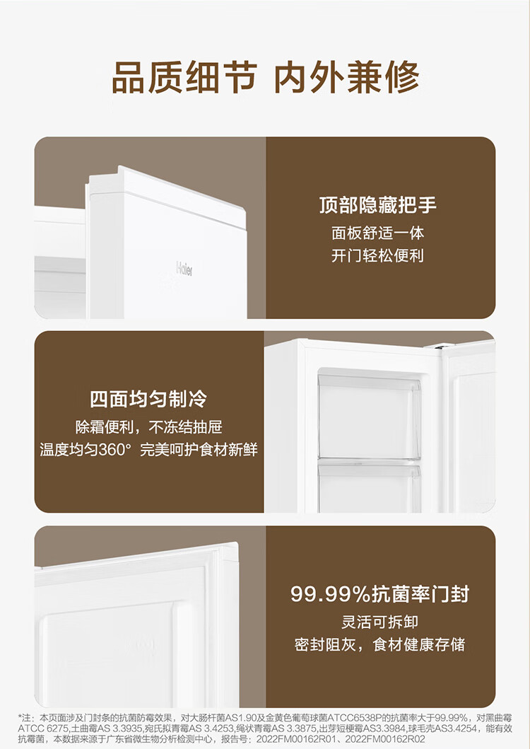 Haier Camellia series fresh frozen vertical freezer air-cooled frost-free/uniformly cooled micro-frost household small refrigerator refrigerated freezer side-opening breast milk storage freezer drawer 100 liters of pomelo fresh frozen | 4D evenly cooled micro-frost 100 liters