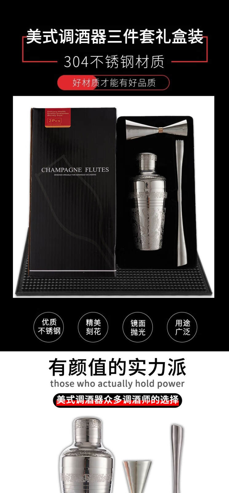 Fernas 304 stainless steel American-style cocktail shaker three-piece set engraved shaker ounce cup crushed popsicle shaker shaker American-style 500ml old engraved-4-piece set