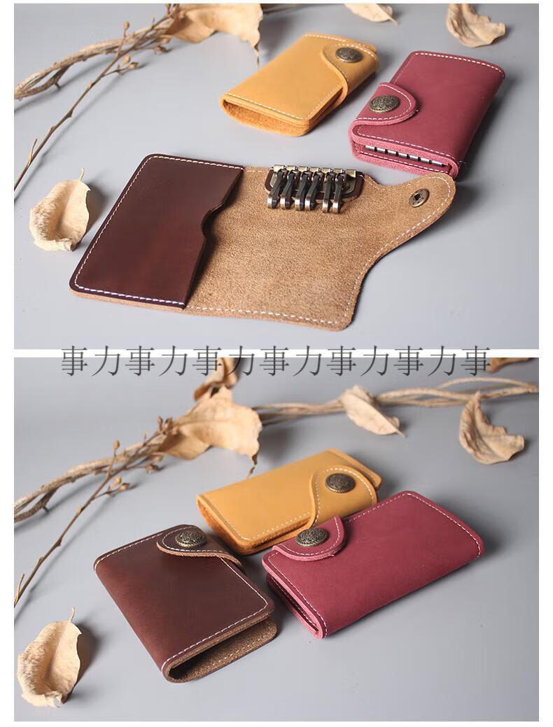 Kangaroo (KANGAROO) men's and women's genuine leather multifunctional keychain with large capacity, casual and lightweight cowhide waist hanging car key bag, crocodile pattern first layer cowhide texture with hanging buckle bull buckle