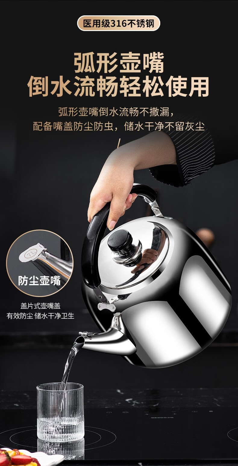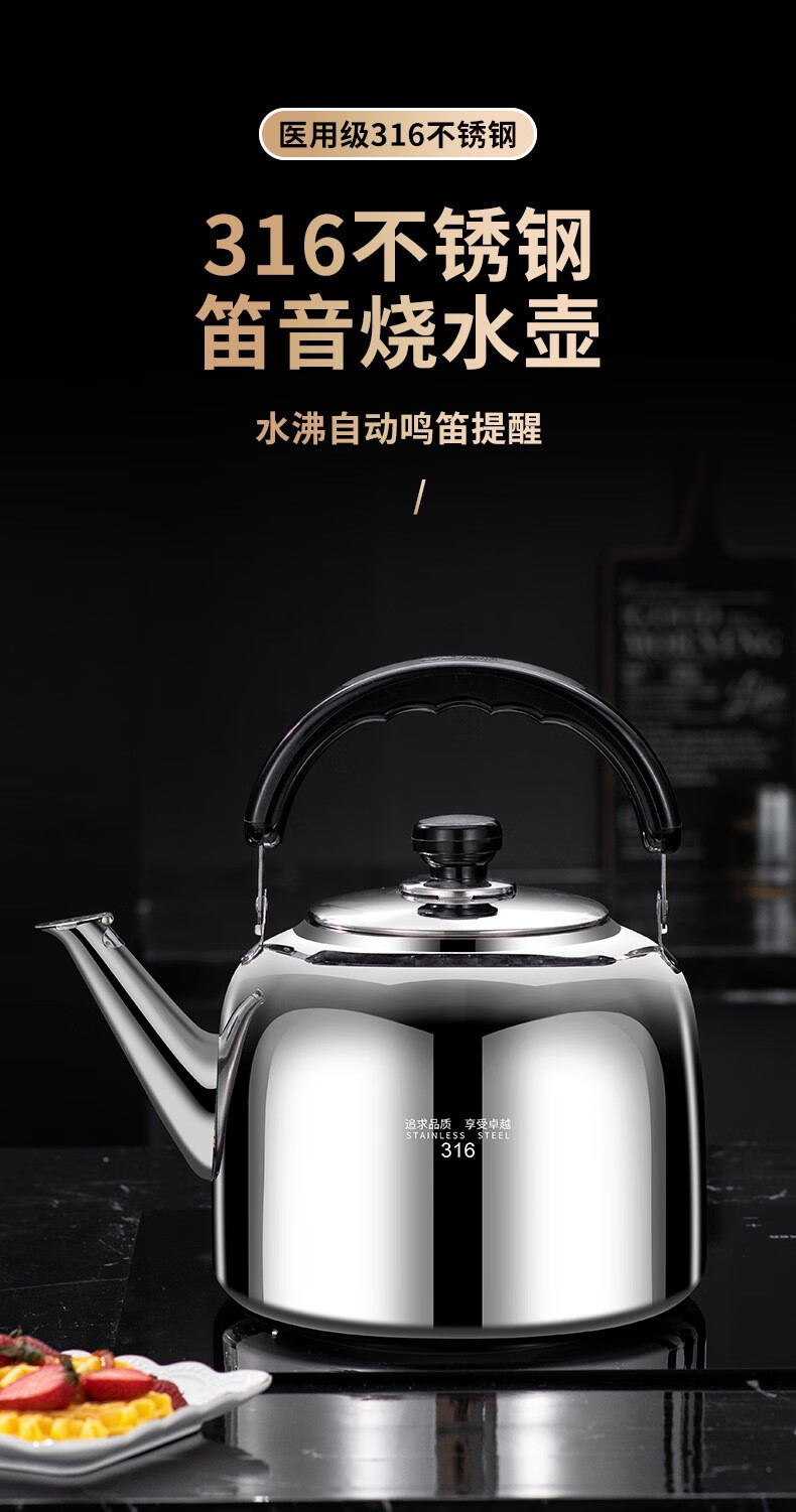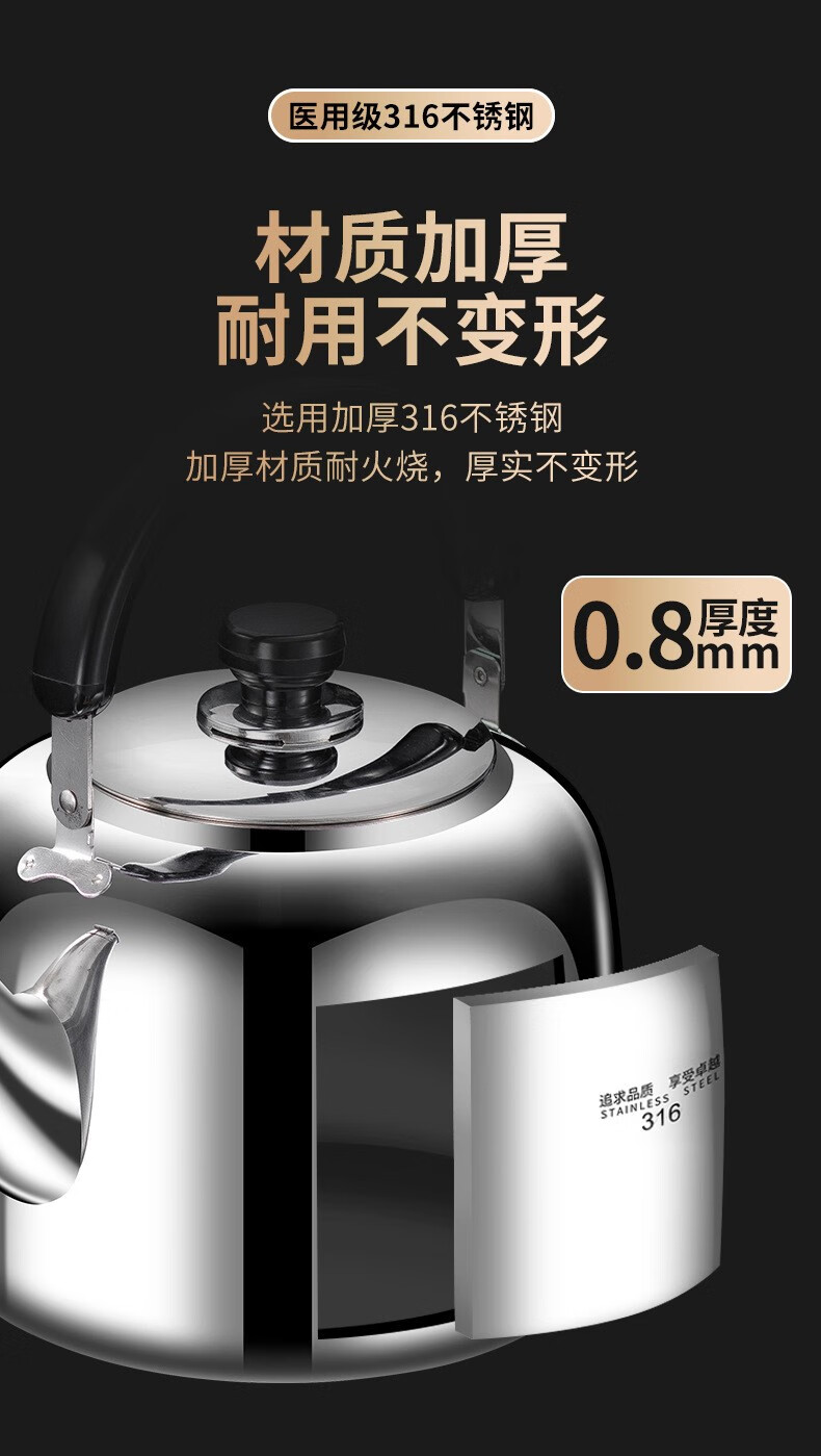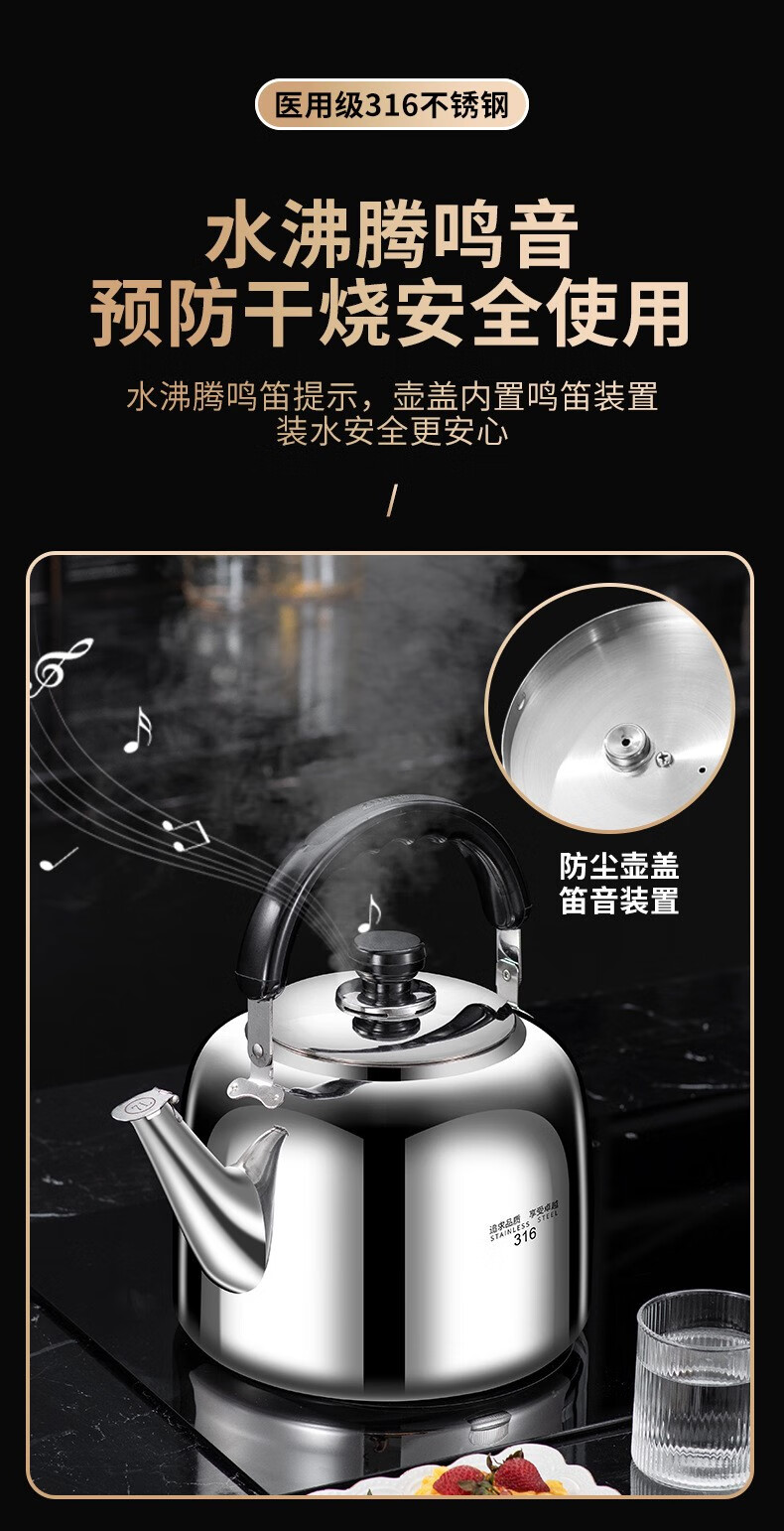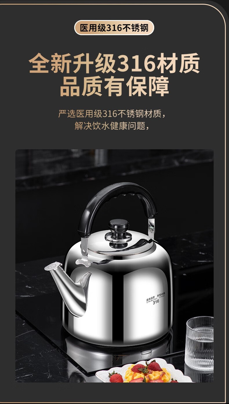 The same model as the ship's Zhuangli 316 stainless steel thickened whistle large capacity kettle for household gas universal 3L whistle kettle - 316 stainless steel 3L