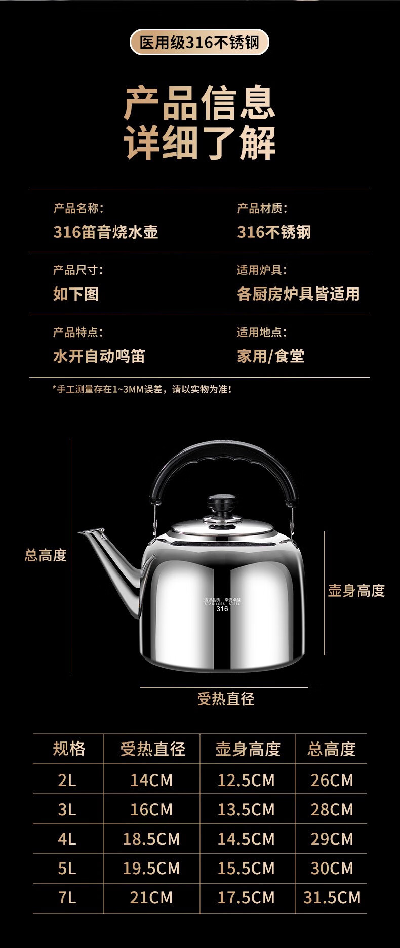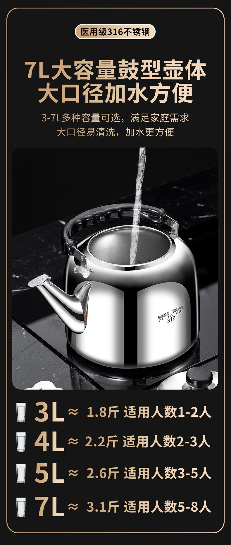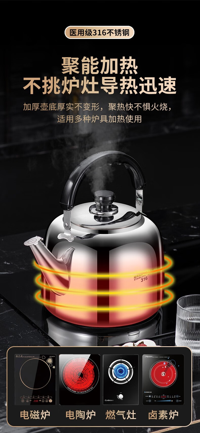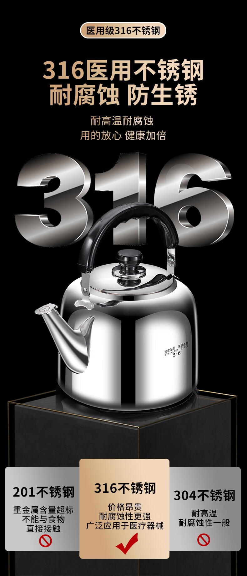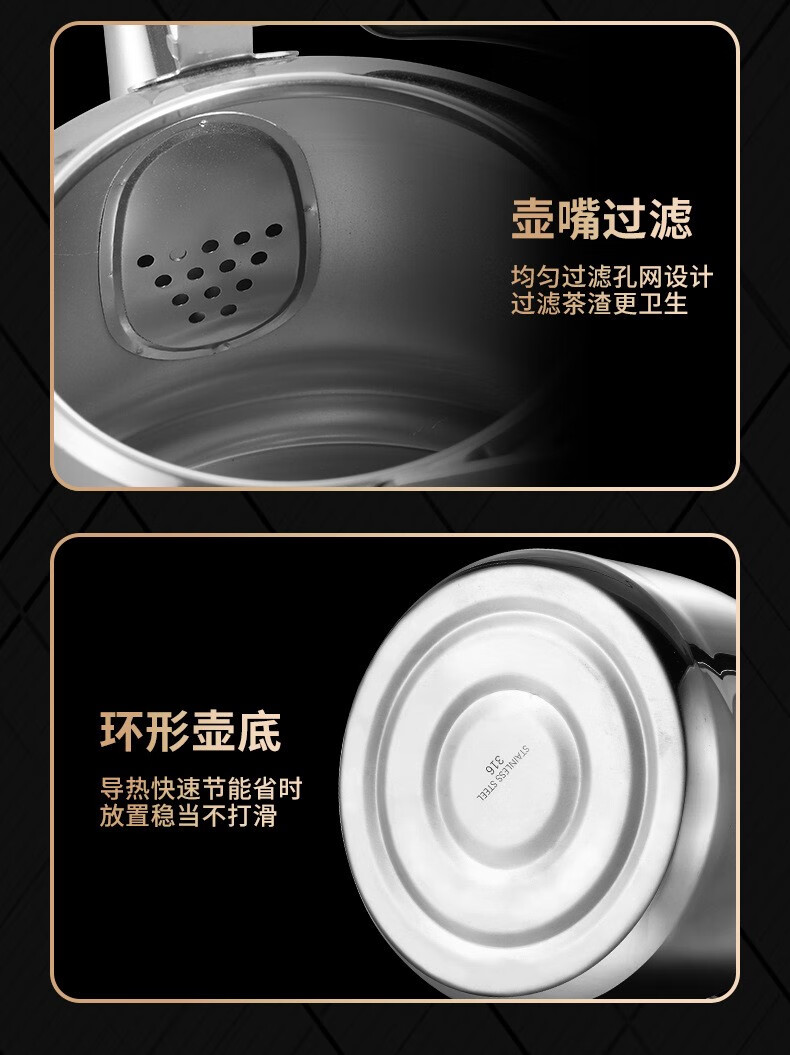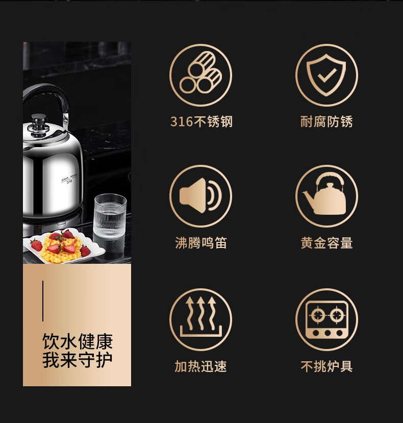 The same model as the ship's Zhuangli 316 stainless steel thickened whistle large capacity kettle for household gas universal 3L whistle kettle - 316 stainless steel 3L