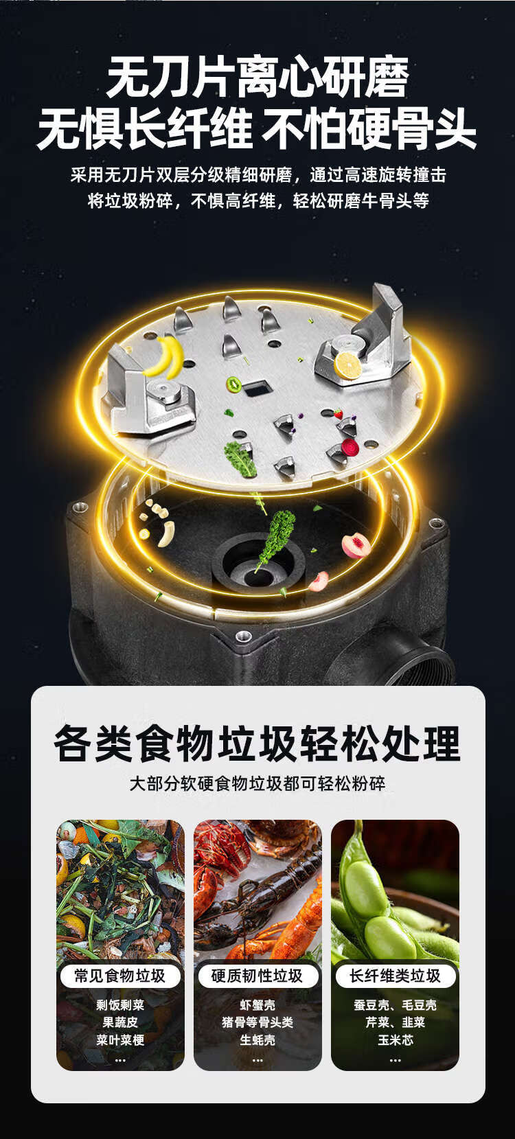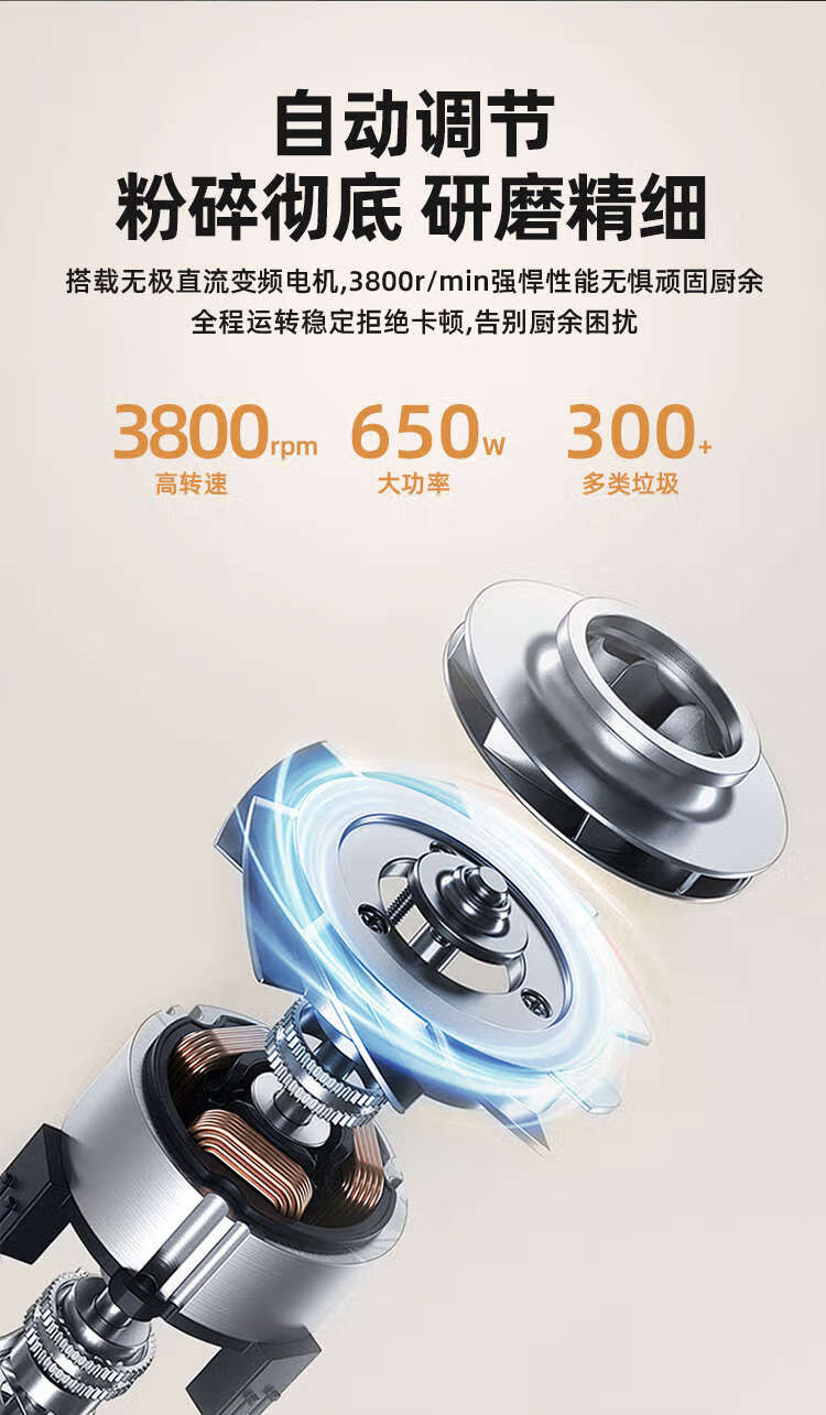 Huili's customized food waste disposer, household kitchen waste crusher, kitchen bone crusher, sink, kitchen waste disposer, 860W high-power remote control switch, self-installation