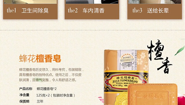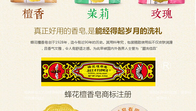 Bee Flower Sandalwood Soap 125g Woody Fragrance Soap Bath Fragrance Face Wash Hand Soap Single Block Cleaning Soap Jasmine Little Green Orange-New Product 125g 1 Block