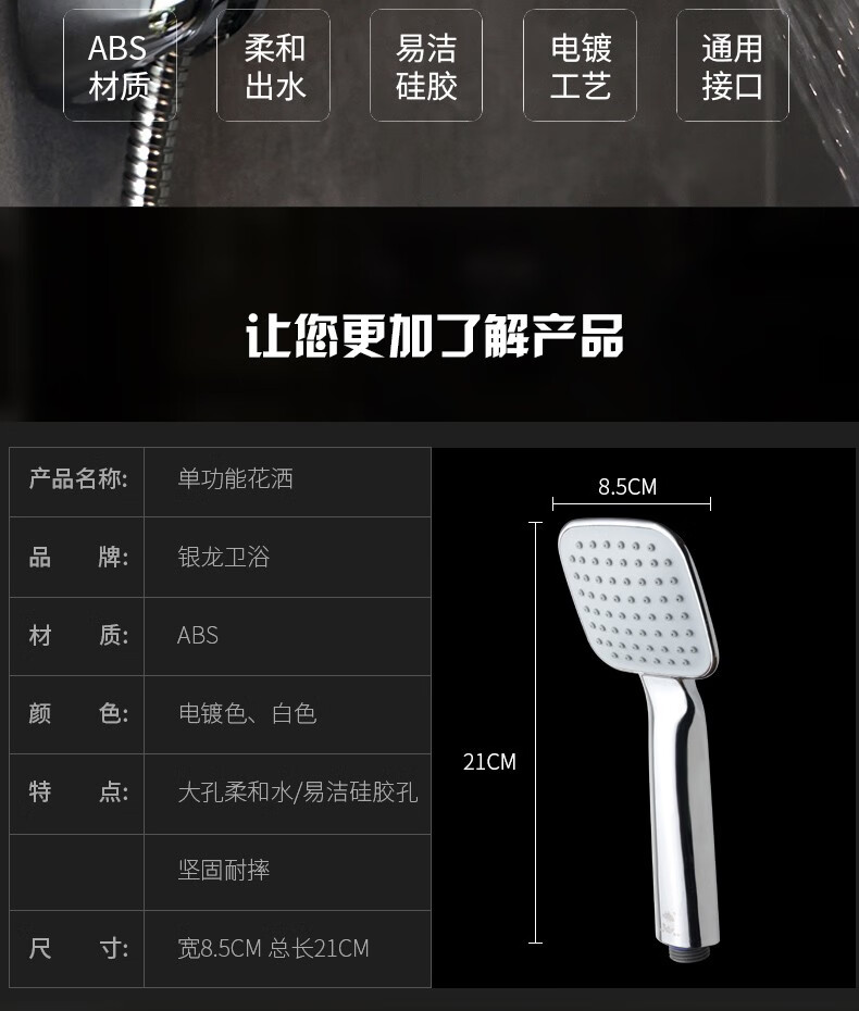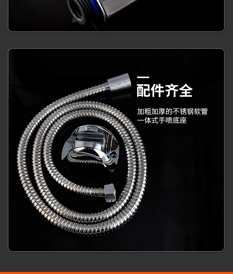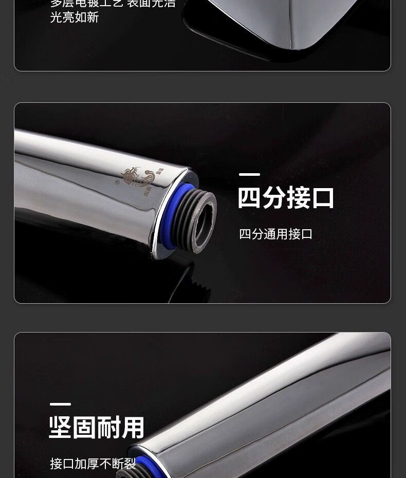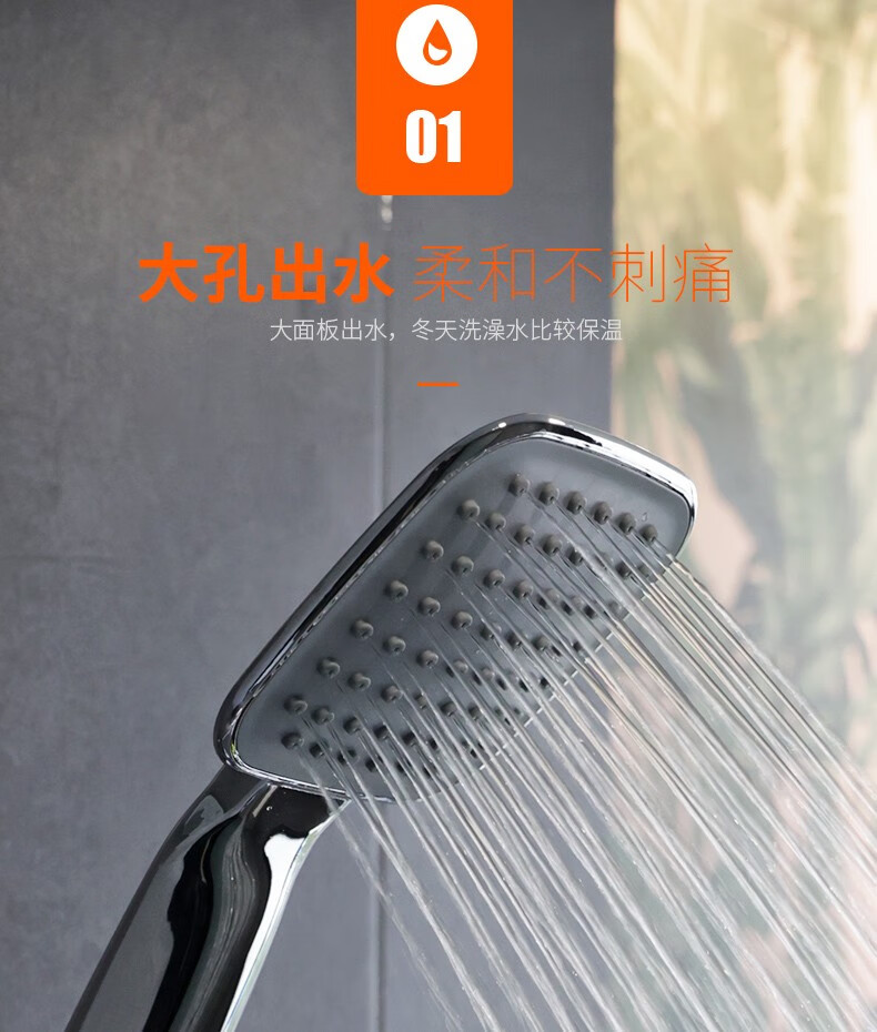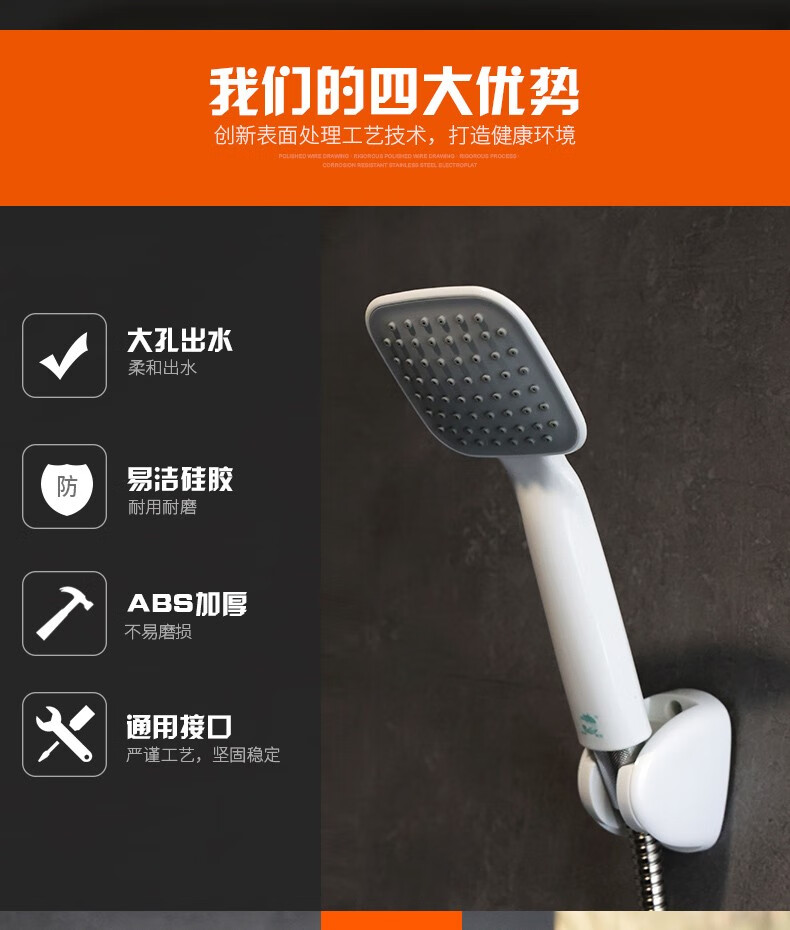 Yinlong Sanitary Ware Yinlong non-pressurized shower head with large water output, coarse hole handheld shower, single head, fall-resistant and rain-resistant shower head, electroplated shower head + 1.8m double-buckle explosion-proof pipe