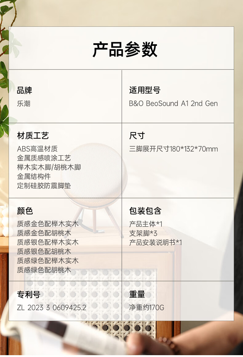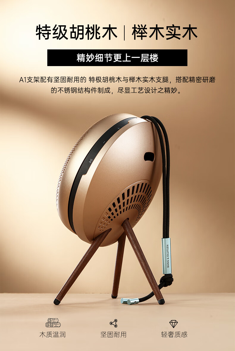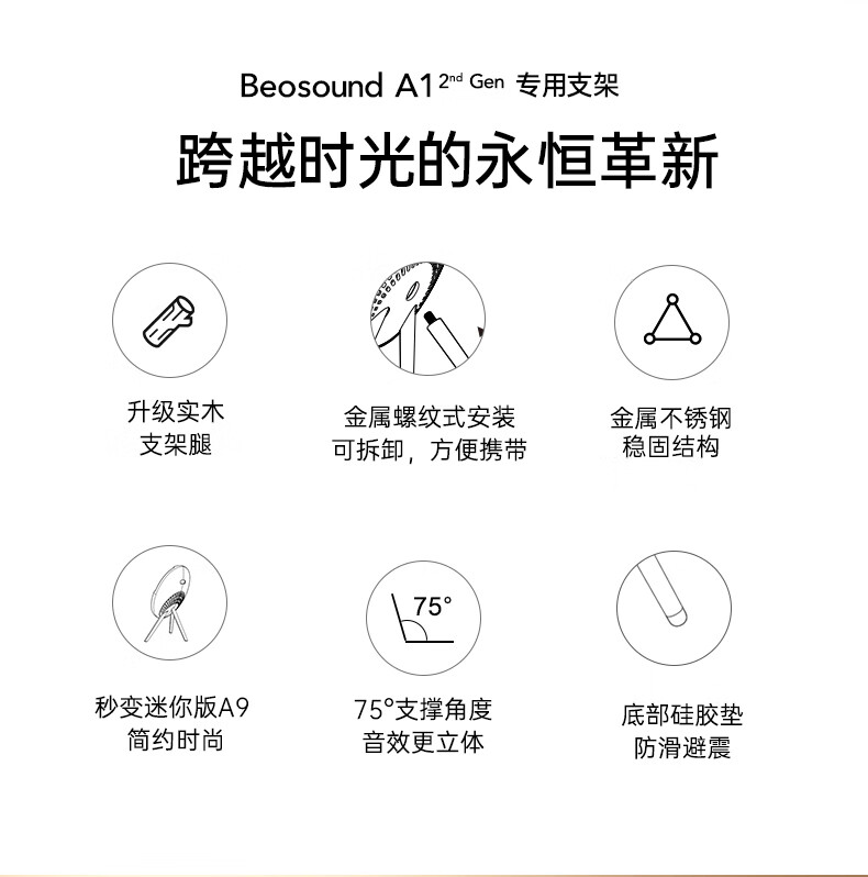 Suitable for B&O Beosound A1 2nd Gen second/third generation speaker stand audio tripod solid wood display stand silver + walnut