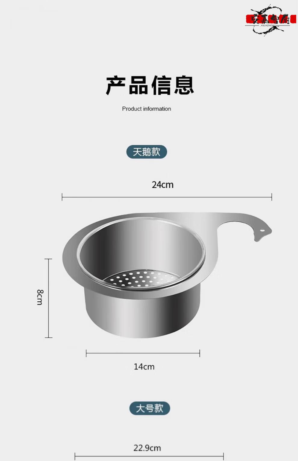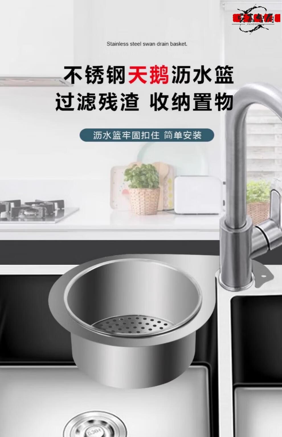 Miaopule Germany imported high-quality swan drain basket stainless steel kitchen sink leftover residue filter net vegetable drain basket thickened stainless steel drain basket storage storage two 1