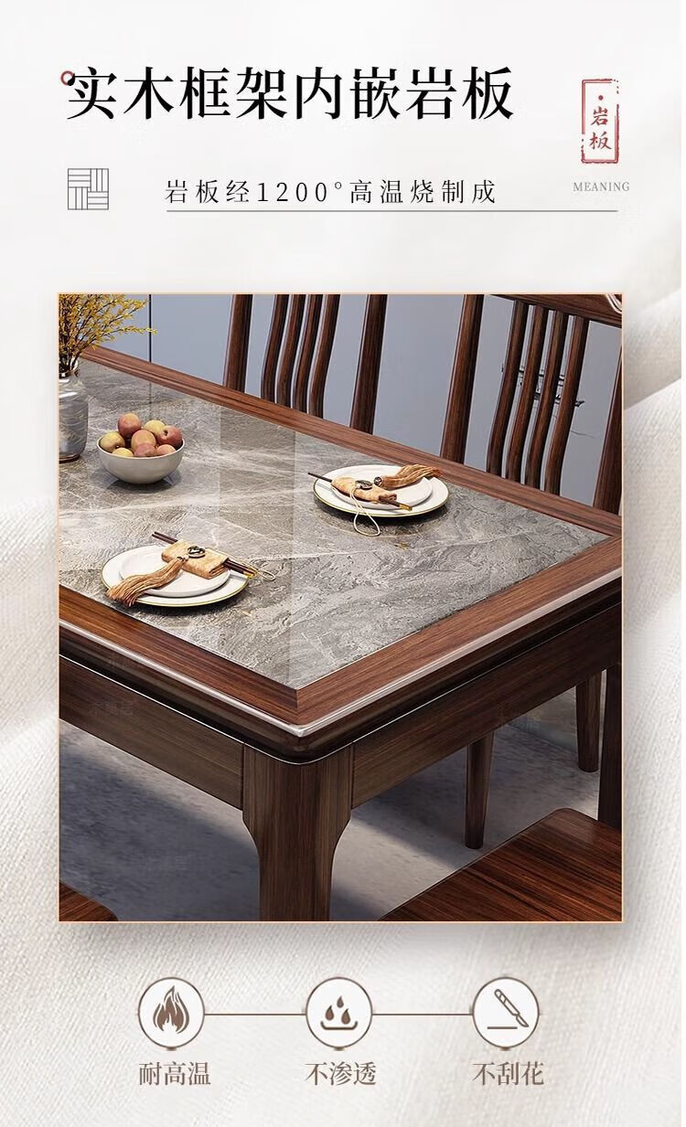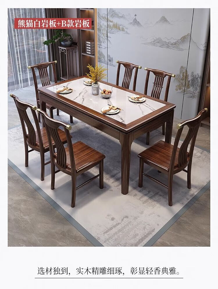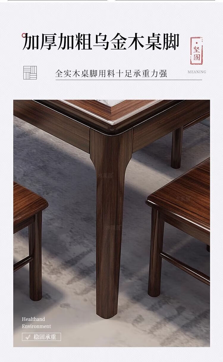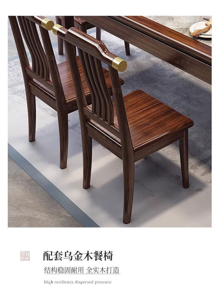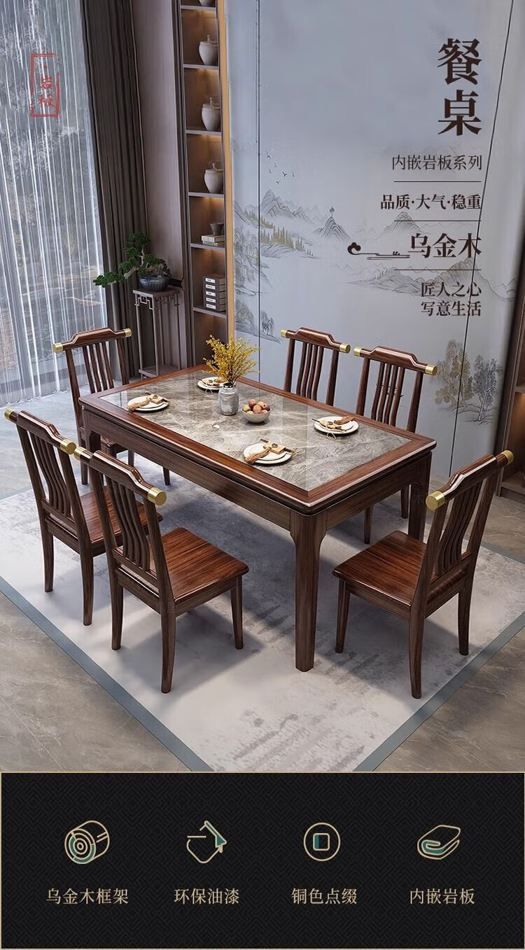 New Chinese style ebony wood slate dining table home simple modern small apartment dining table solid wood rectangular table ebony wood dining table Shakespeare brown slate 1.3m single table