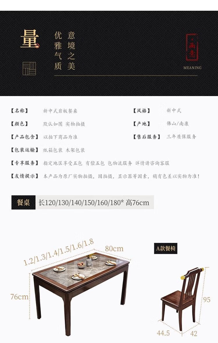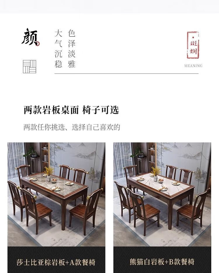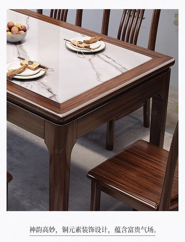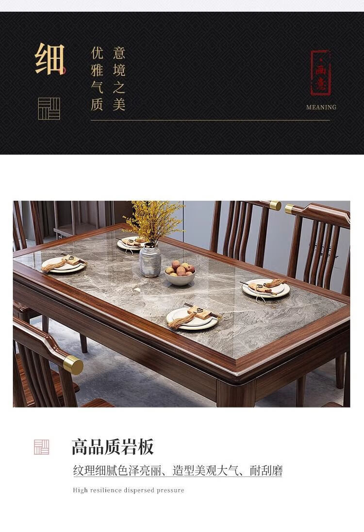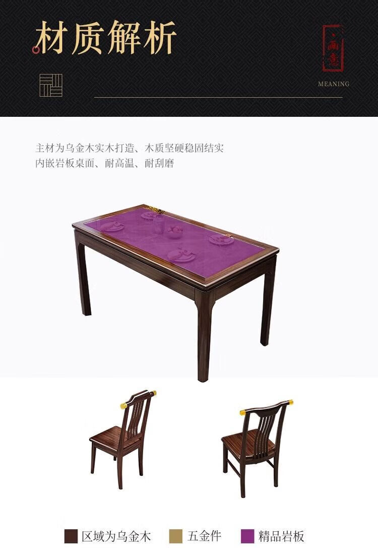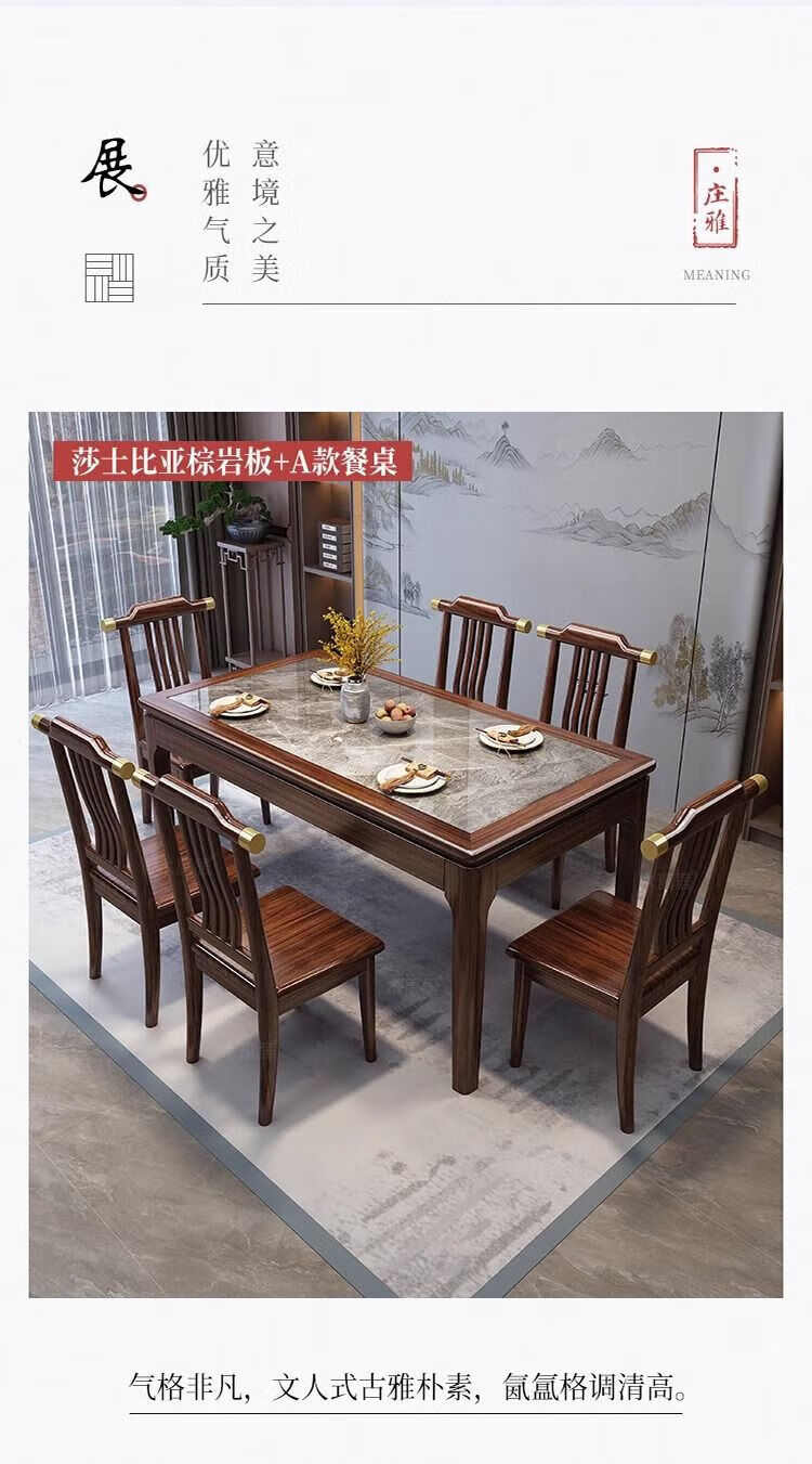 New Chinese style ebony wood slate dining table home simple modern small apartment dining table solid wood rectangular table ebony wood dining table Shakespeare brown slate 1.3m single table