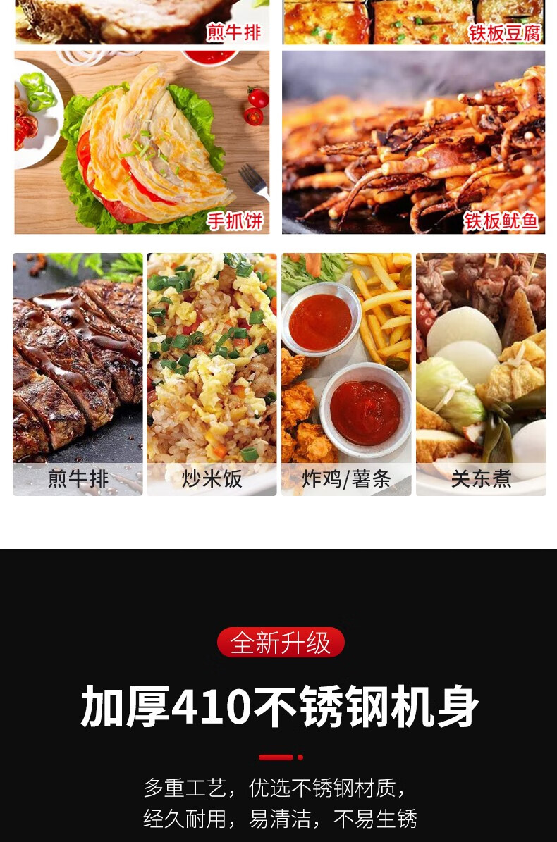 Teppanyaki merchants set up stalls with hand-caught cake machines, Teppanyaki fryers, all-in-one griddles, gas fryers, cold noodle machines, 80x50 black iron plates, thickened griddles, and thickened large frying pans.