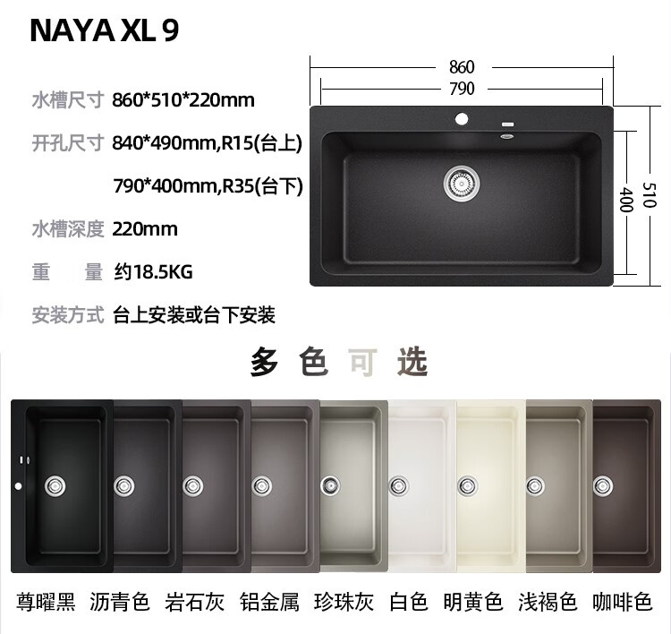 Platinum Langgao German imported Blanco quartz stone granite sink NAYA XL9 vegetable basin 521811 single sink package eight NAYA XL 9+TRIMA