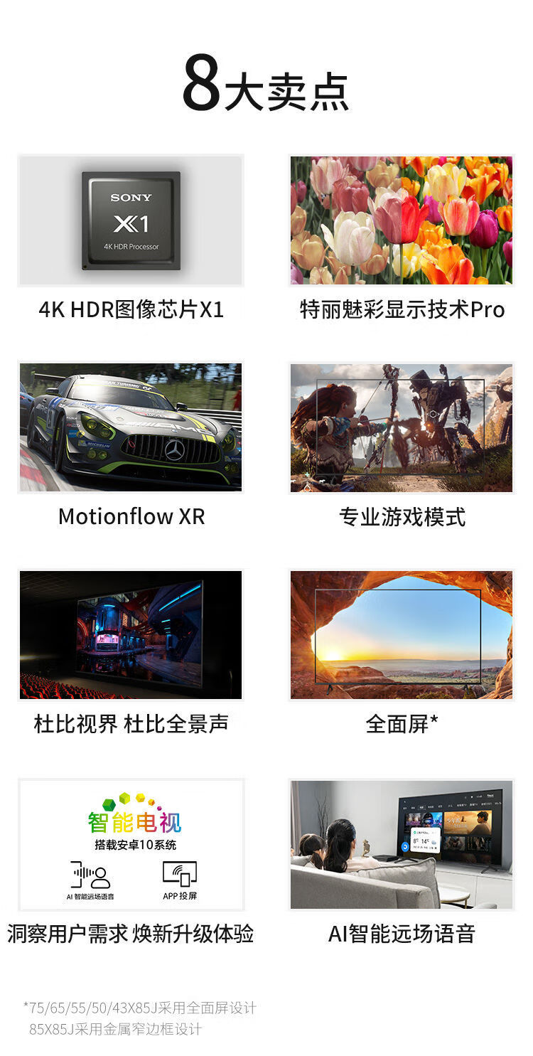 Sony TV KD43X85J 43-inch 4K Ultra HD HDR Android Smart LCD TV with low visual fatigue 1-inch black