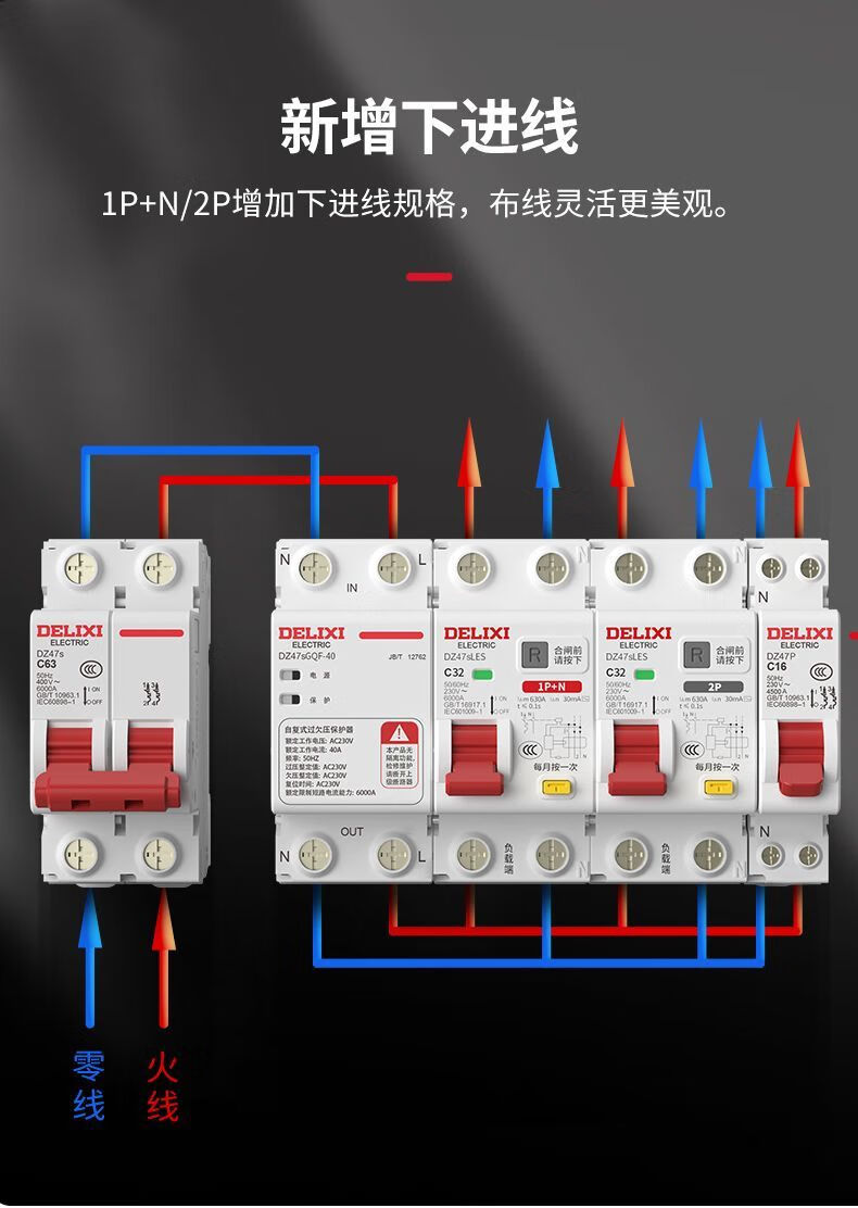 Delixi charging pile special A-type leakage protector circuit breaker 2P 1P+N 4P 40A A-type leakage protector 40A 1P+N