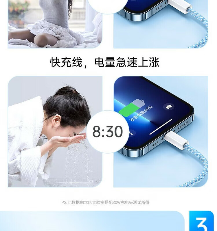 POSKELRTYPOSKELRT is suitable for Apple mobile phone data cable charging cable gray (Apple/Android) 1.5m