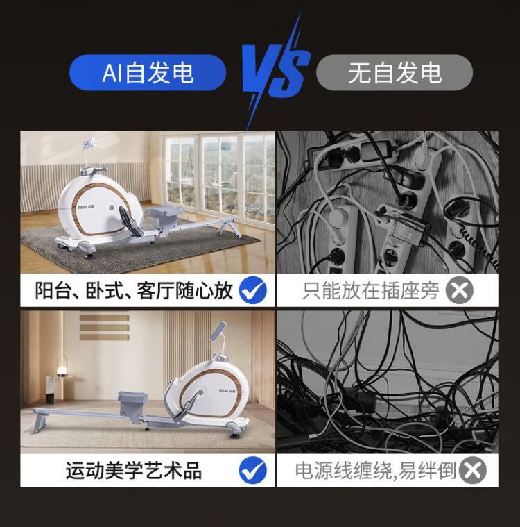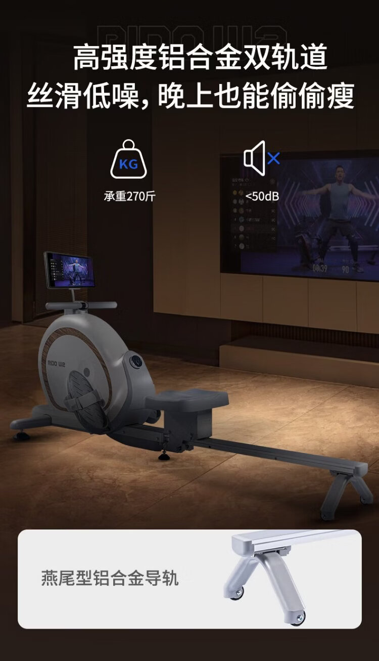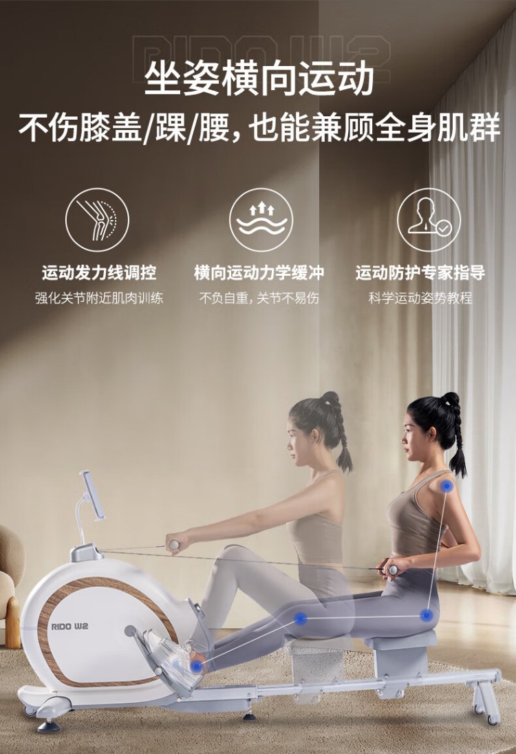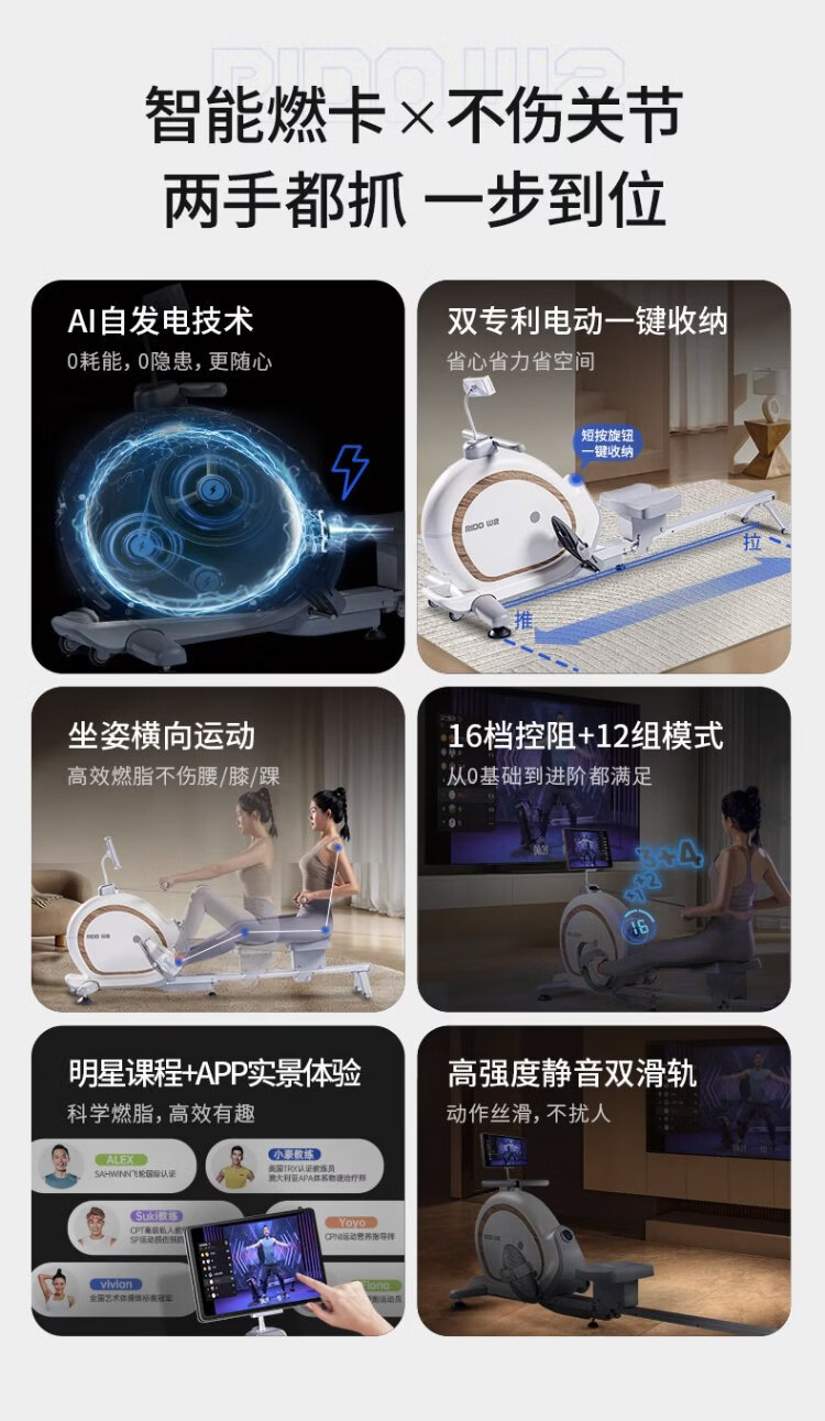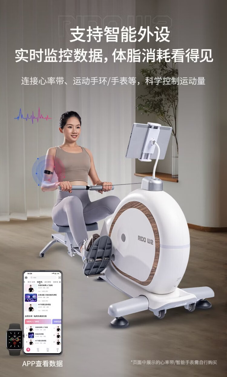 RIDO rowing machine self-generating household rowing machine magnetically controlled intelligently adjusted resistance indoor aerobic and anaerobic fitness equipment W2 fully intelligent self-generating-electric storage