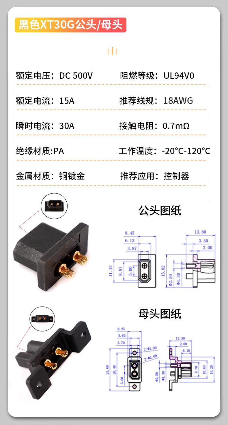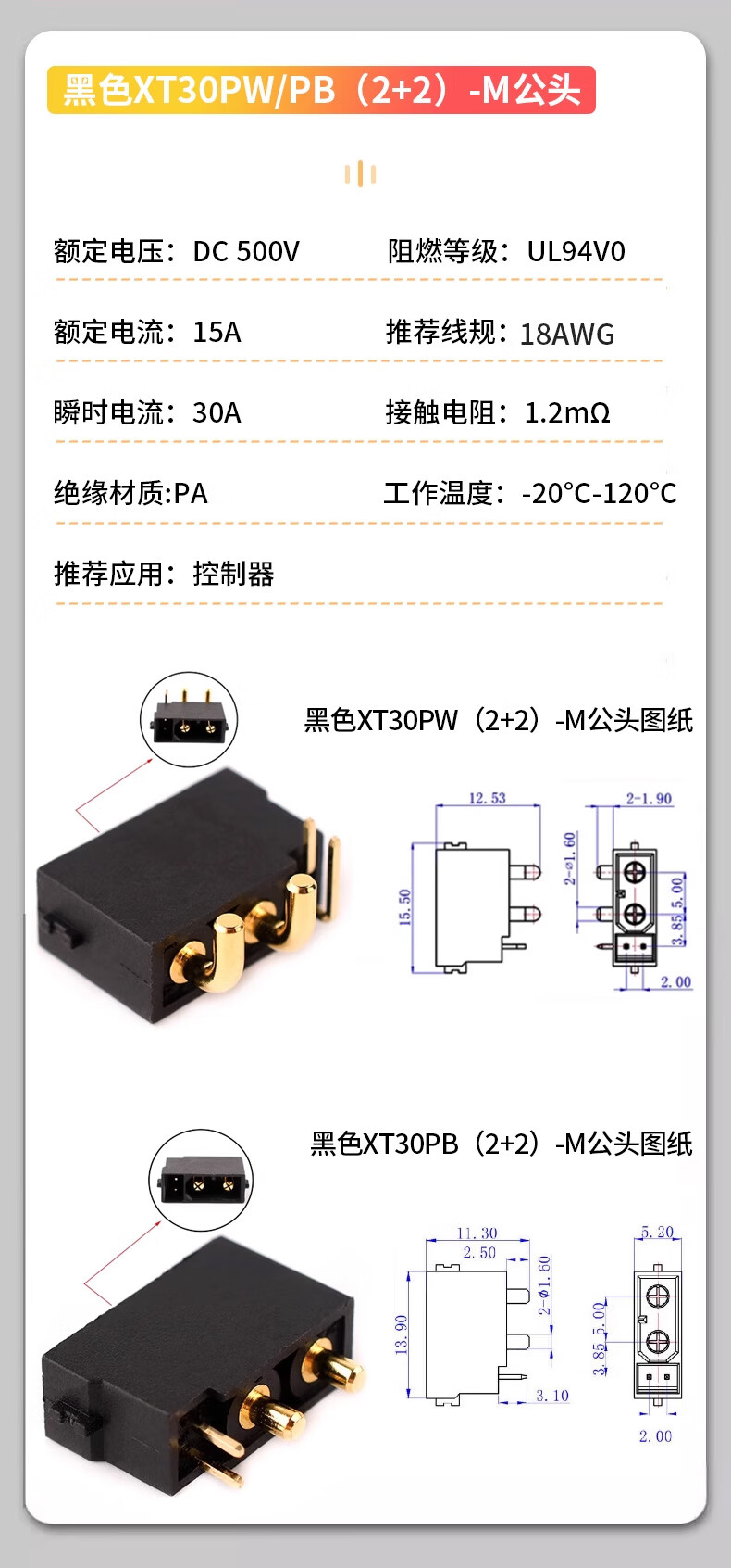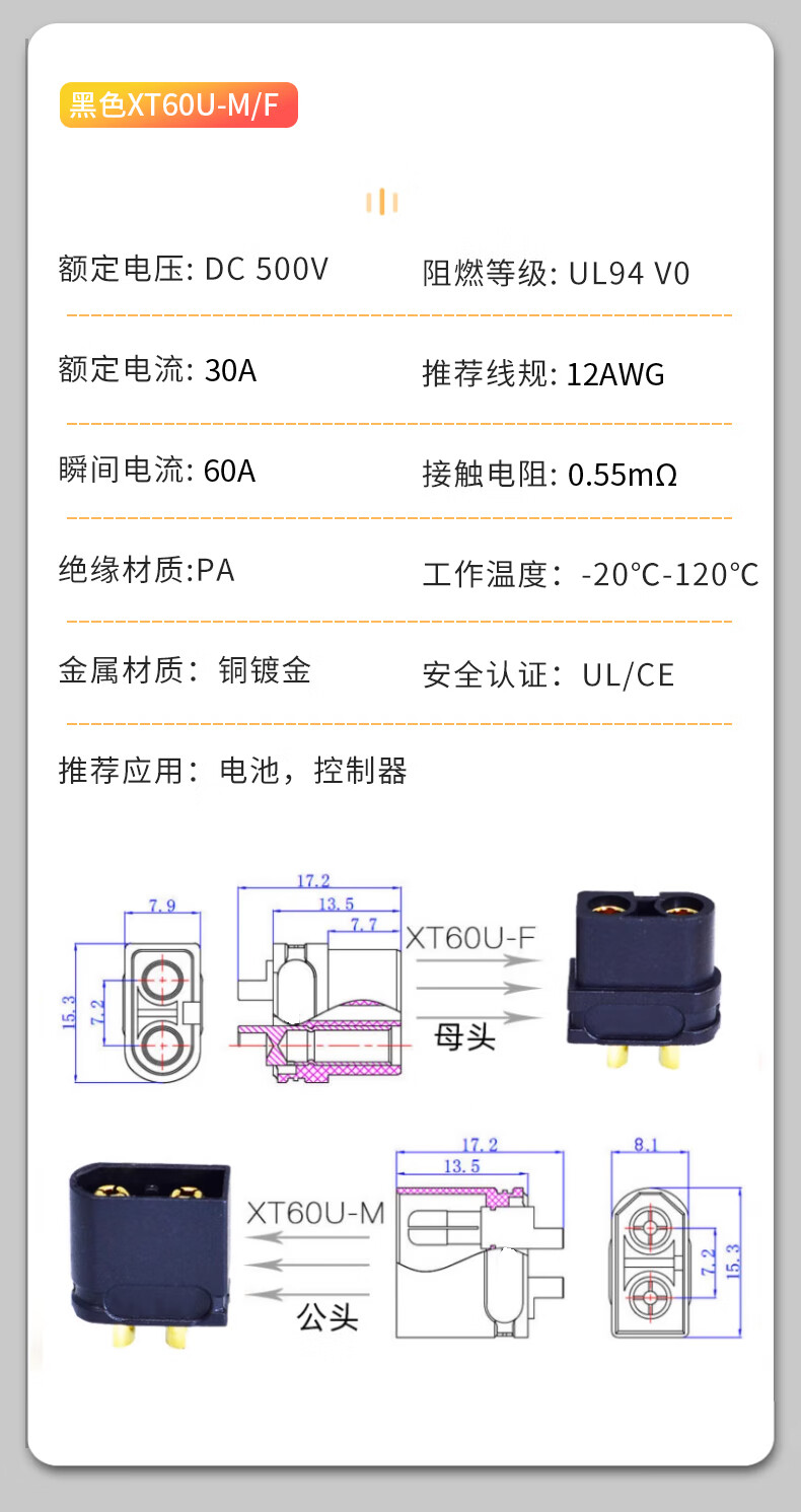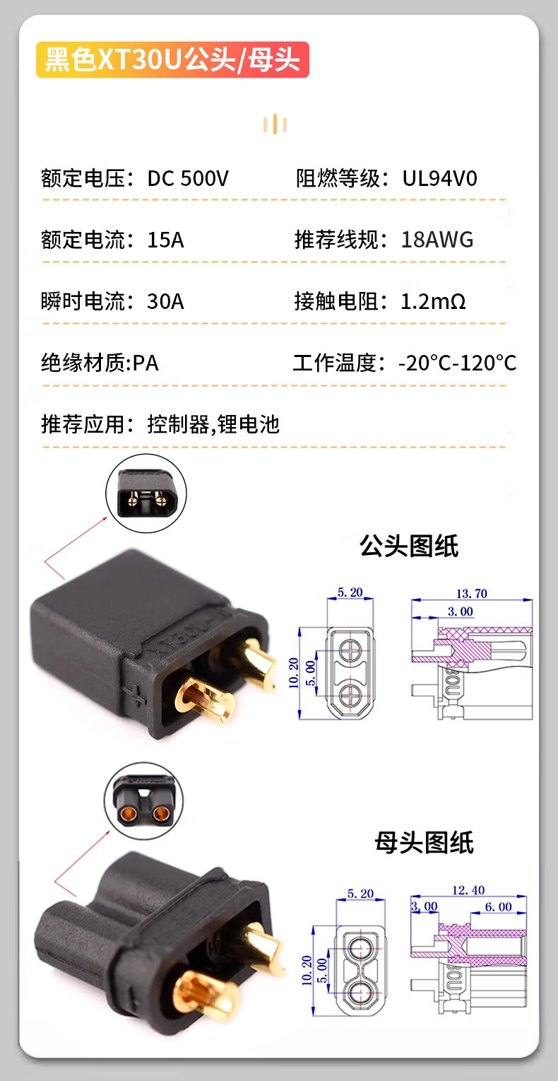 MR30/XT60 plug male and female XT30 XT90U XT60H butt connector high current model aircraft connector XT60H male/female set (with sheath)