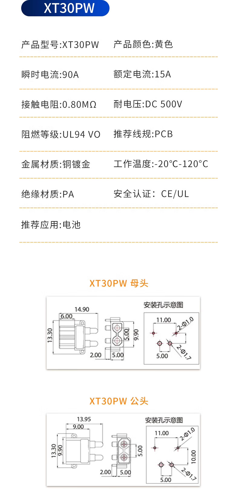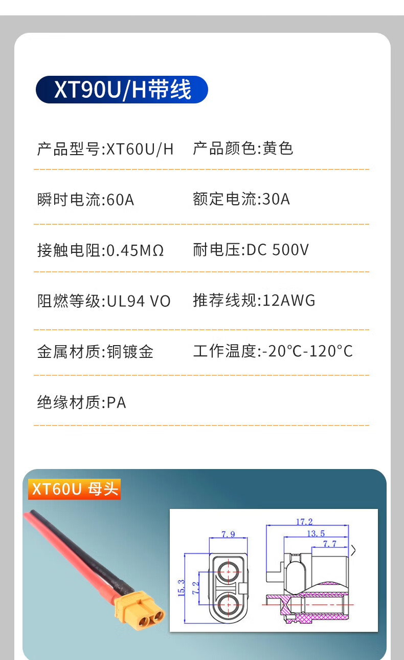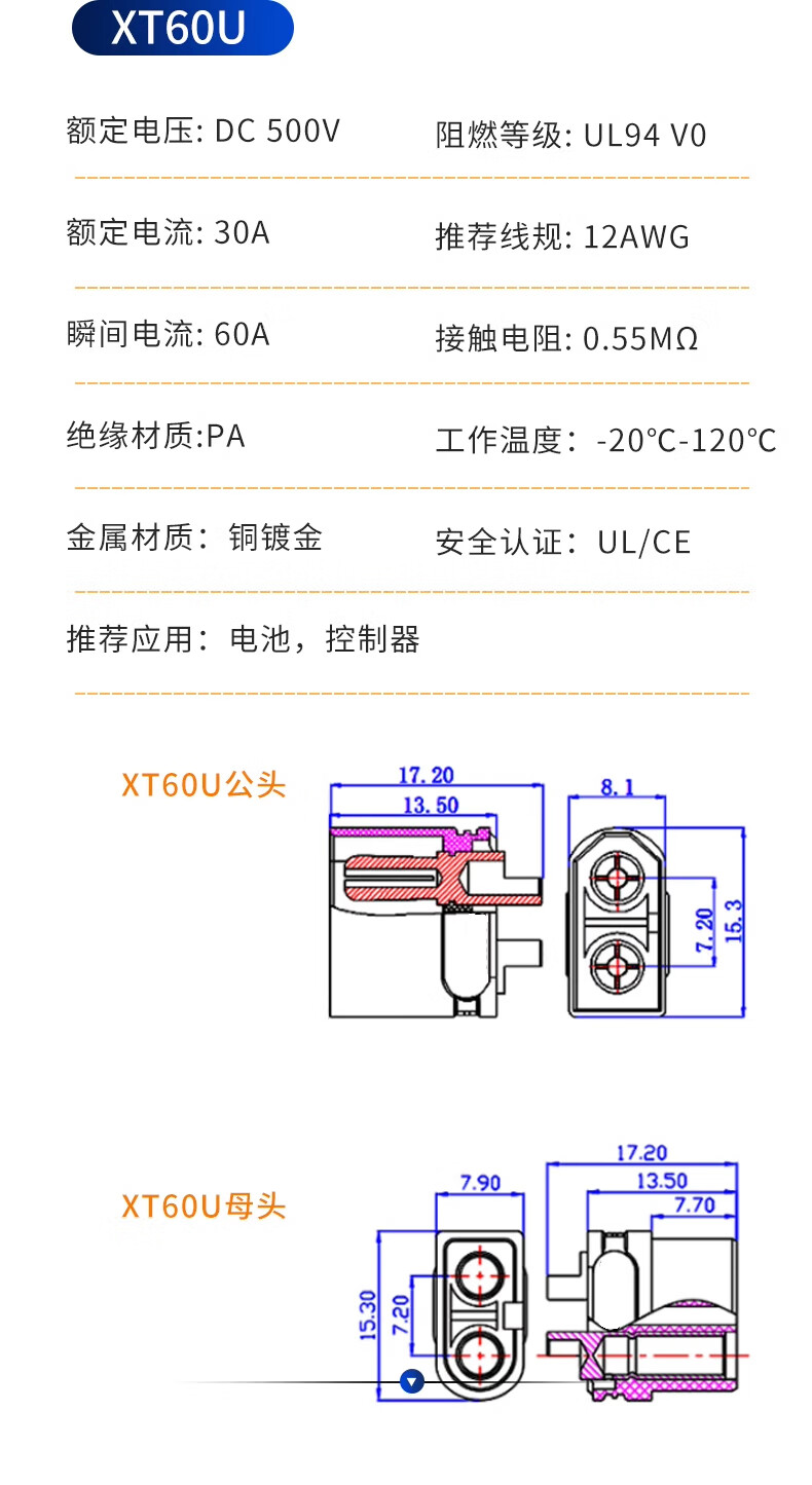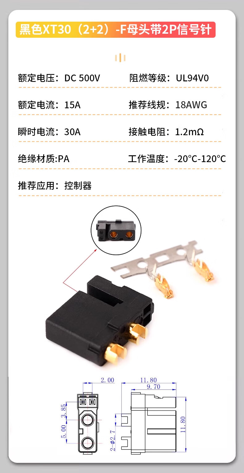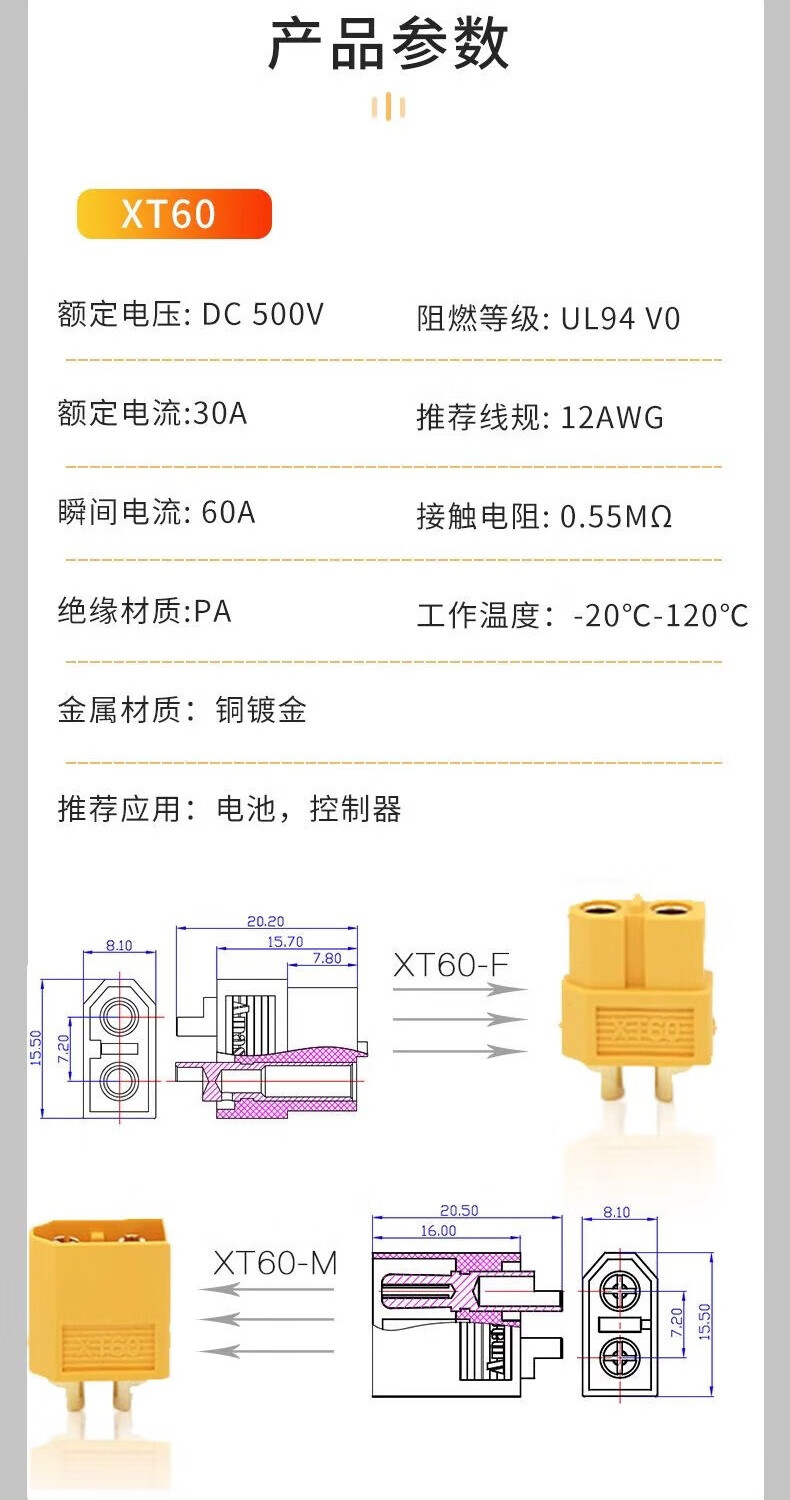 MR30/XT60 plug male and female XT30 XT90U XT60H butt connector high current model aircraft connector XT60H male/female set (with sheath)