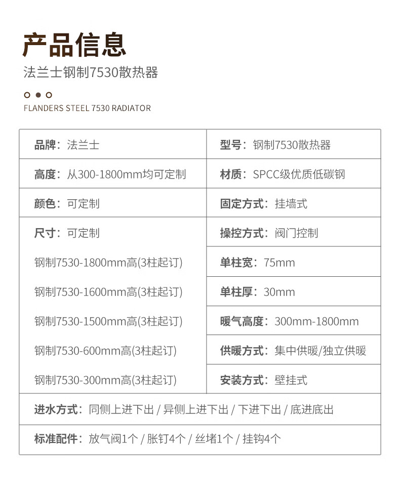 Franz steel 7530 radiator household water heating wall-mounted living room radiator central heating corrosion-resistant stainless steel can be customized 600mm (minimum order of 3 columns)